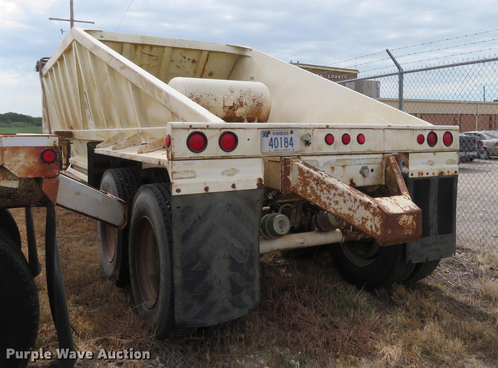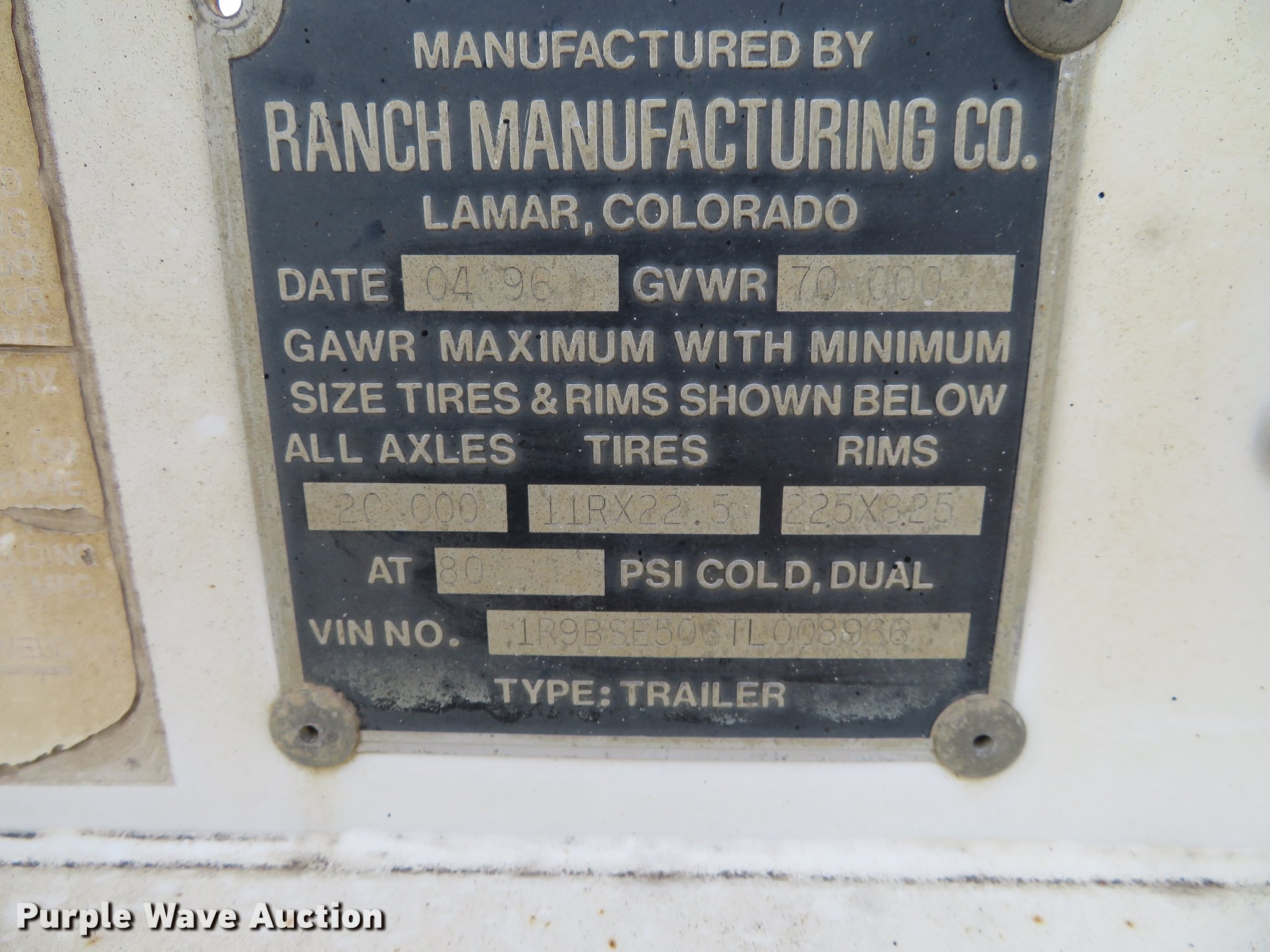 Purple Wave is selling a used Bottom Dump Trailer in Kansas. This item is a 1996 Ranch bottom dump trailer with the following: Aero roll tarp, Air operated dump, Spring suspension, Air brakes, 11R24.5 tires