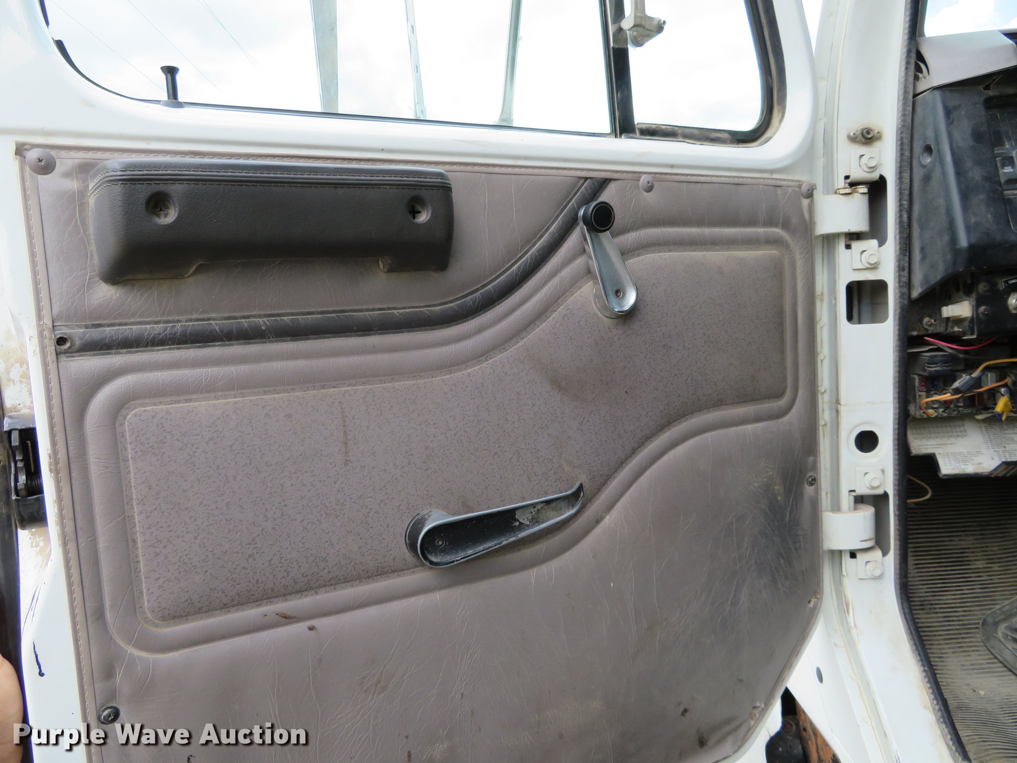 1998 International 2554 dump truck. 332,707 miles on odometer, 15,138 hours on meter, International DT466 7.6L L6 turbo diesel engine, Automatic transmission, Tandem axle, AC and heat, Air suspension seat, PTO, 15'L steel dump bed Single ram hoist, Air operated end gate, Spring suspension, Air brakes, 11R22.5 tires, Frame cracked, Dead batteries. Kansas title. 1HTGCAAR6WH520063. Lyon County Highway Department. Emporia, KS 66801