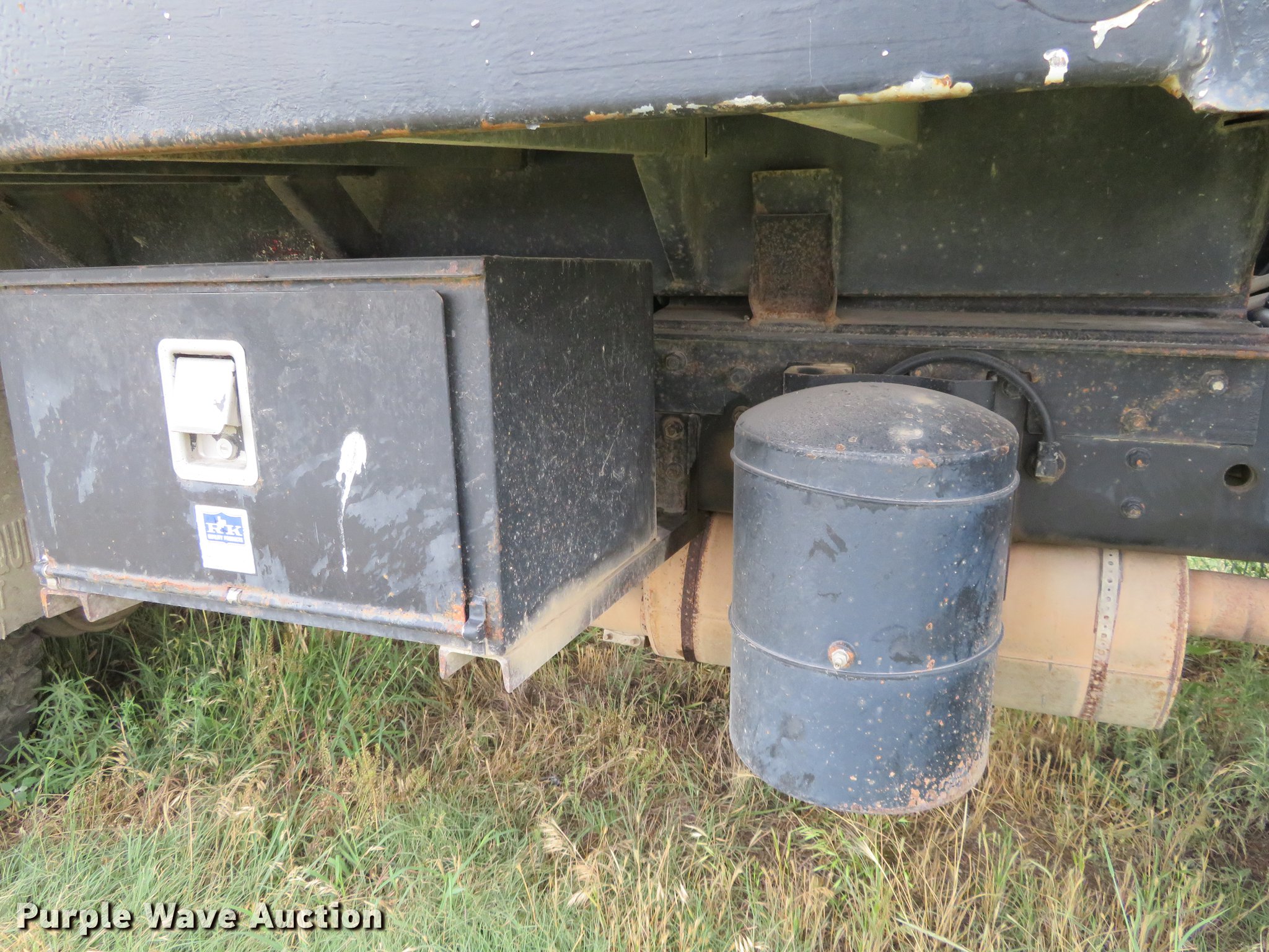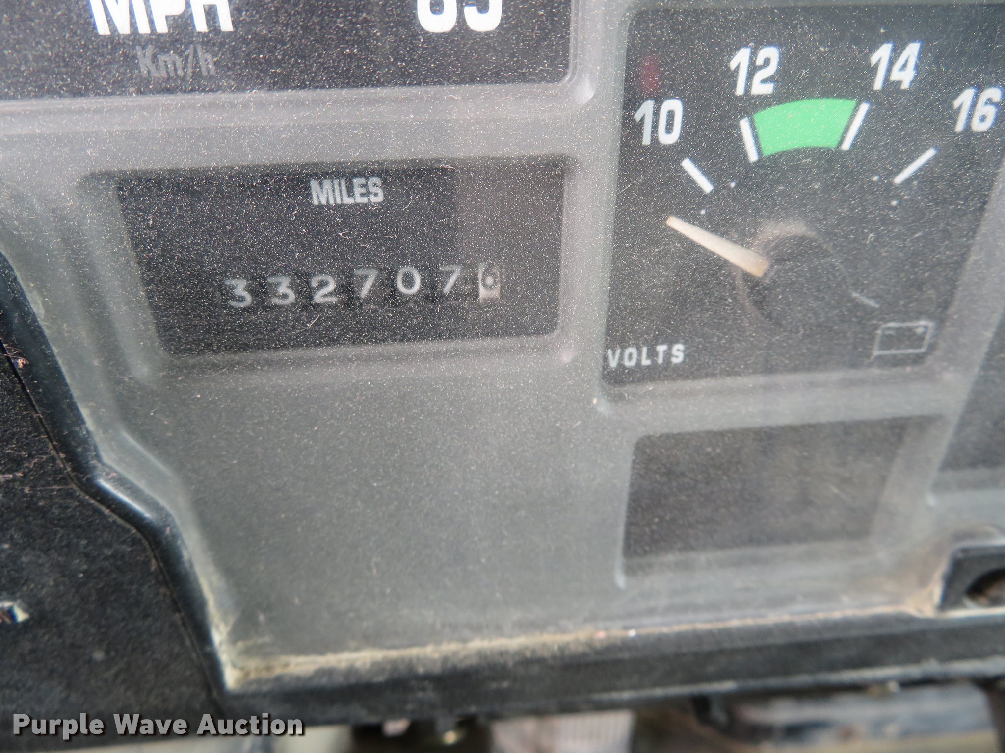 Purple Wave is selling a used Construction Dump Truck in Kansas. This item is a 1998 International 2554 dump truck with the following: 332,707 miles on odometer, 15,138 hours on meter, International DT466 7.6L L6 turbo diesel engine, Automatic transmission, Tandem axle, AC and heat, Air suspension seat, PTO, 15'L steel dump bed, Single ram hoist, Air operated end gate, Spring suspension, Air brakes, 11R22.5 tires, Frame cracked, Dead batteries