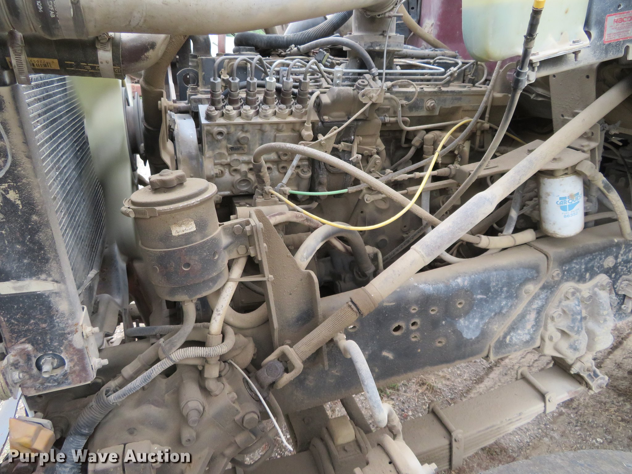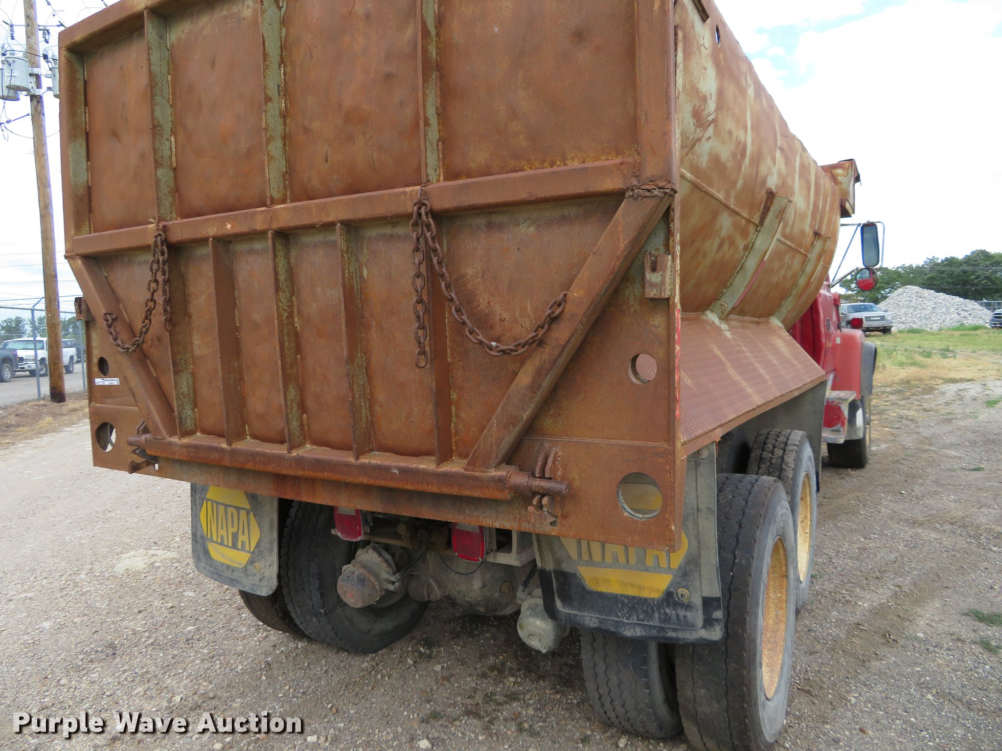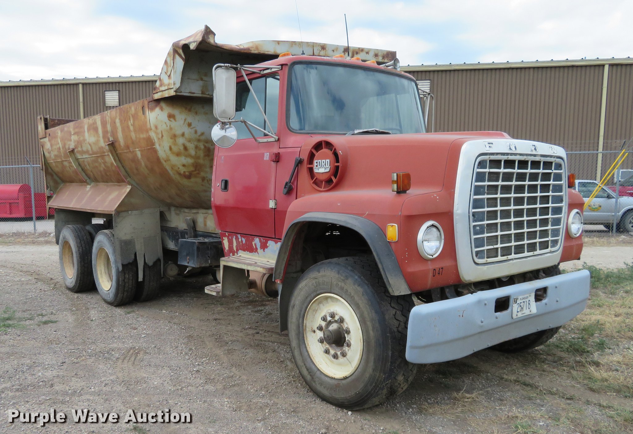 Purple Wave is selling a used Construction Dump Truck in Kansas. This item is a 1994 Ford LT8000 dump truck with the following: 427,444 miles on odometer, Cummins 8.3L L6 diesel engine, Automatic transmission, Tandem axle, Heat, Air suspension seat, PTO, 16'L steel barrel dump bed, Air operated end gate, Spring suspension, Air brakes, 385/65R22.5 front tire, 11R22.5 rear tires, Frame cracked