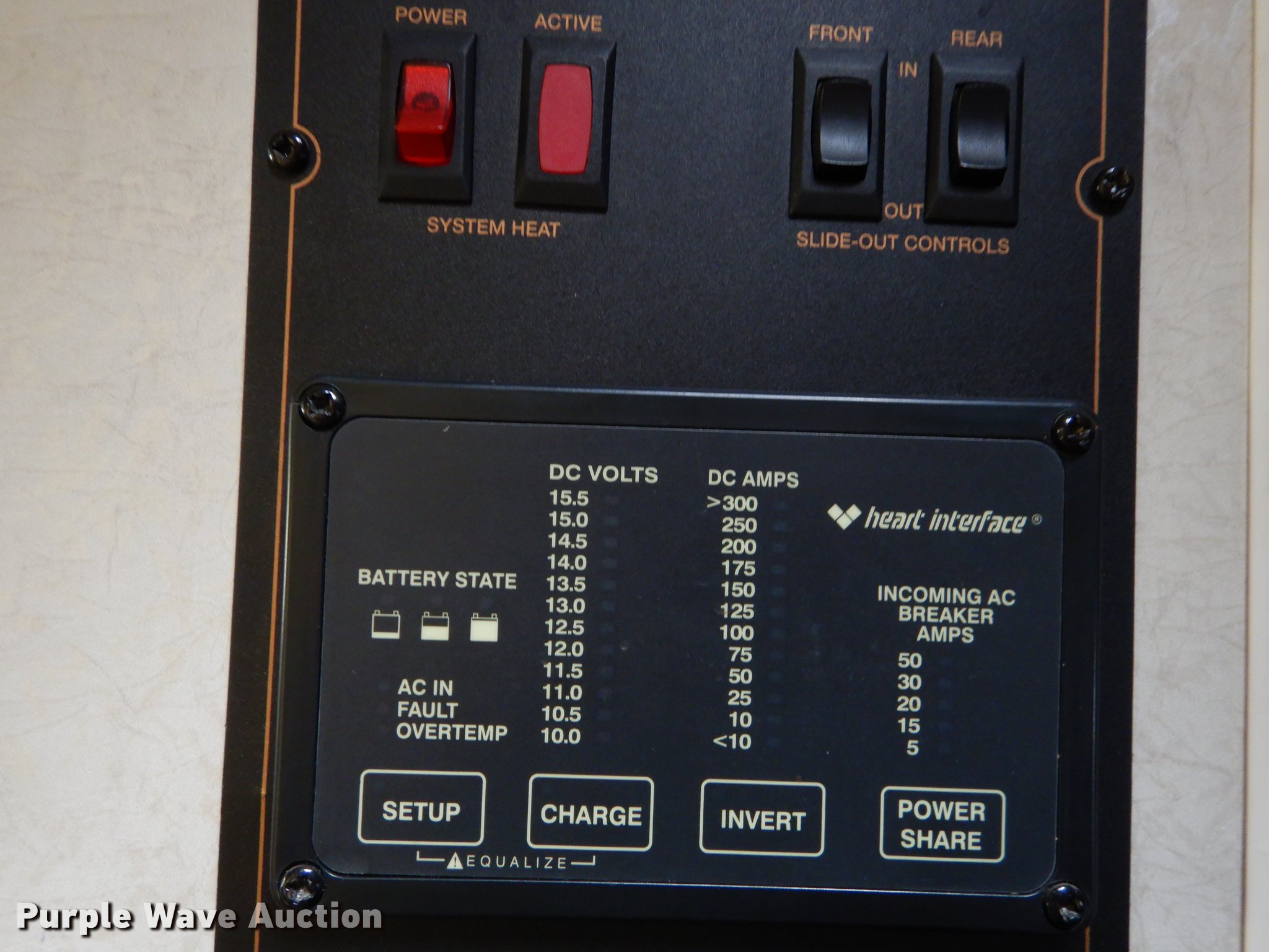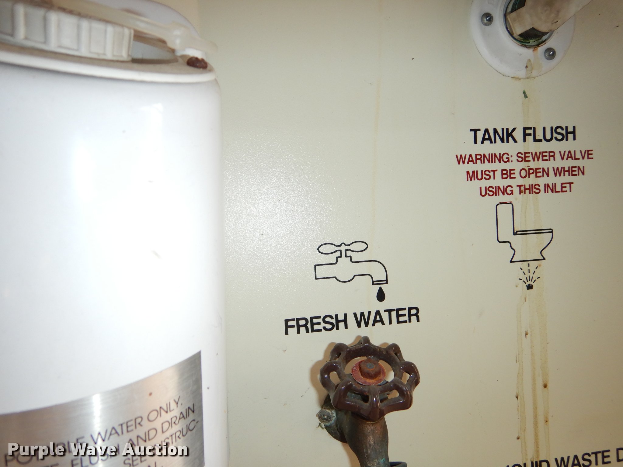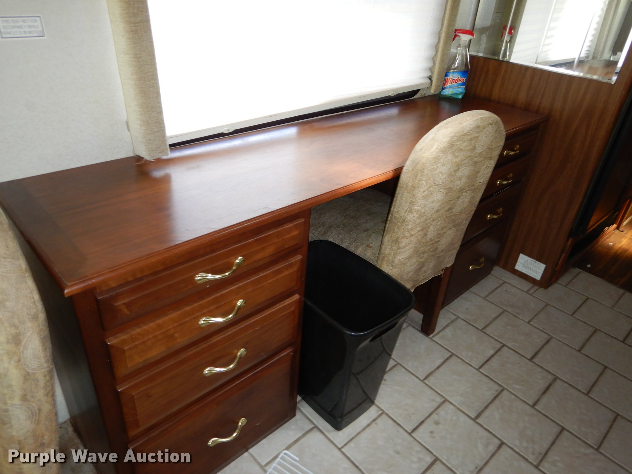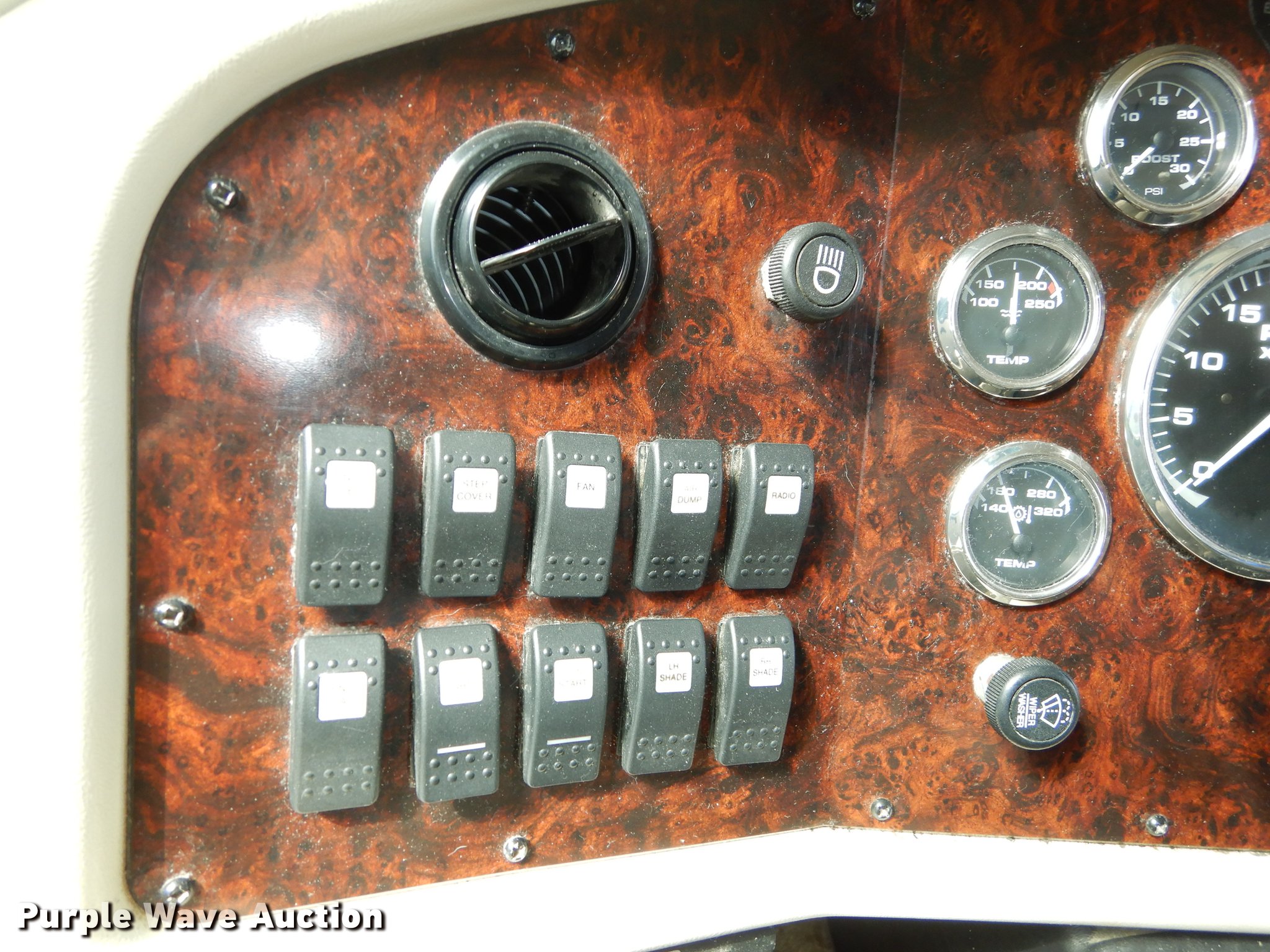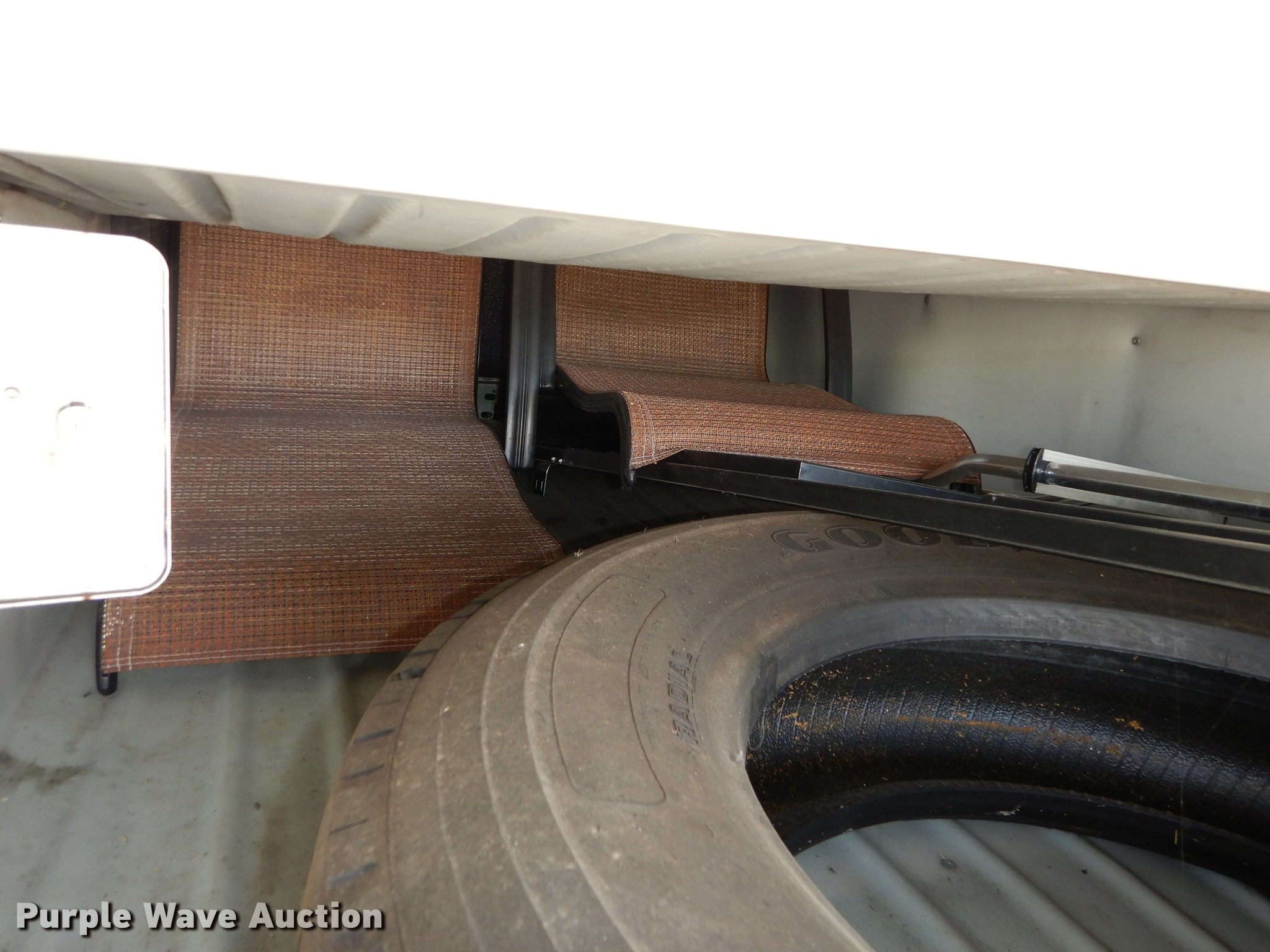 Purple Wave is selling a used RV in Kansas. This item is a 2002 Monaco Road Master Diplomat RV with the following: 79,591 miles on odometer, 8.3L L6 diesel engine, Allison automatic transmission, 39'L, AC and heat, Tilt, Telescoping steering wheel, Cruise, AM/FM/CD, Power and heated mirrors, Cloth interior, Jensen rear view camera, Fog lights, (2) slide-outs, Super slide-out platform, (8) canopies, (2) Sharp televisions, Couch, Fold-up table with two chairs, Office desk, Carpet, vinyl, and linoleum flooring, Storage cabinets, Kitchen, Stainless steel sink, Convection sensor microwave, Coffee maker, Wedgewood three burner stove, Norcold refrigerator/freezer with ice maker, Bathroom, Shower, Toilet, Sink, Storage, Bedroom, Bed, Storage, Mirrored closet, (3) patio chairs, Freedom combintation inverter/charger, Duo Therm roof AC unit, Floor heat vents, Bicycle rack, (2) bicycles, Trek and Schwinn,, Water tank system, Fresh, City, Waste, Onan 7500 Quiet generator, Model 7.5HDKAJ11456, 3,708 hours on meter, Diesel engine, Single phase, 7.5 kW, RVA JII leveling system, Receiver hitch, Trailer wiring, Air brakes, Samson 275/70R22.5 tires, GVWR 32,000 lbs, 21'L wheel base, Owners manual, Dead battery, Flat tire and off wheel, Additional tire included, Unit will not start
