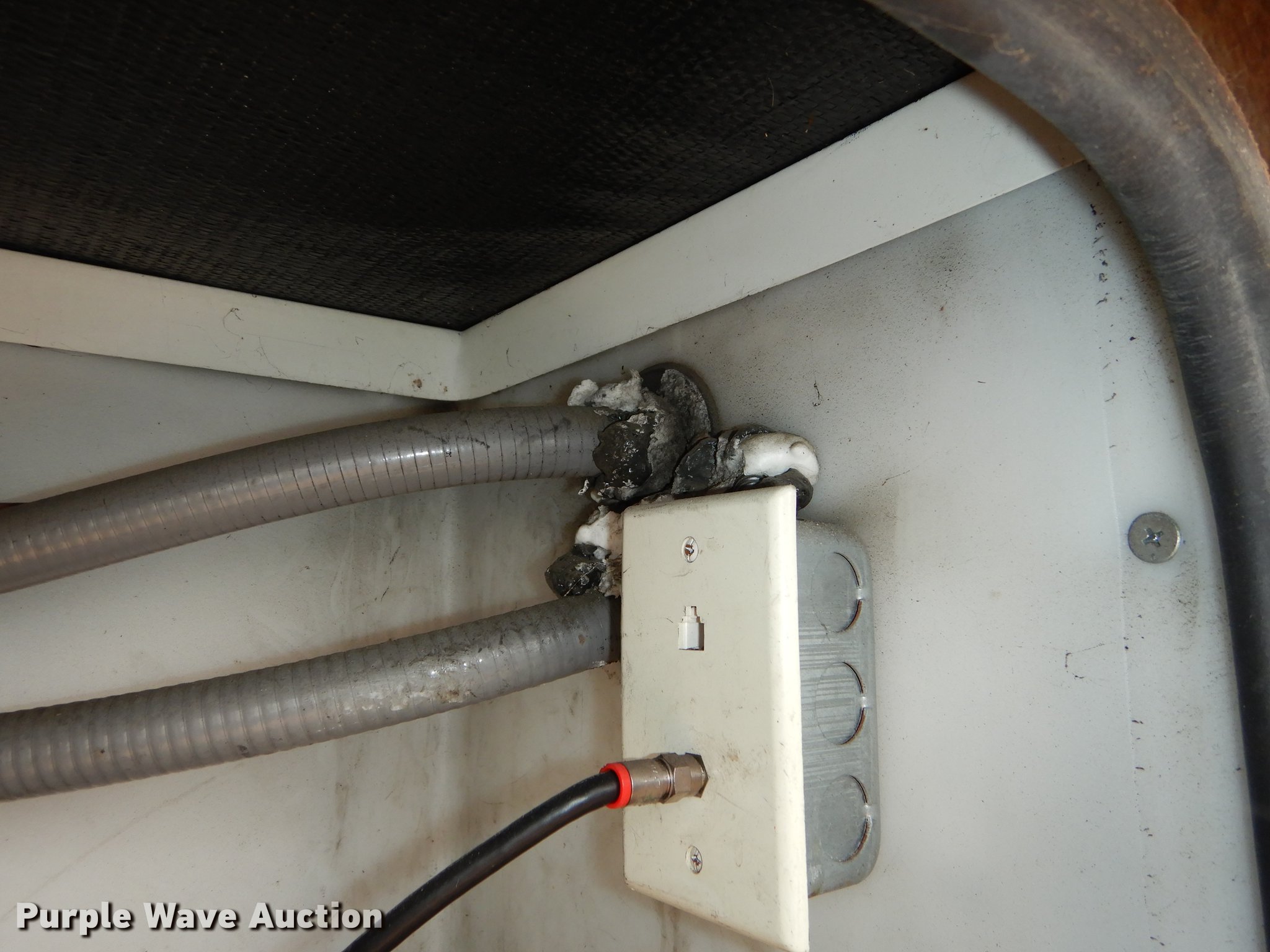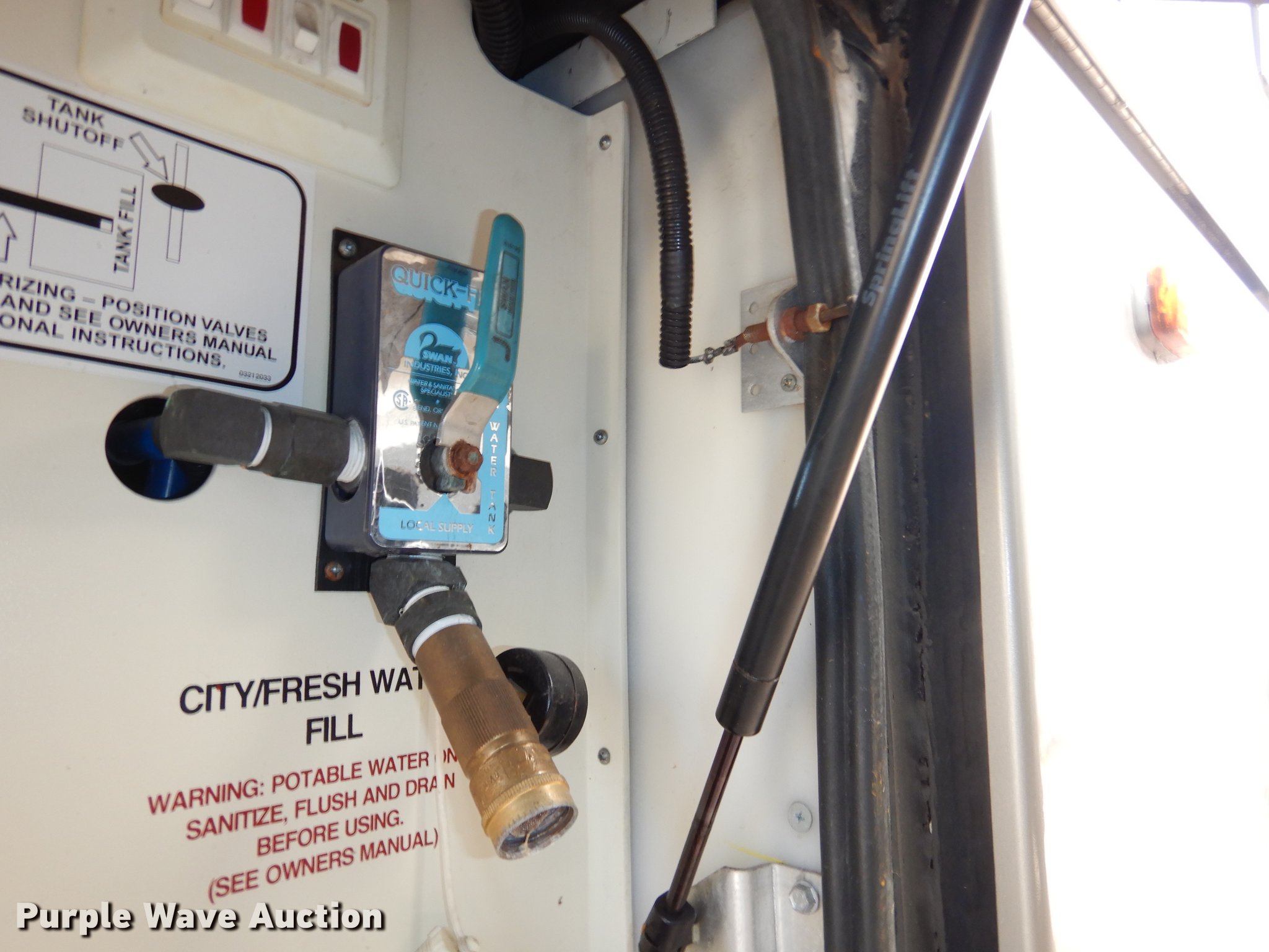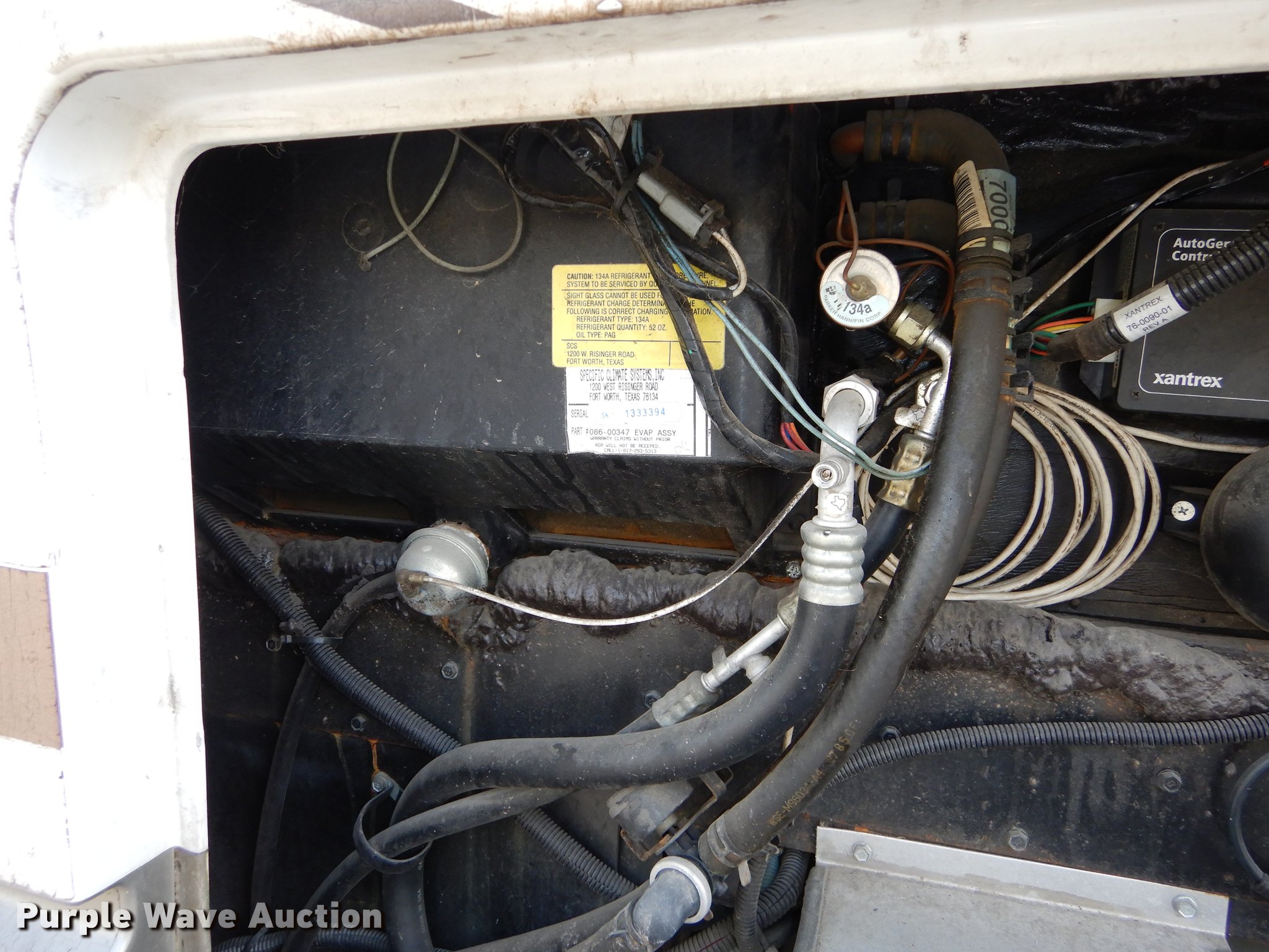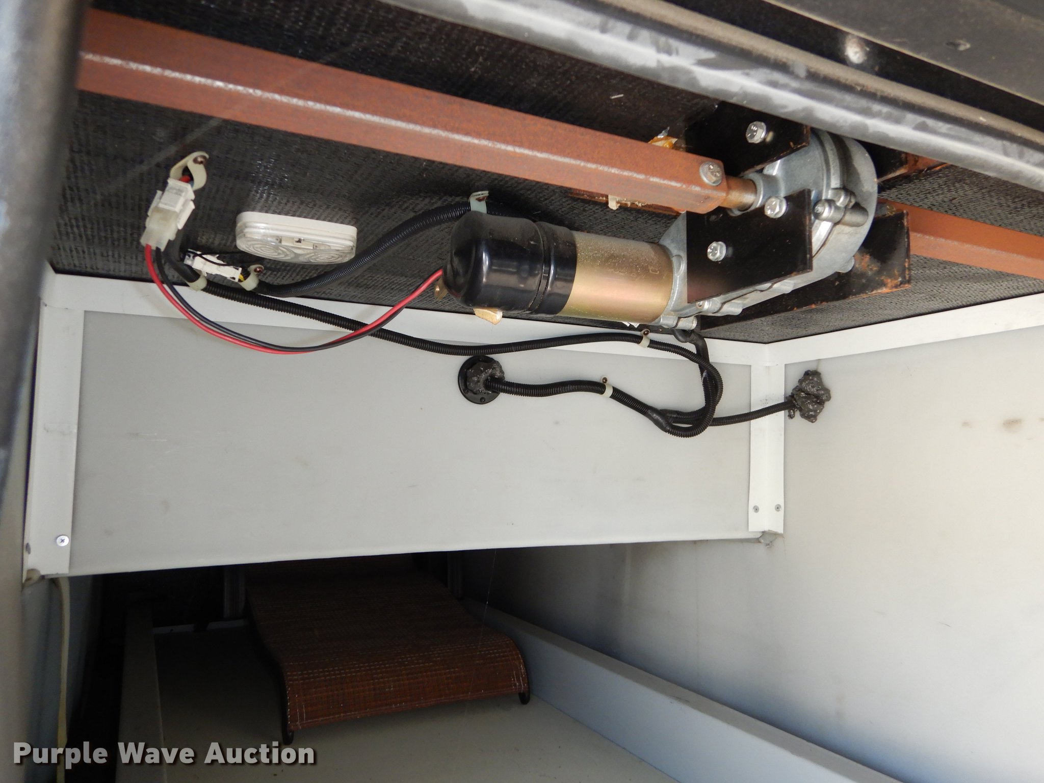 Purple Wave is selling a used RV in Kansas. This item is a 2002 Monaco Road Master Diplomat RV with the following: 79,591 miles on odometer, 8.3L L6 diesel engine, Allison automatic transmission, 39'L, AC and heat, Tilt, Telescoping steering wheel, Cruise, AM/FM/CD, Power and heated mirrors, Cloth interior, Jensen rear view camera, Fog lights, (2) slide-outs, Super slide-out platform, (8) canopies, (2) Sharp televisions, Couch, Fold-up table with two chairs, Office desk, Carpet, vinyl, and linoleum flooring, Storage cabinets, Kitchen, Stainless steel sink, Convection sensor microwave, Coffee maker, Wedgewood three burner stove, Norcold refrigerator/freezer with ice maker, Bathroom, Shower, Toilet, Sink, Storage, Bedroom, Bed, Storage, Mirrored closet, (3) patio chairs, Freedom combintation inverter/charger, Duo Therm roof AC unit, Floor heat vents, Bicycle rack, (2) bicycles, Trek and Schwinn,, Water tank system, Fresh, City, Waste, Onan 7500 Quiet generator, Model 7.5HDKAJ11456, 3,708 hours on meter, Diesel engine, Single phase, 7.5 kW, RVA JII leveling system, Receiver hitch, Trailer wiring, Air brakes, Samson 275/70R22.5 tires, GVWR 32,000 lbs, 21'L wheel base, Owners manual, Dead battery, Flat tire and off wheel, Additional tire included, Unit will not start