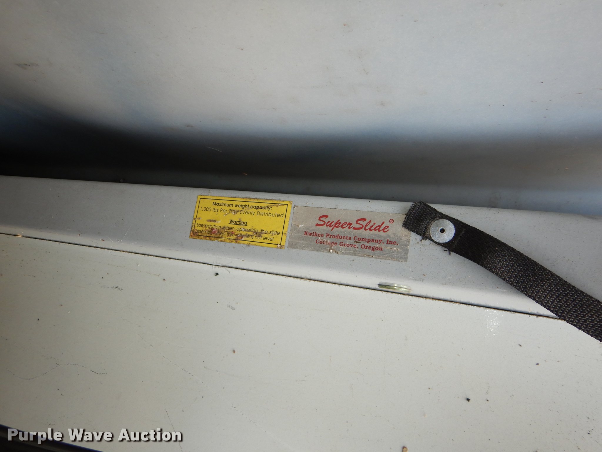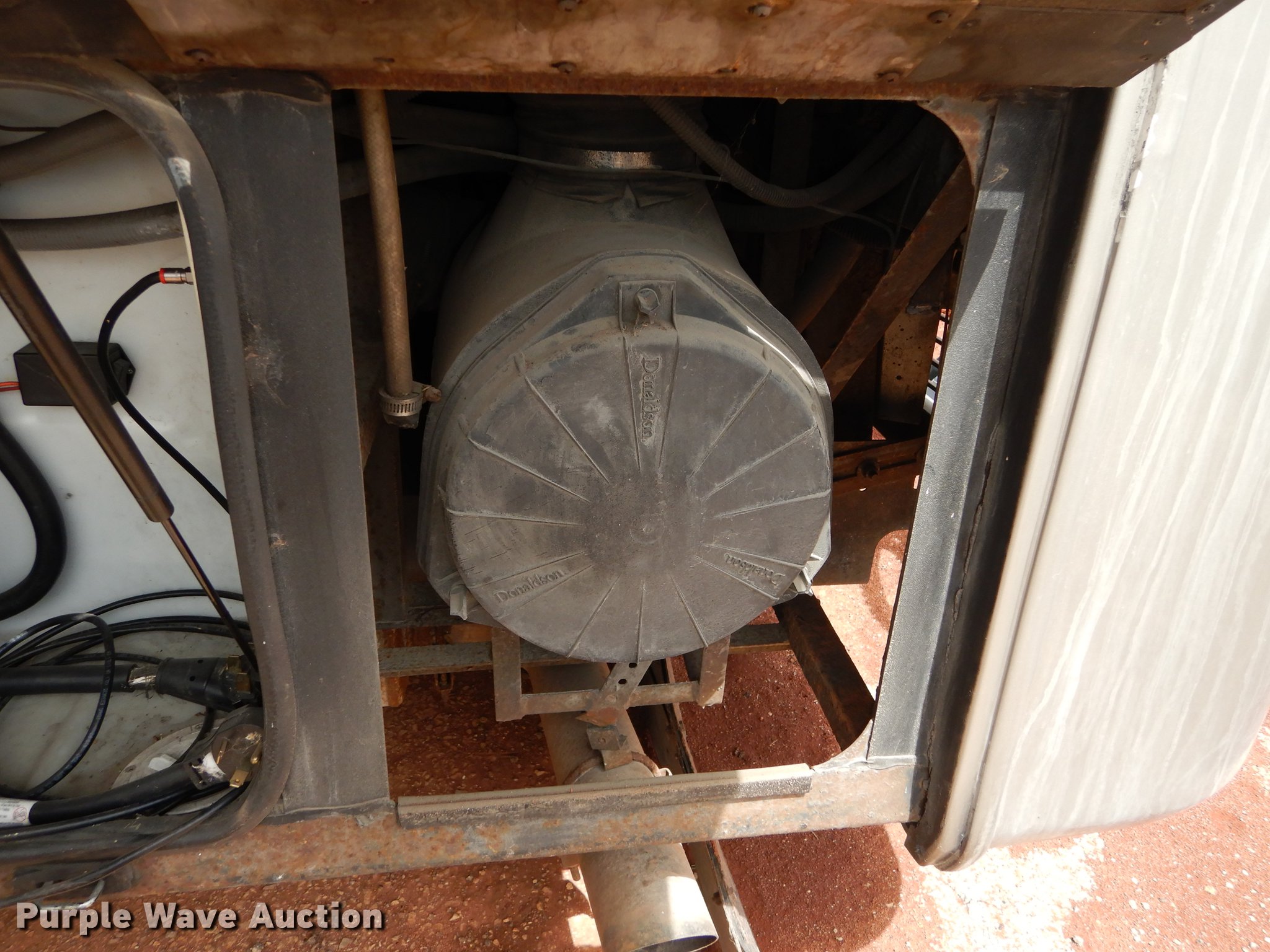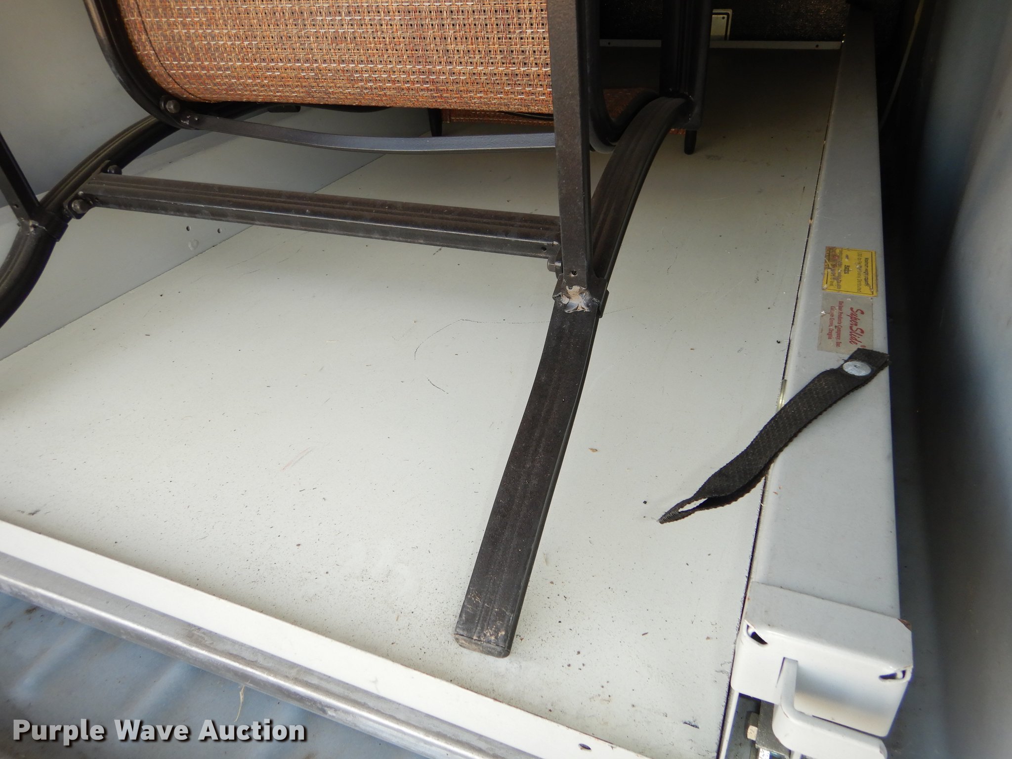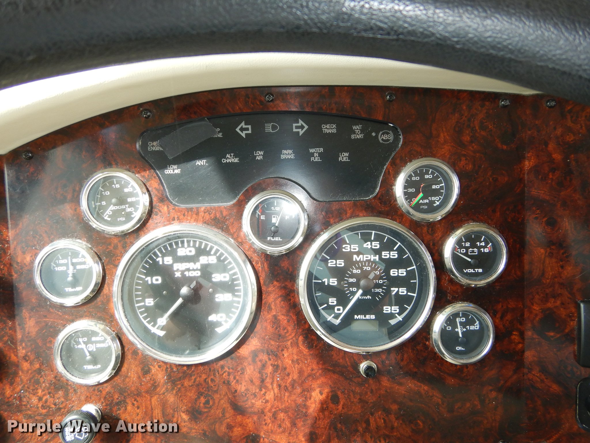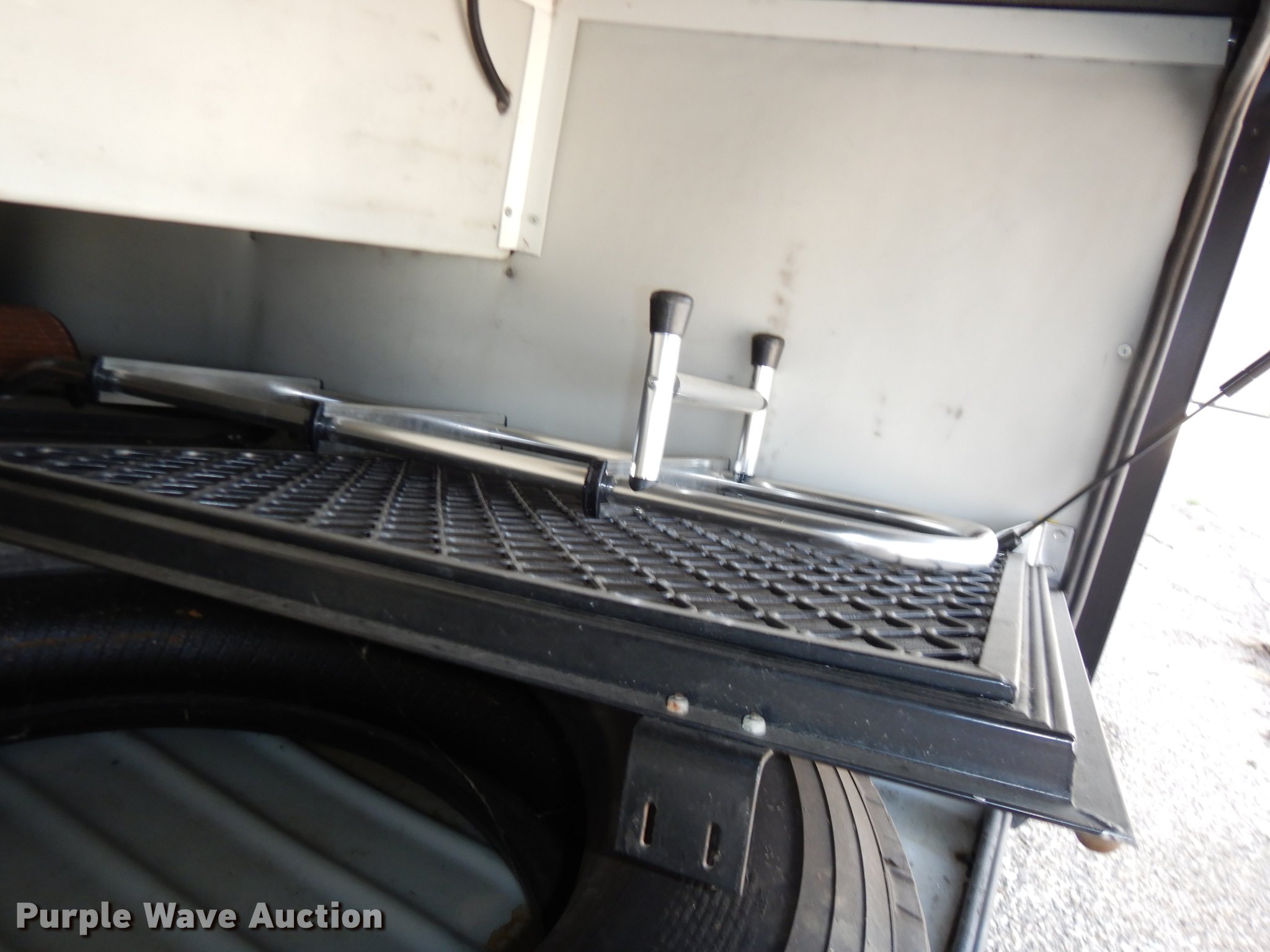 Purple Wave is selling a used RV in Kansas. This item is a 2002 Monaco Road Master Diplomat RV with the following: 79,591 miles on odometer, 8.3L L6 diesel engine, Allison automatic transmission, 39'L, AC and heat, Tilt, Telescoping steering wheel, Cruise, AM/FM/CD, Power and heated mirrors, Cloth interior, Jensen rear view camera, Fog lights, (2) slide-outs, Super slide-out platform, (8) canopies, (2) Sharp televisions, Couch, Fold-up table with two chairs, Office desk, Carpet, vinyl, and linoleum flooring, Storage cabinets, Kitchen, Stainless steel sink, Convection sensor microwave, Coffee maker, Wedgewood three burner stove, Norcold refrigerator/freezer with ice maker, Bathroom, Shower, Toilet, Sink, Storage, Bedroom, Bed, Storage, Mirrored closet, (3) patio chairs, Freedom combintation inverter/charger, Duo Therm roof AC unit, Floor heat vents, Bicycle rack, (2) bicycles, Trek and Schwinn,, Water tank system, Fresh, City, Waste, Onan 7500 Quiet generator, Model 7.5HDKAJ11456, 3,708 hours on meter, Diesel engine, Single phase, 7.5 kW, RVA JII leveling system, Receiver hitch, Trailer wiring, Air brakes, Samson 275/70R22.5 tires, GVWR 32,000 lbs, 21'L wheel base, Owners manual, Dead battery, Flat tire and off wheel, Additional tire included, Unit will not start
