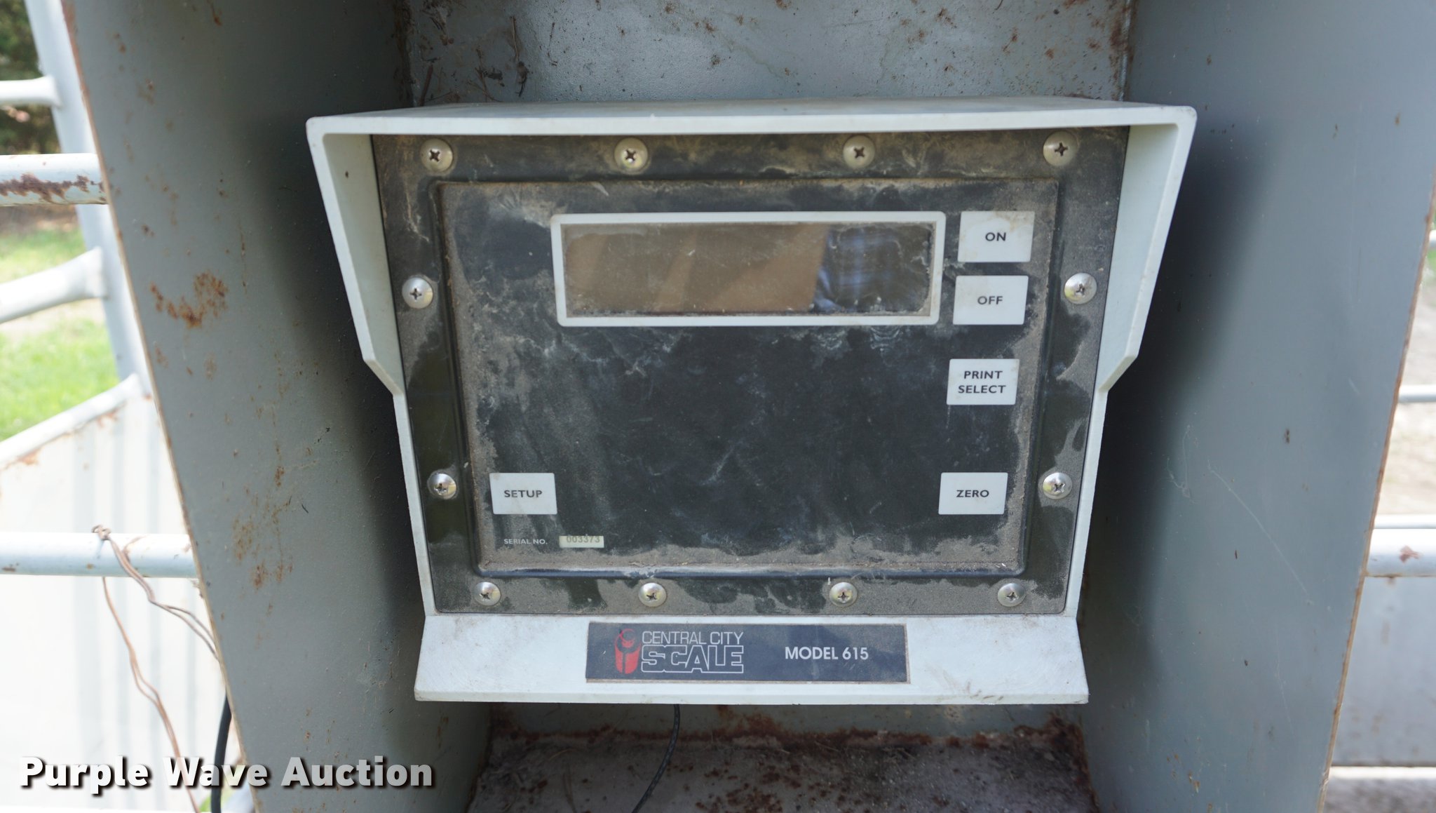 Purple Wave is selling a used Livestock Equip. in Kansas. This item is a Livestock scale and platform with the following: Central City 615 scale, 8'L x 34" platform