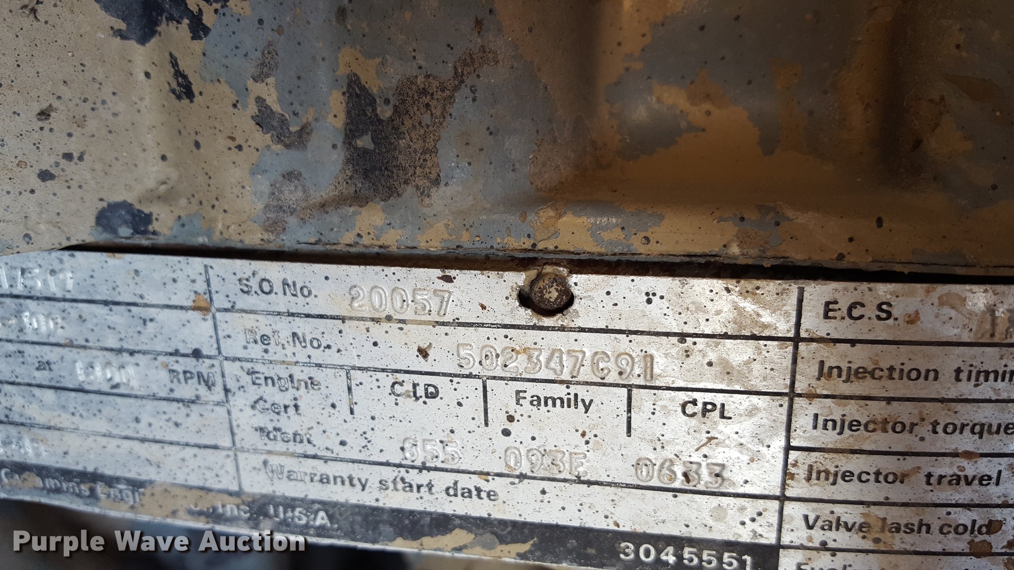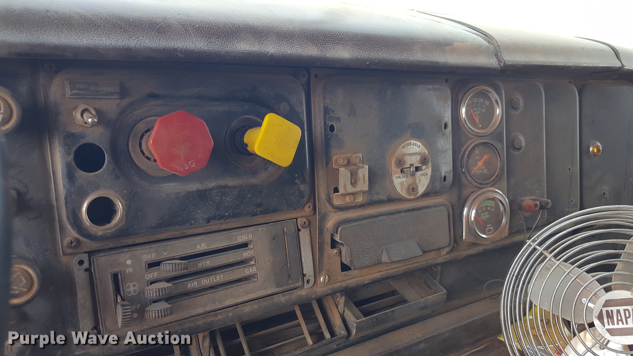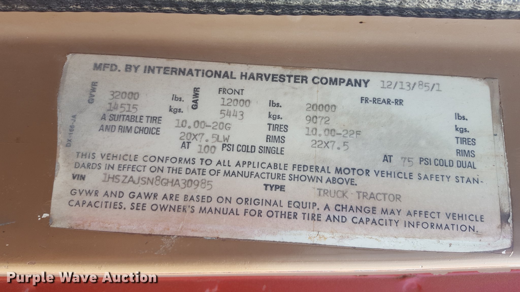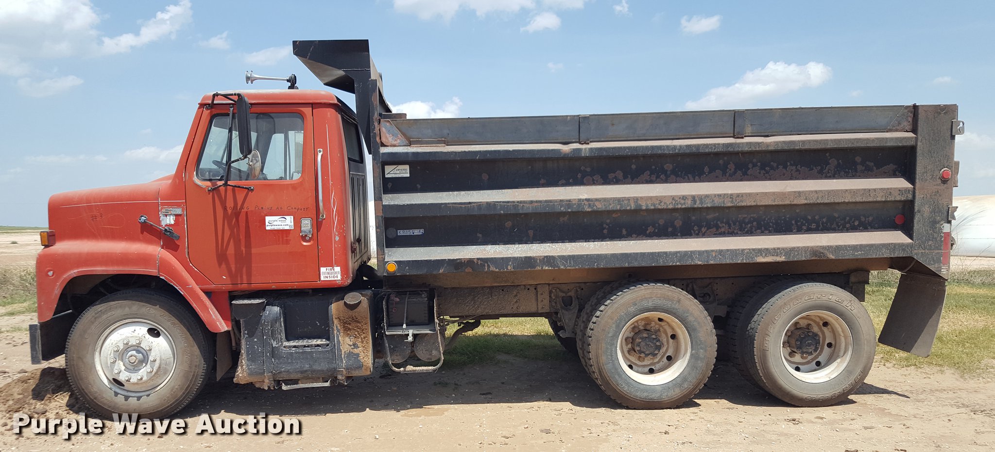 Purple Wave is selling a used Construction Dump Truck in Texas. This item is a 1986 International S2200 dump truck with the following: 553,972 miles on odometer, Cummins NTC 14.0L L6 turbo diesel engine, 300 HP, Serial 20057, Manual transmission, Tandem axle, AC and heat, Unknown operating condition, Suspension seat, 15'L x 96"W steel dump bed, 48" side height, Single ram hoist, Air operated end gate, Single fuel tank, Spring suspension, Air brakes, 11R22.5 tires, GVWR 32,000 lbs, FAWR 12,000 lbs, RAWR 20,000 lbs