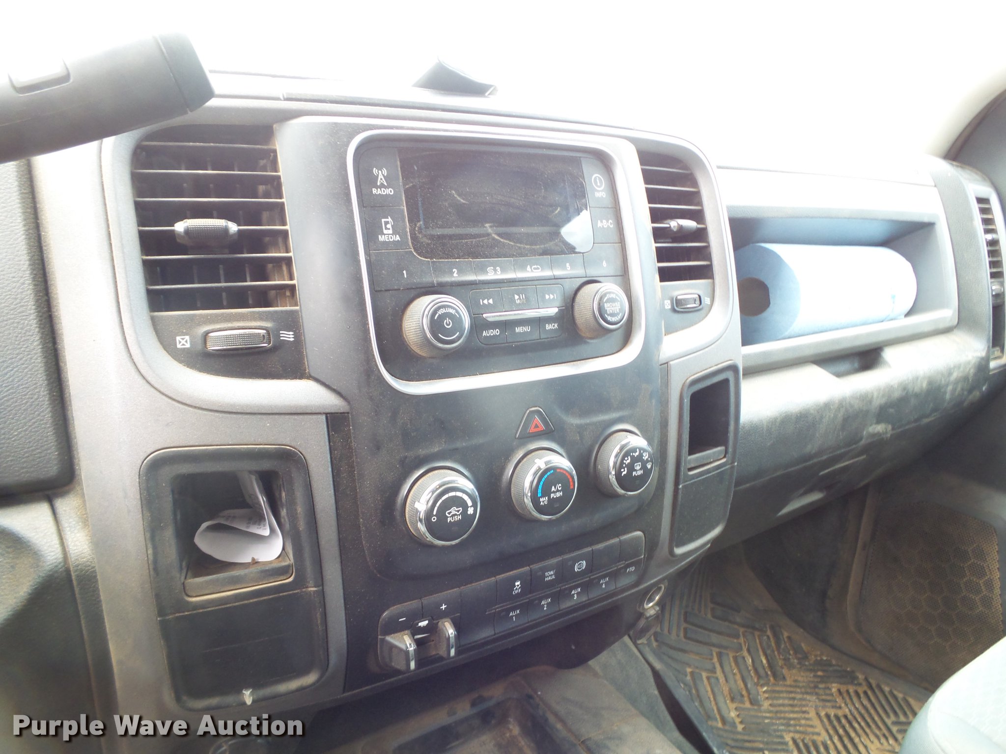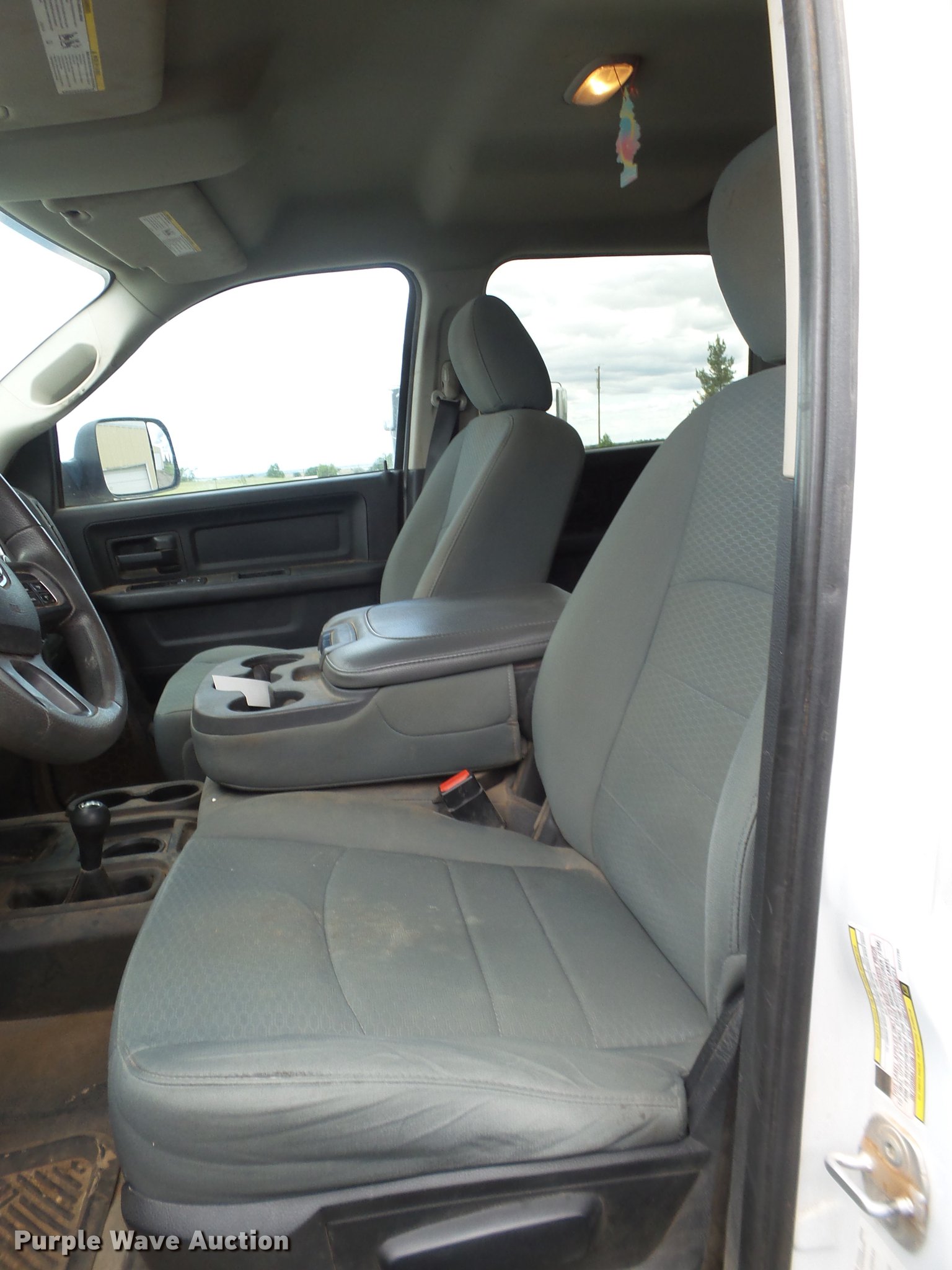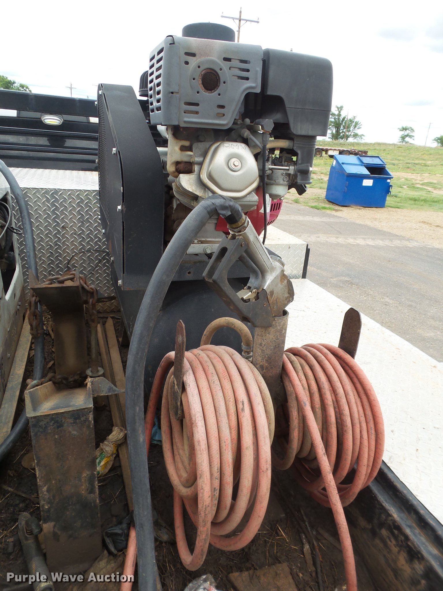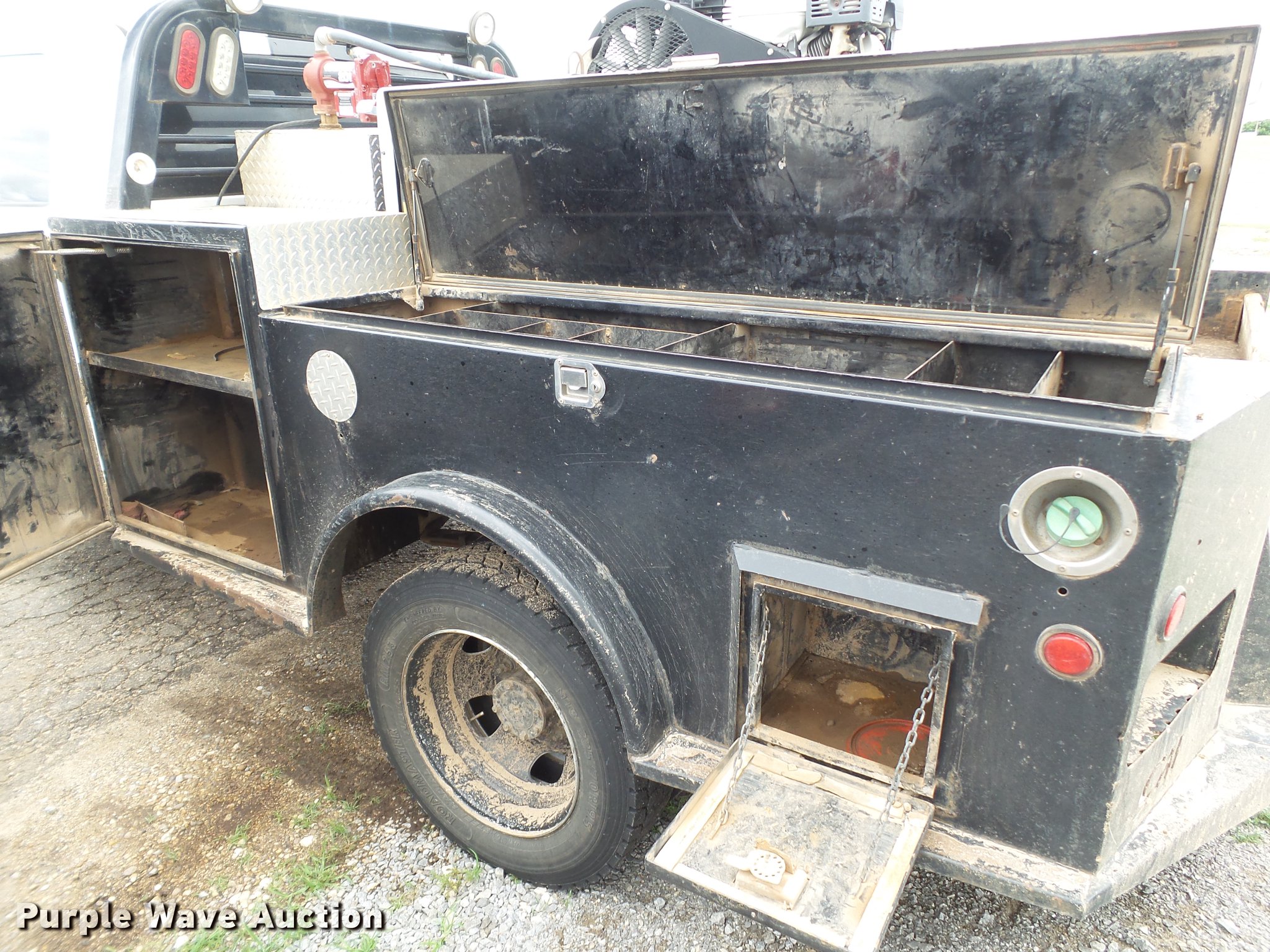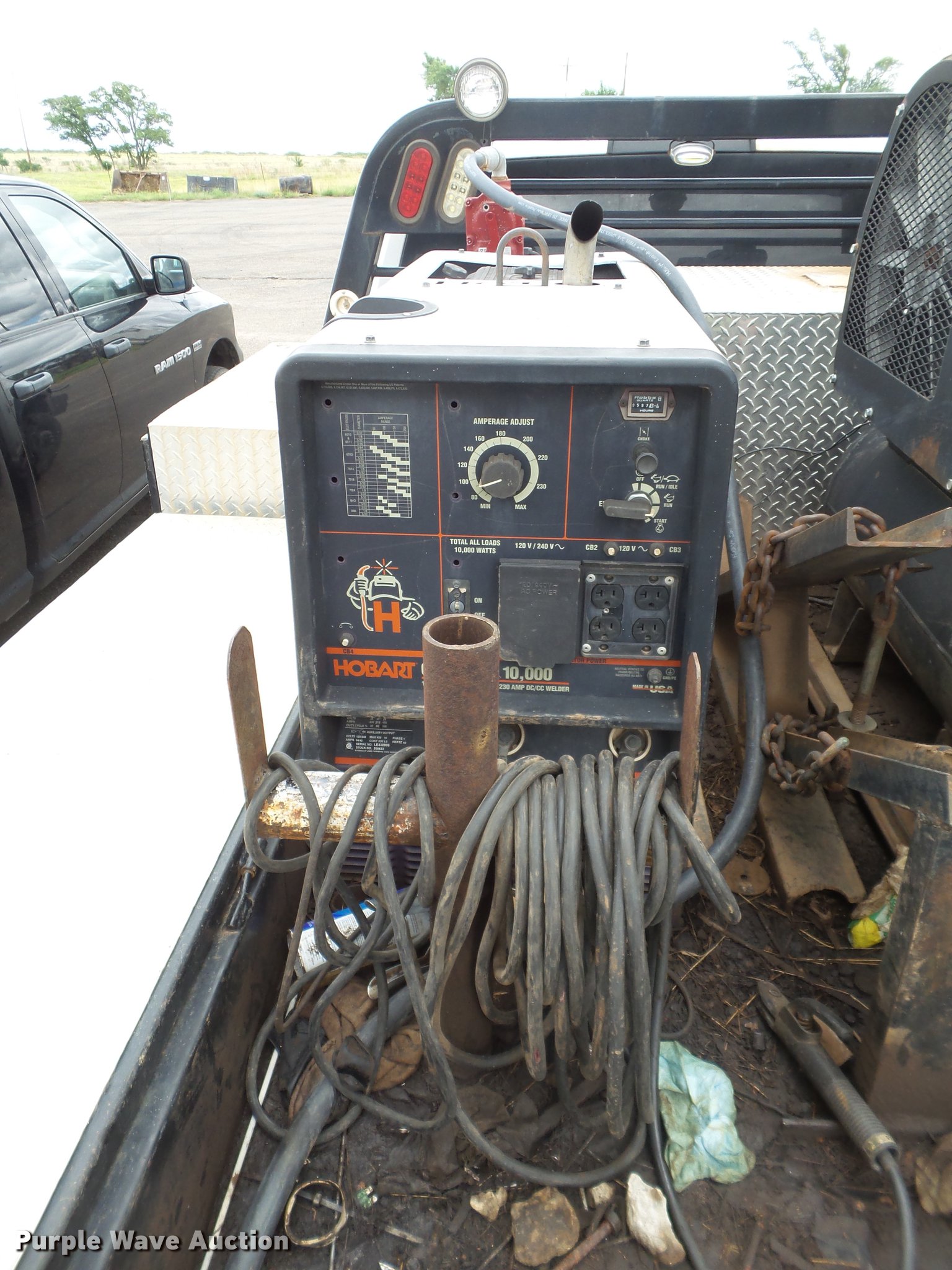 Purple Wave is selling a used Flat Bed Truck in Texas. This item is a 2014 Dodge Ram 5500 Crew Cab flatbed truck with the following: 165,512 miles on odometer, 6.7L L6 OHV 24V turbo diesel engine, Automatic transmission, Four wheel drive, AC and heat, Tilt, Cruise, AM/FM, Power windows, locks, and mirrors, Cloth interior, Front tow hooks, Running boards, Grill guard, CM flatbed, (6) compartments, Toolbox, Hobart Champion welder, 597 hours on meter, Gas engine, 10,000 watts, Leads, Air compressor, Honda GX390 gas engine, Electric start, Auxiliary fuel tank, 100 gallon capacity, Electric pump, Hose and nozzle,, Receiver hitch, Trailer wiring, 225/70R19.5 tires, Cracked windshield