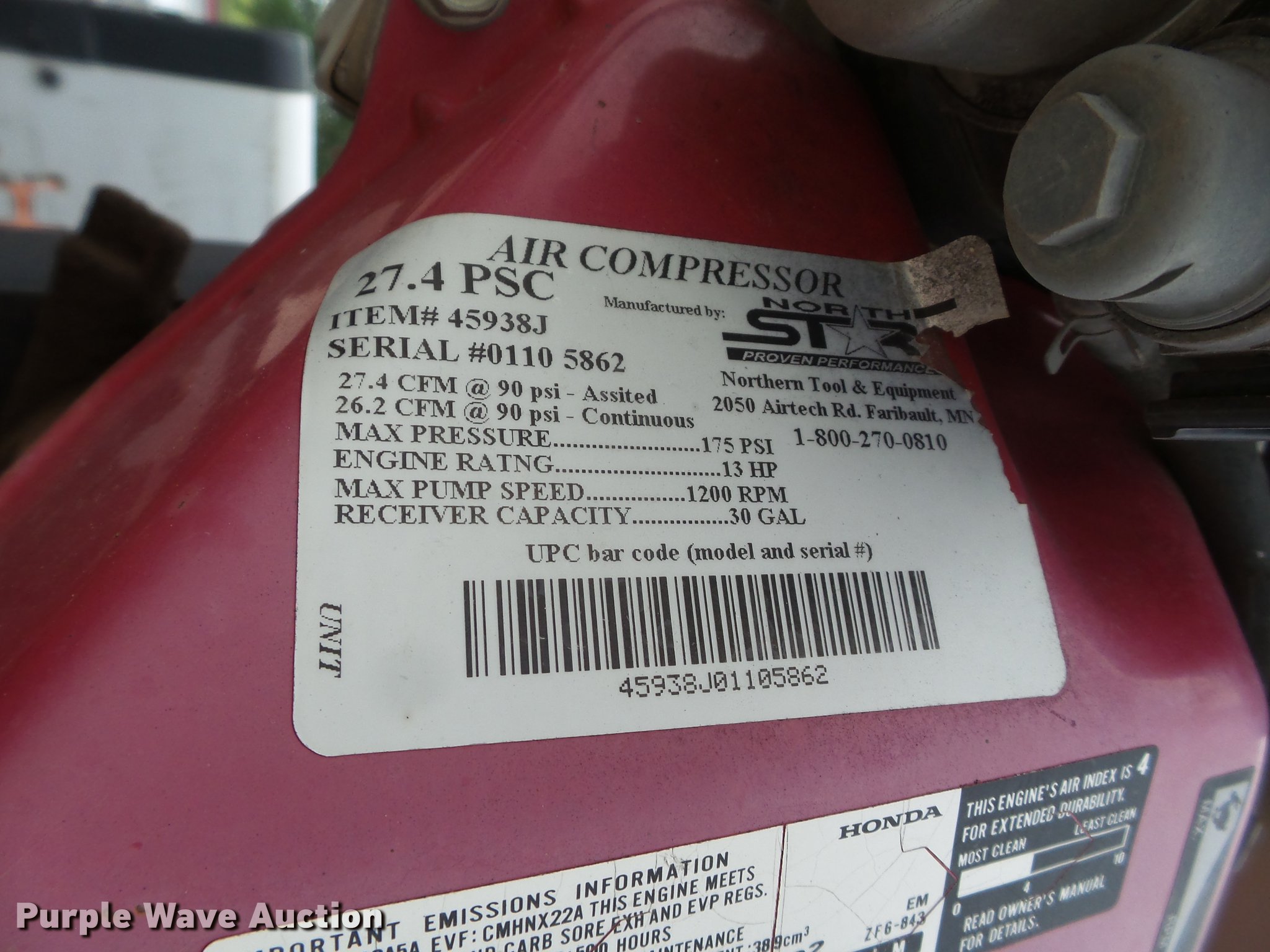 - Honda GX390 gas engine
