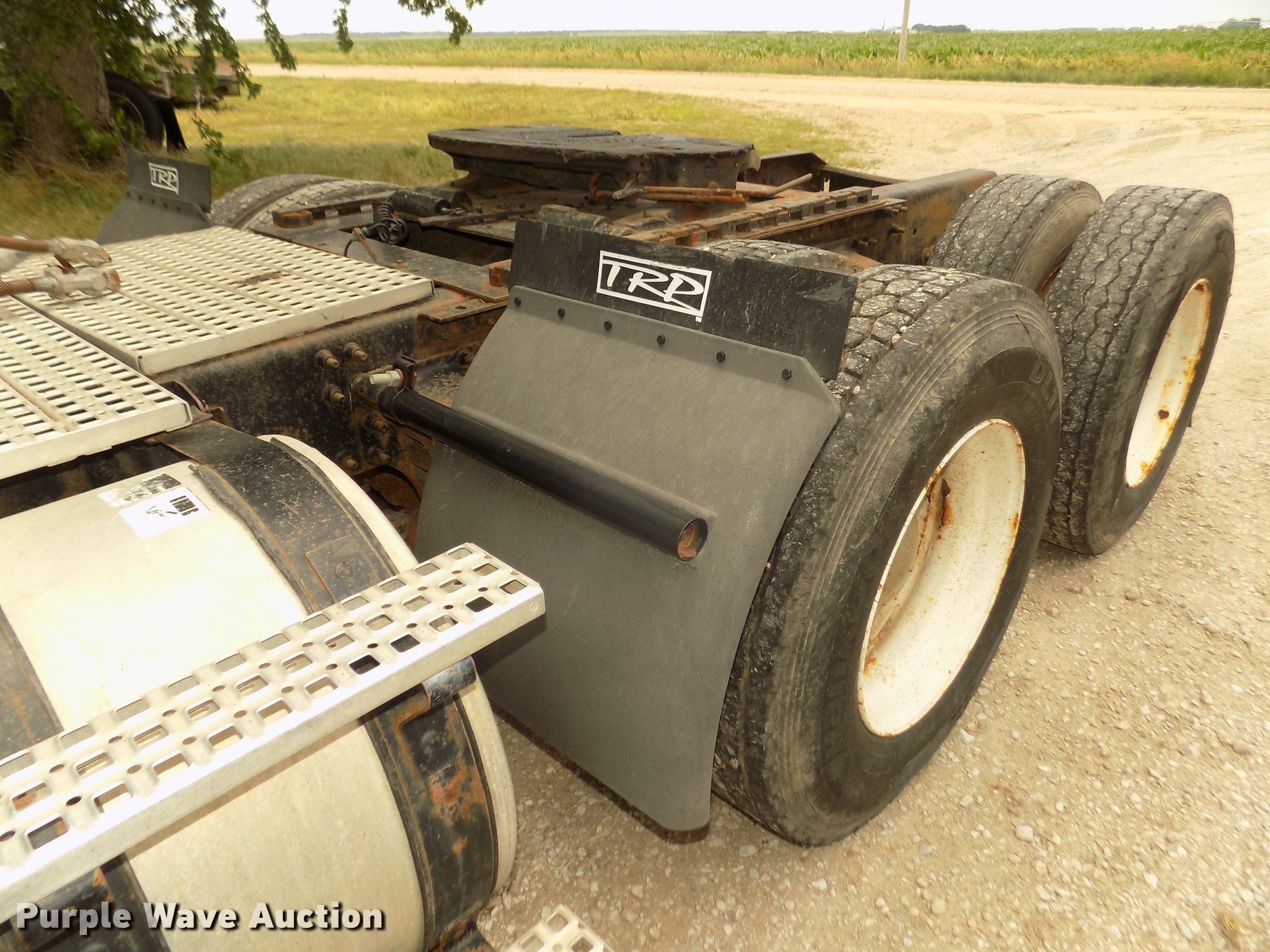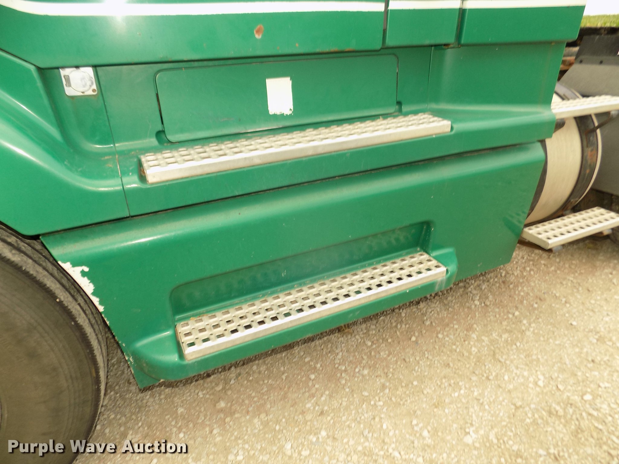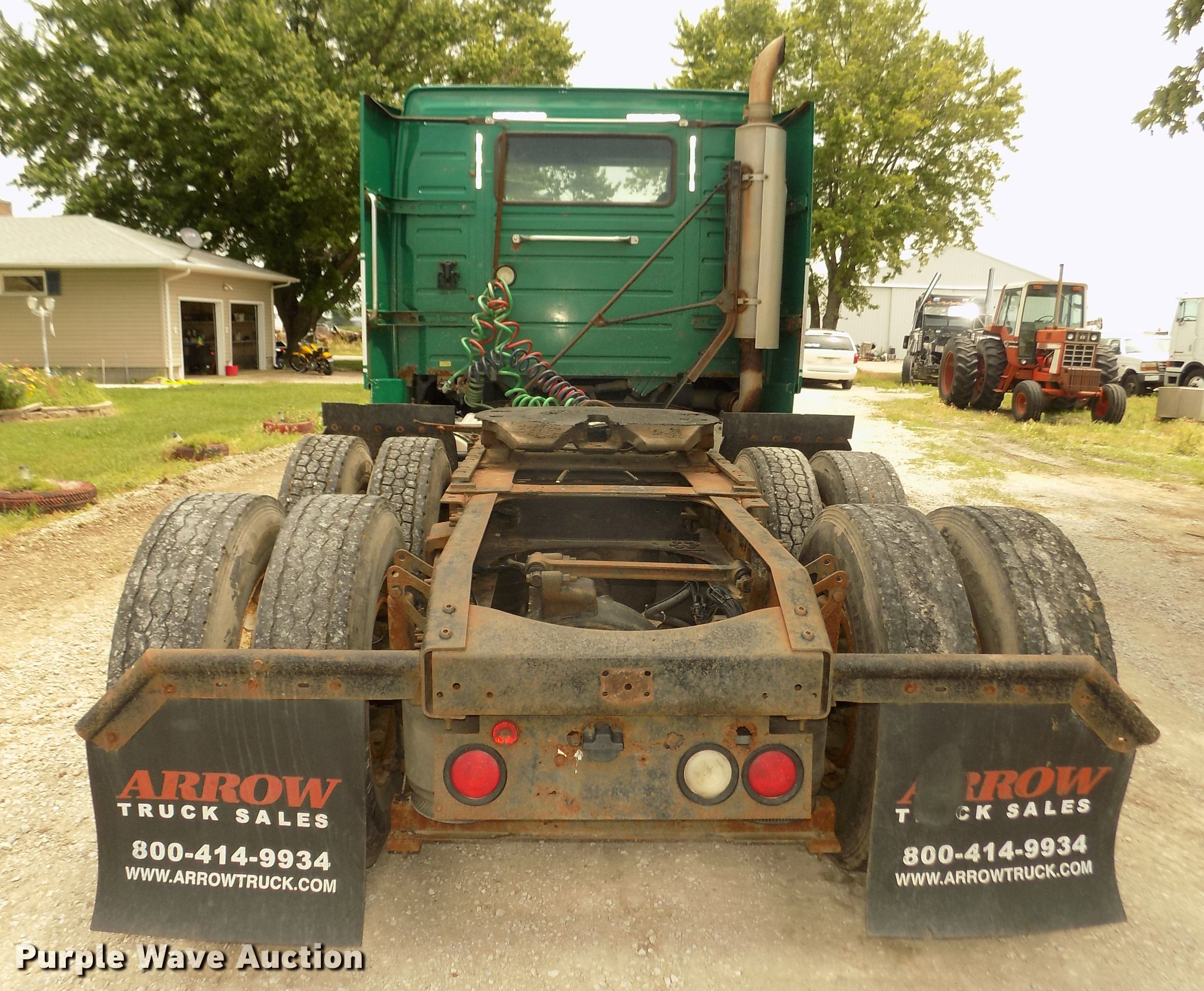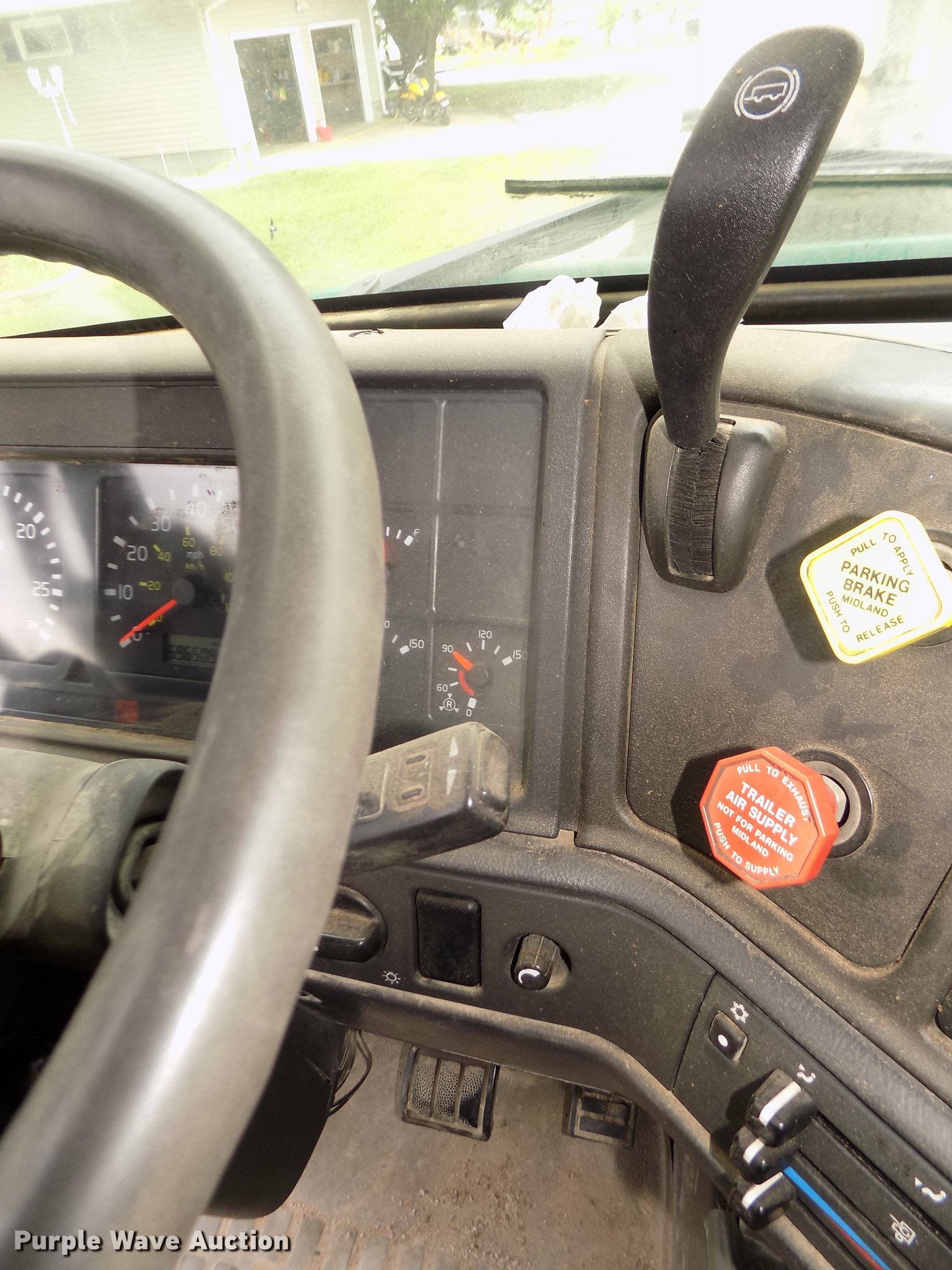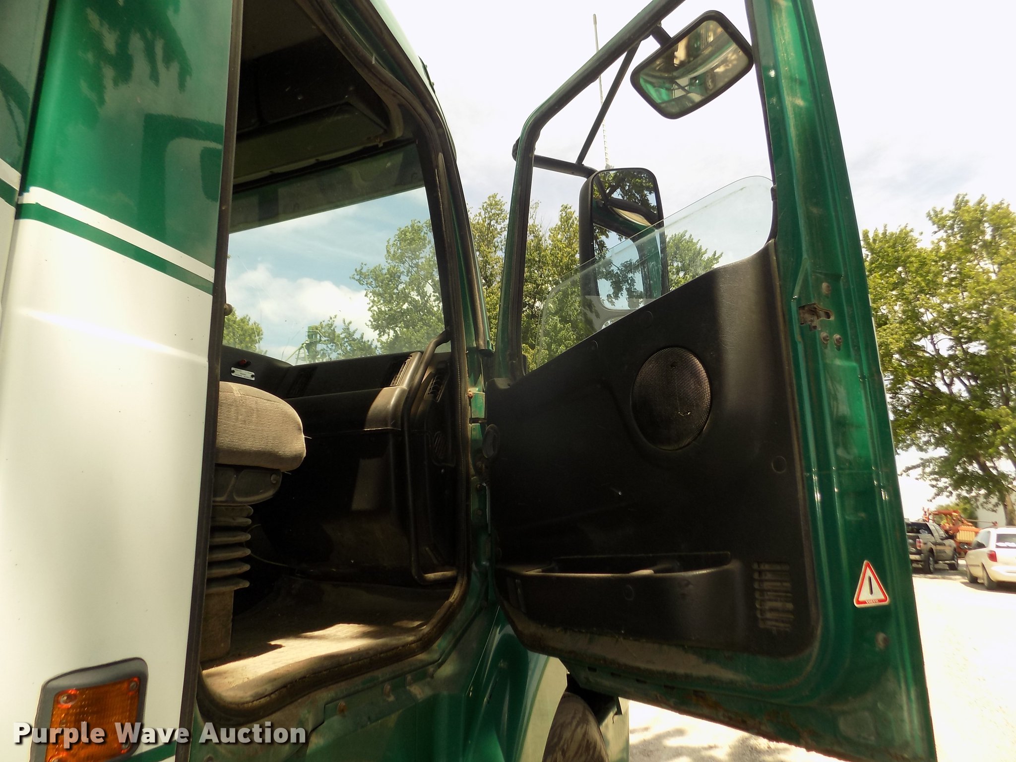 Purple Wave is selling a used Truck Tractor in Nebraska. This item is a 2001 Volvo VNL semi truck with the following: 696,510 miles on odometer, Cummins ISM 10.8L L6 turbo diesel engine, Manual transmission, Model RTL014913A135PE, Tandem axle, Inter-axle differential lock, AC and heat, AM/FM/CD, Power windows, Heated mirrors, Air suspension seat, Air ride cab, Block heater, Dump valves, Cab extenders, Overhead storage, Exterior visor, Single rear exhaust stack, Aluminum deck plate, Sliding fifth wheel plate, Quarter fenders, Mud flaps, 4:11 gear ratio, Air suspension, Air brakes, 160" wheelbase, Aluminum front wheels, Steel rear wheels, 11R24.5 tires, GVWR 50,350 lbs, FAWR 12,350 lbs, IAWR 19,000 lbs, RAWR 19,000 lbs, ABS light on, Check brake light on, Hood release handle bracket loose, Cracked windshield, Unit# 7