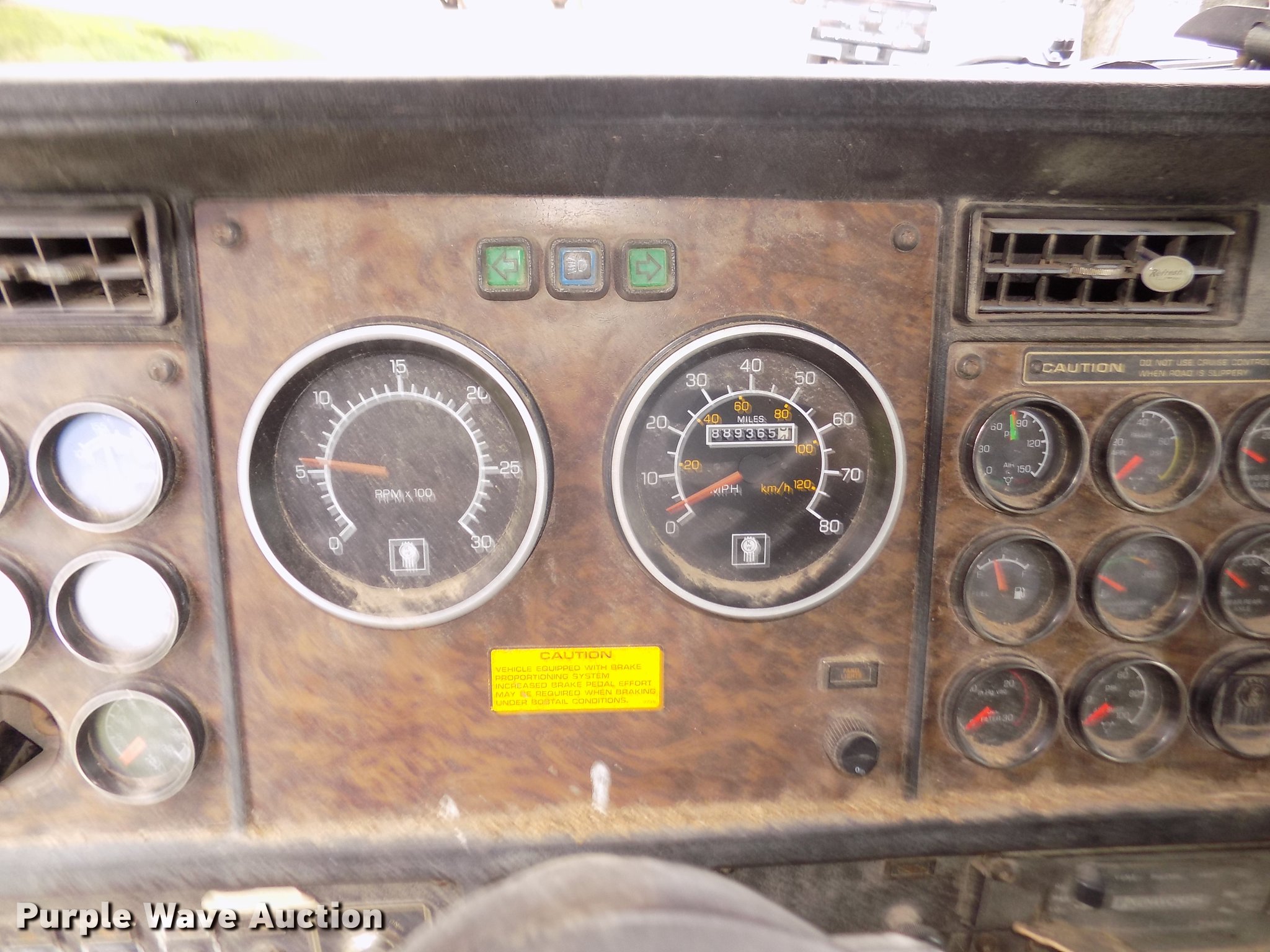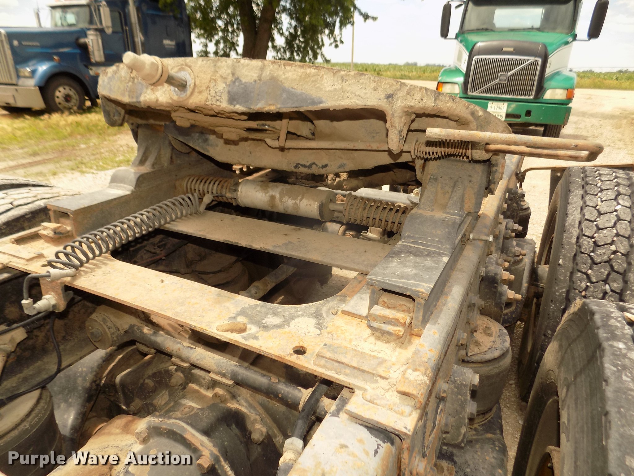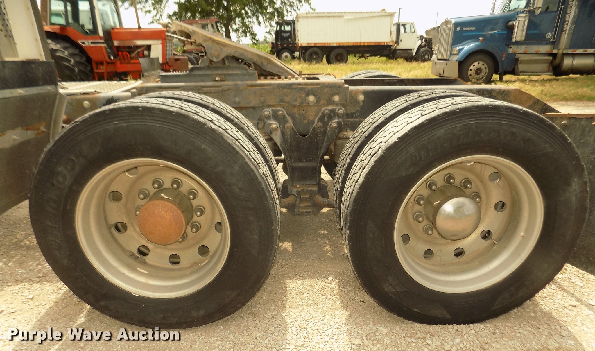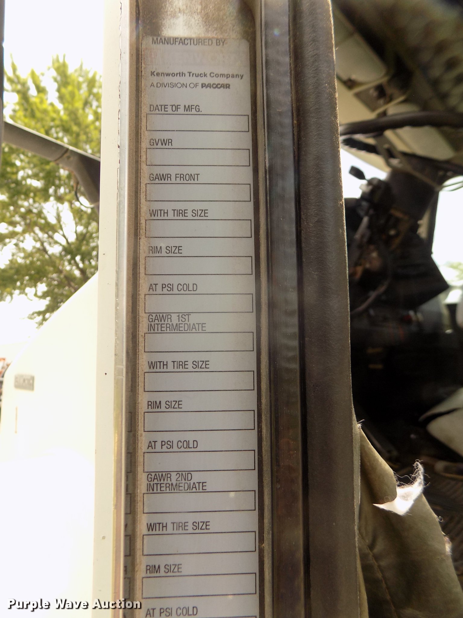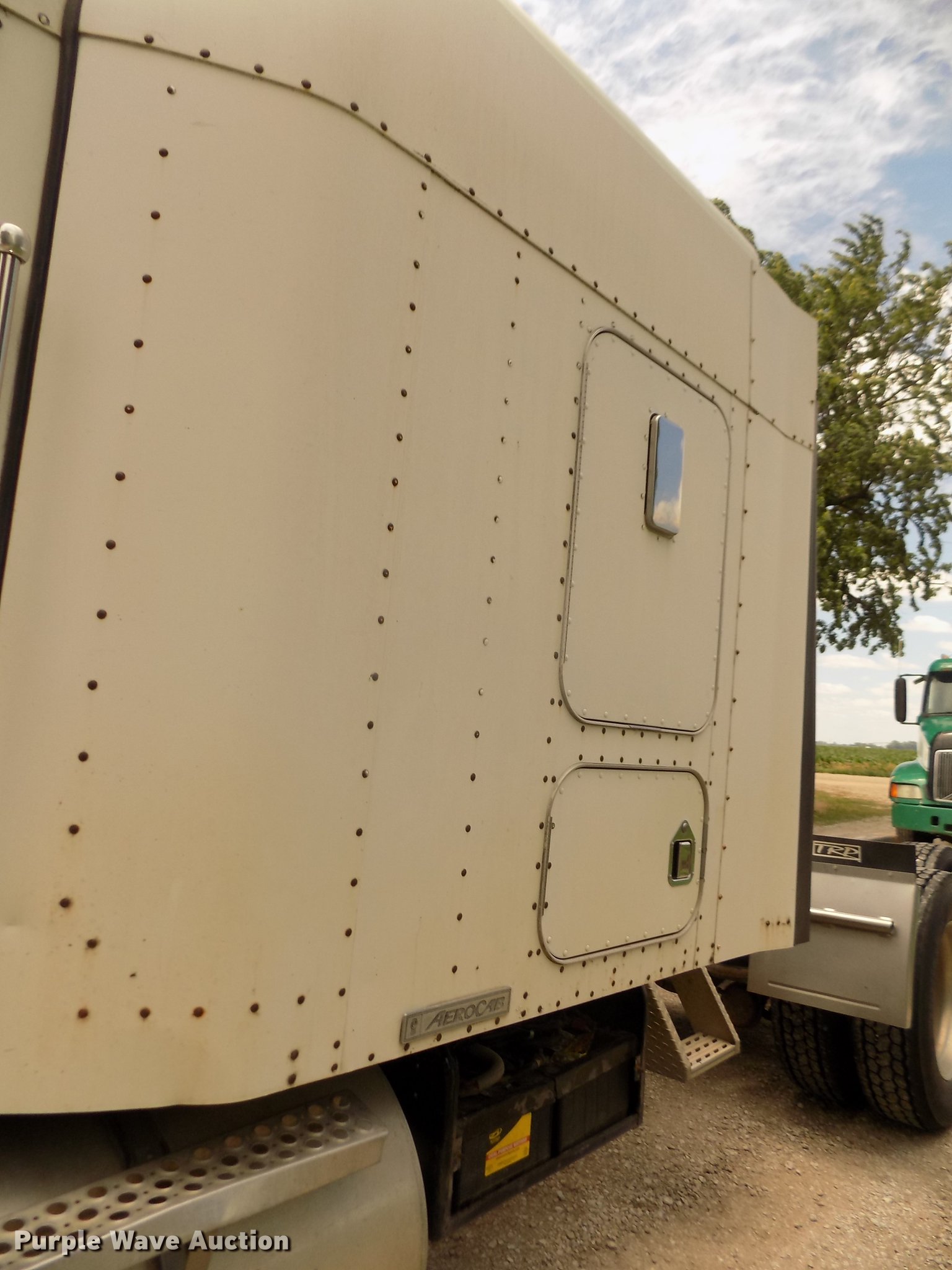Purple Wave is selling a used Truck Tractor in Nebraska. This item is a 1996 Kenworth T800B semi truck with the following: 889,366 miles on odometer, Detroit Diesel Series 60 12.7L L6 turbo diesel engine, Manual transmission, Tandem axle, Inter-axle differential lock, AC and heat, Cruise, AM/FM/CD, Power and heated mirrors, Air suspension seat, Motorola CM200 radios, Block heater, Cab extenders, AeroCab sleeper, 60", Single bed, Rear climate control, Dump valves, Chrome bumper, Single rear exhaust stack, Aluminum deck plate, Sliding fifth wheel plate, Dual fuel tanks, Quarter fenders, Mud flaps, Air suspension, Air brakes, Engine brake, 240" wheelbase, Steel front wheels, Aluminum rear wheels, 11R22.5 front tires, 285/75R24.5 rear tires, Windshield missing, Steering wheel bent