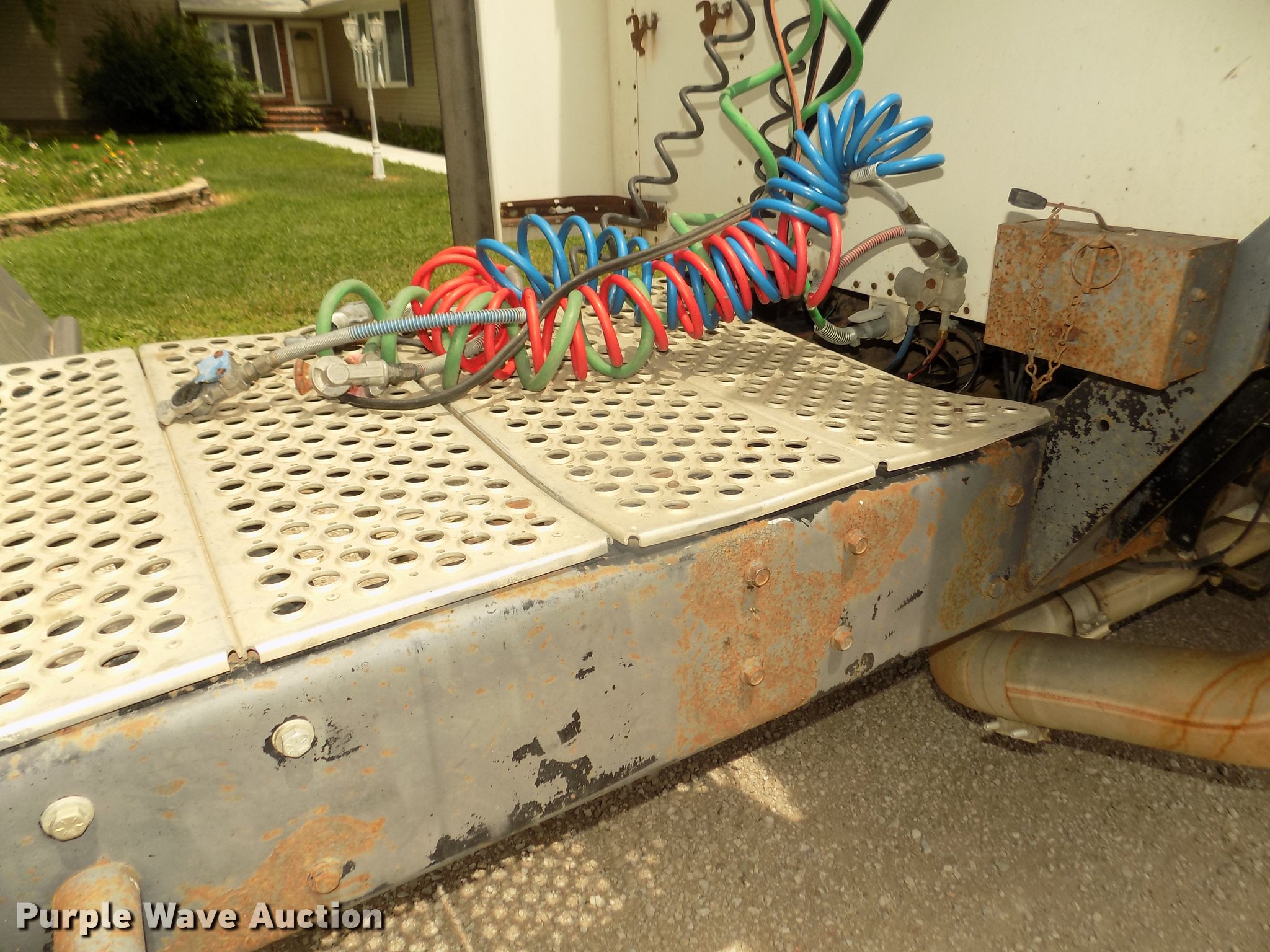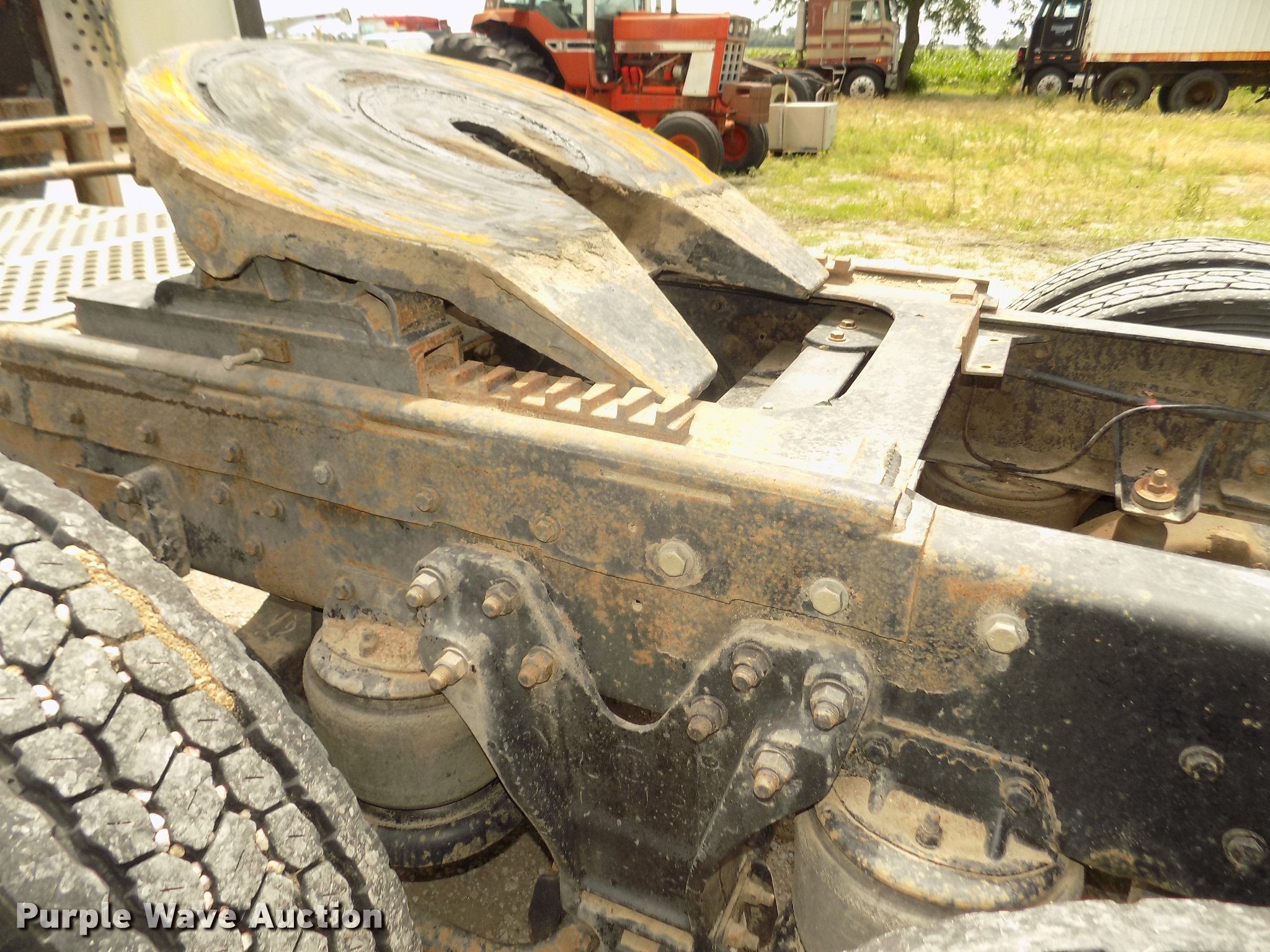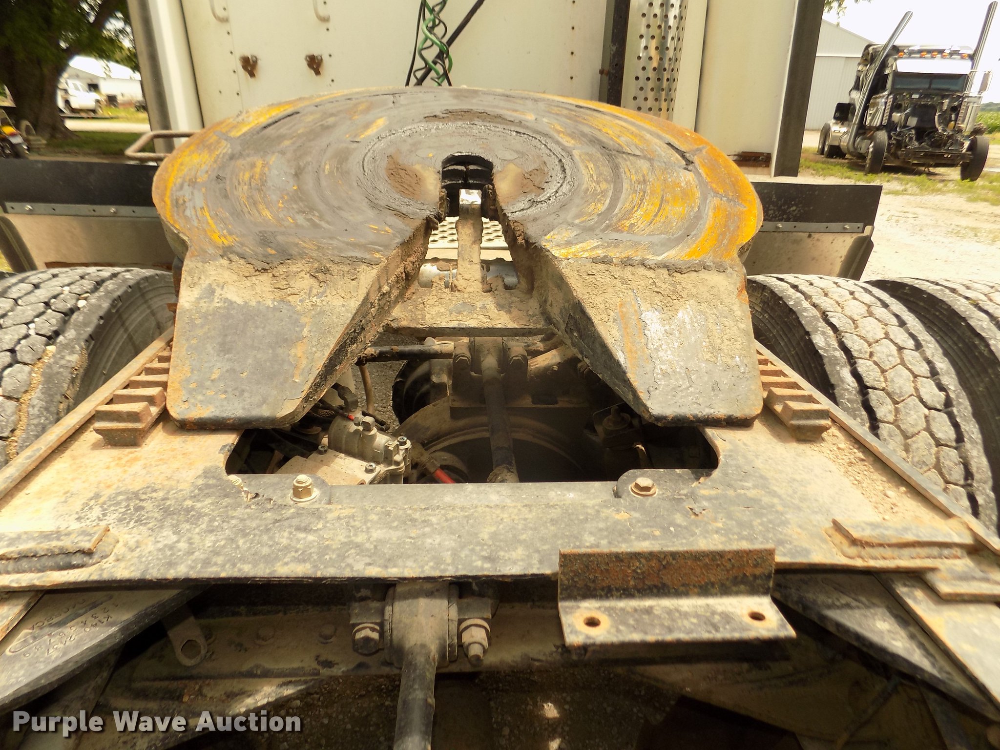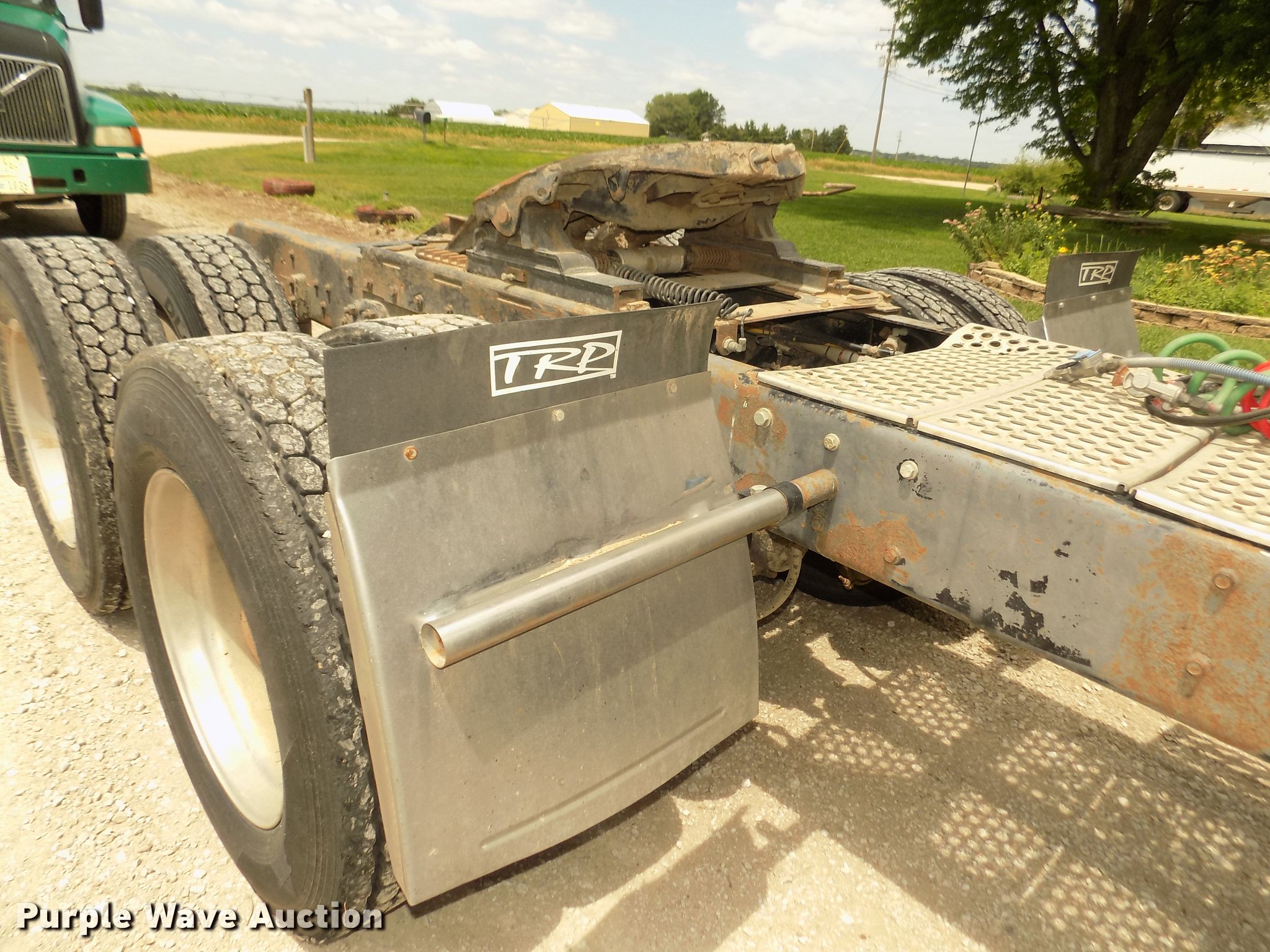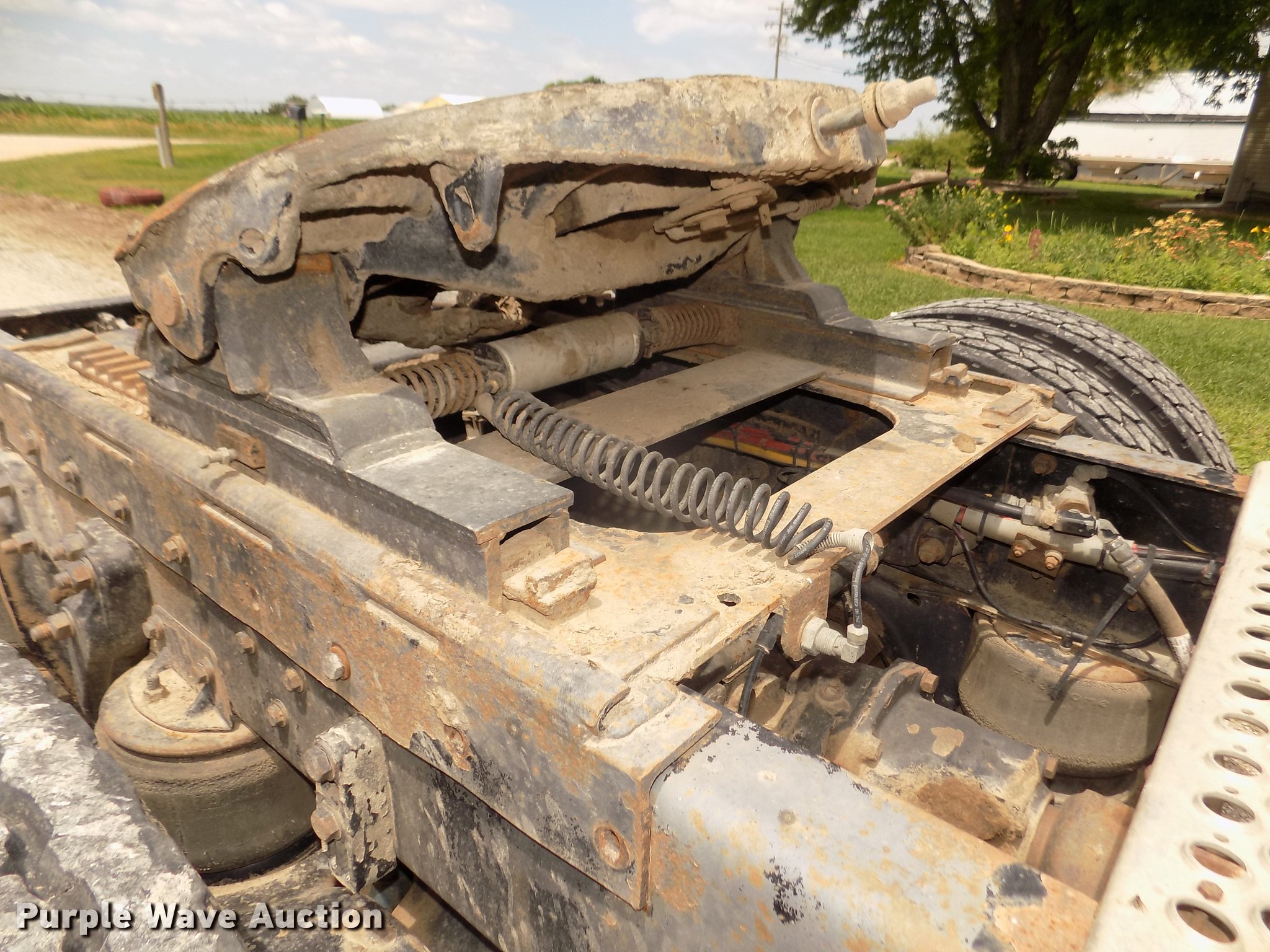 Purple Wave is selling a used Truck Tractor in Nebraska. This item is a 1996 Kenworth T800B semi truck with the following: 889,366 miles on odometer, Detroit Diesel Series 60 12.7L L6 turbo diesel engine, Manual transmission, Tandem axle, Inter-axle differential lock, AC and heat, Cruise, AM/FM/CD, Power and heated mirrors, Air suspension seat, Motorola CM200 radios, Block heater, Cab extenders, AeroCab sleeper, 60", Single bed, Rear climate control, Dump valves, Chrome bumper, Single rear exhaust stack, Aluminum deck plate, Sliding fifth wheel plate, Dual fuel tanks, Quarter fenders, Mud flaps, Air suspension, Air brakes, Engine brake, 240" wheelbase, Steel front wheels, Aluminum rear wheels, 11R22.5 front tires, 285/75R24.5 rear tires, Windshield missing, Steering wheel bent