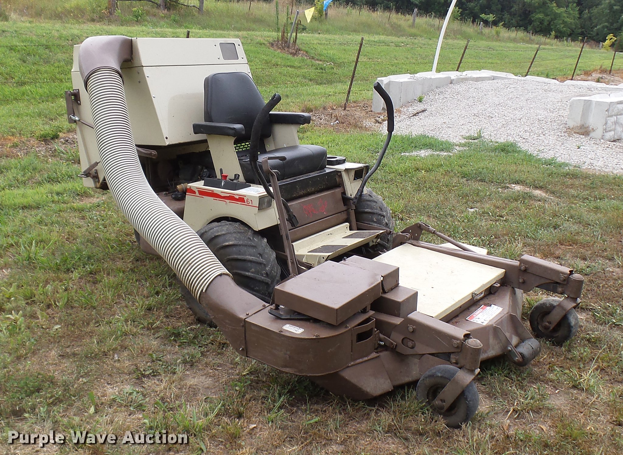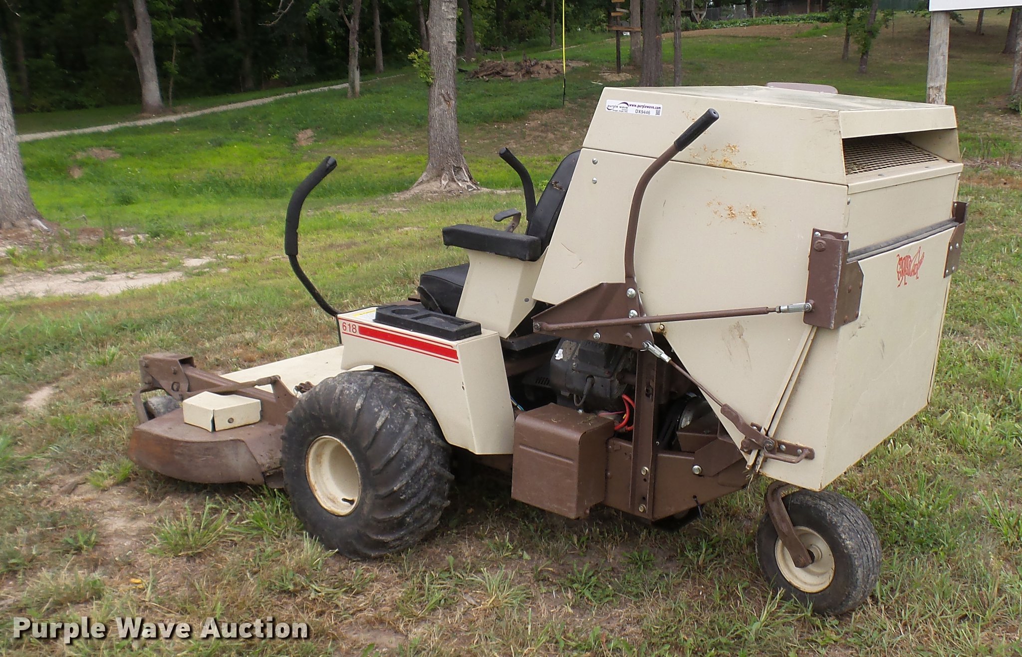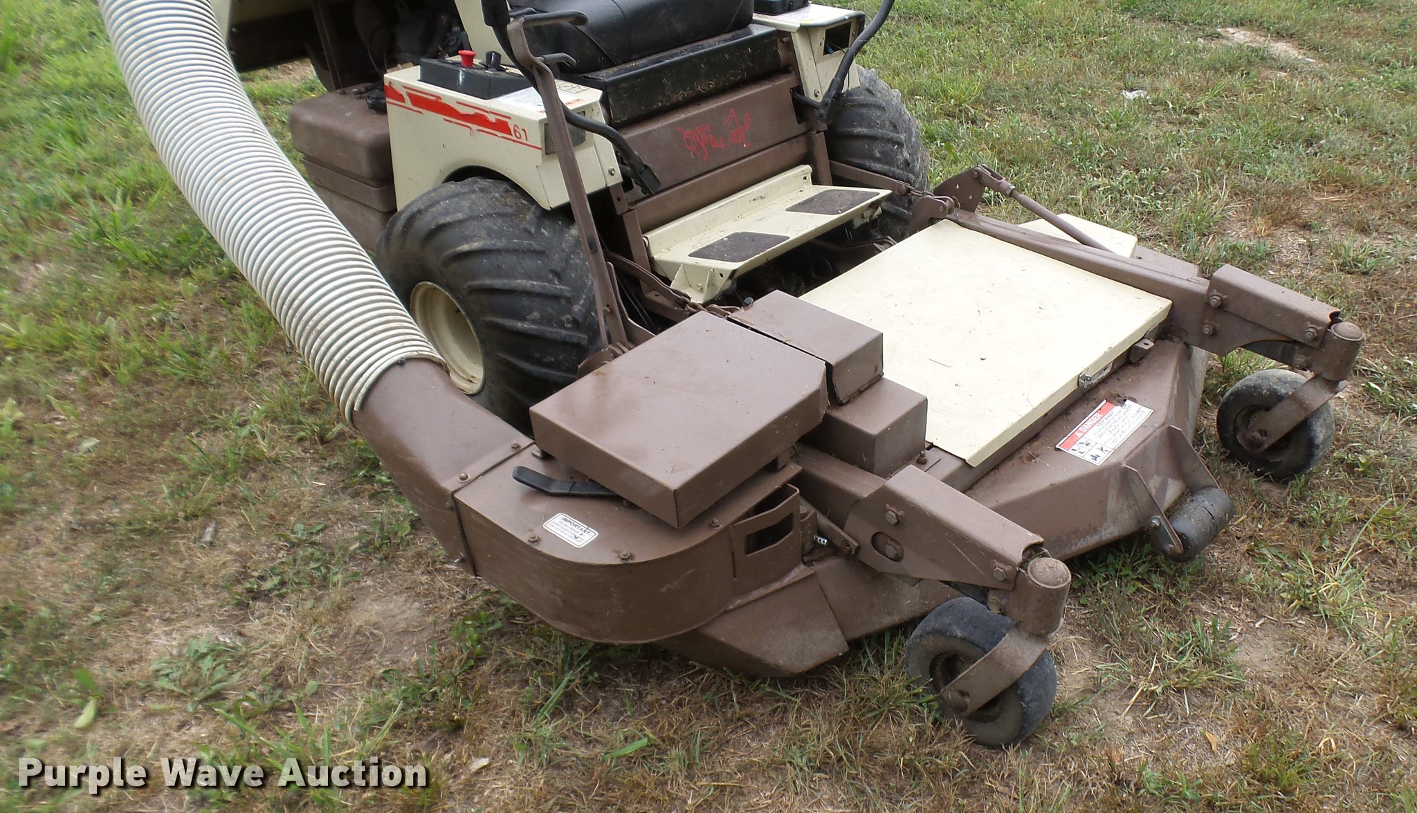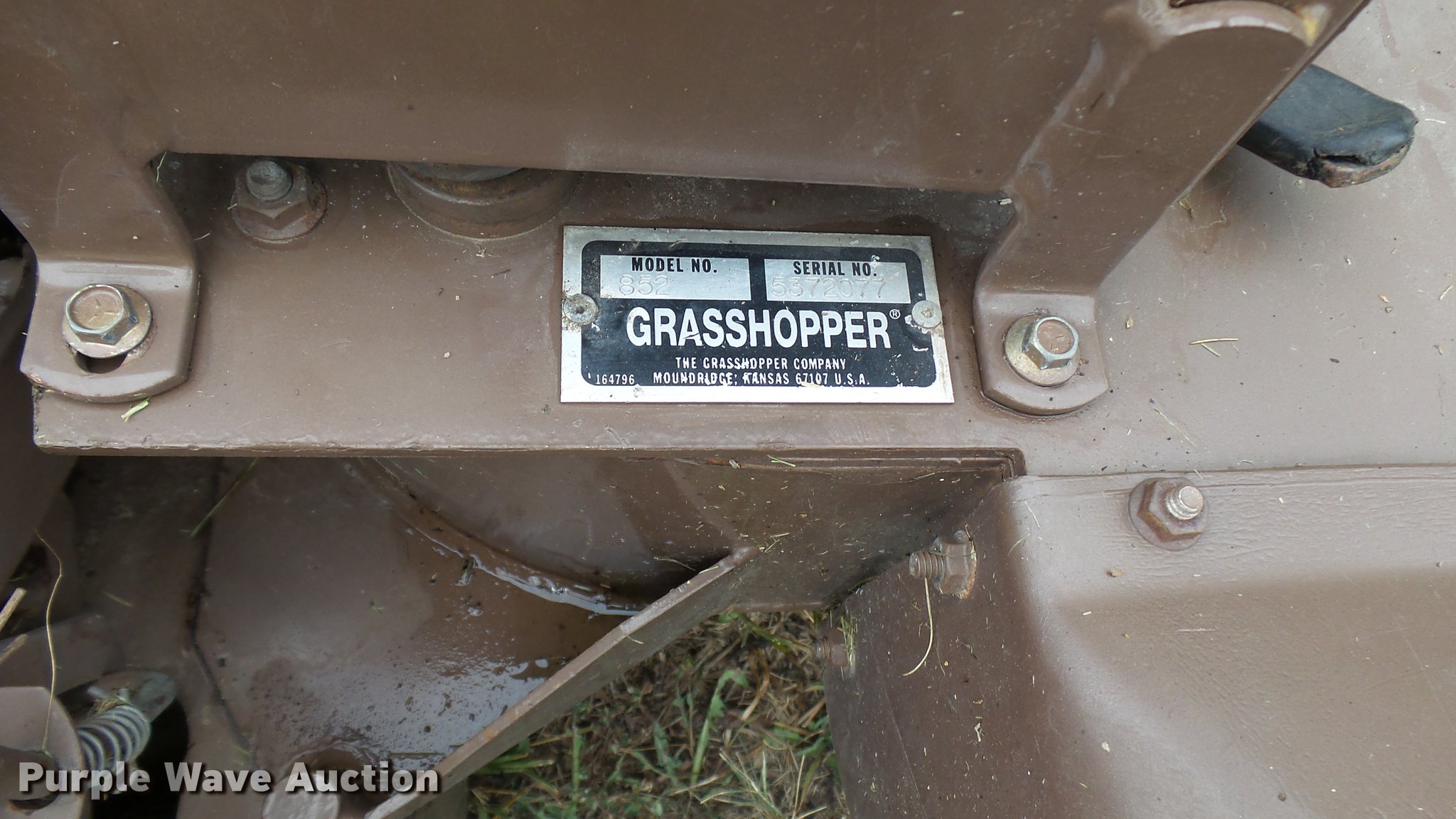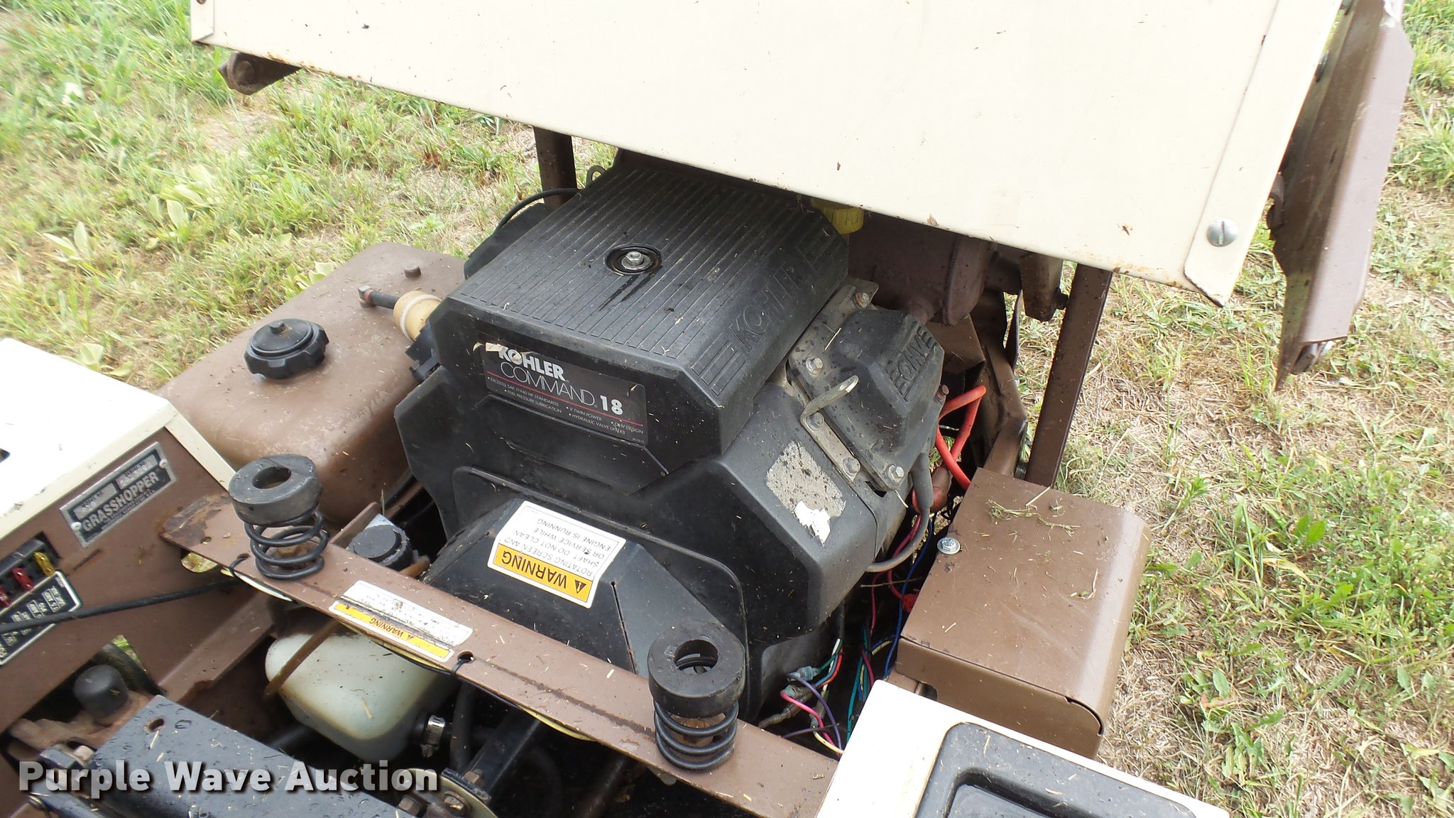 Purple Wave is selling a used Lawn Mower in Missouri. This item is a Grasshopper 618 ZTR lawn mower with the following: 417 hours on meter, 52" cut, Kohler 18 HP gas engine, Manual deck lift, Six position deck height, EZ-dump bagging system, Belt driven collection bagging system, 21-11-8 front tires, 13-6.5-6 rear tires, Serial 5413282