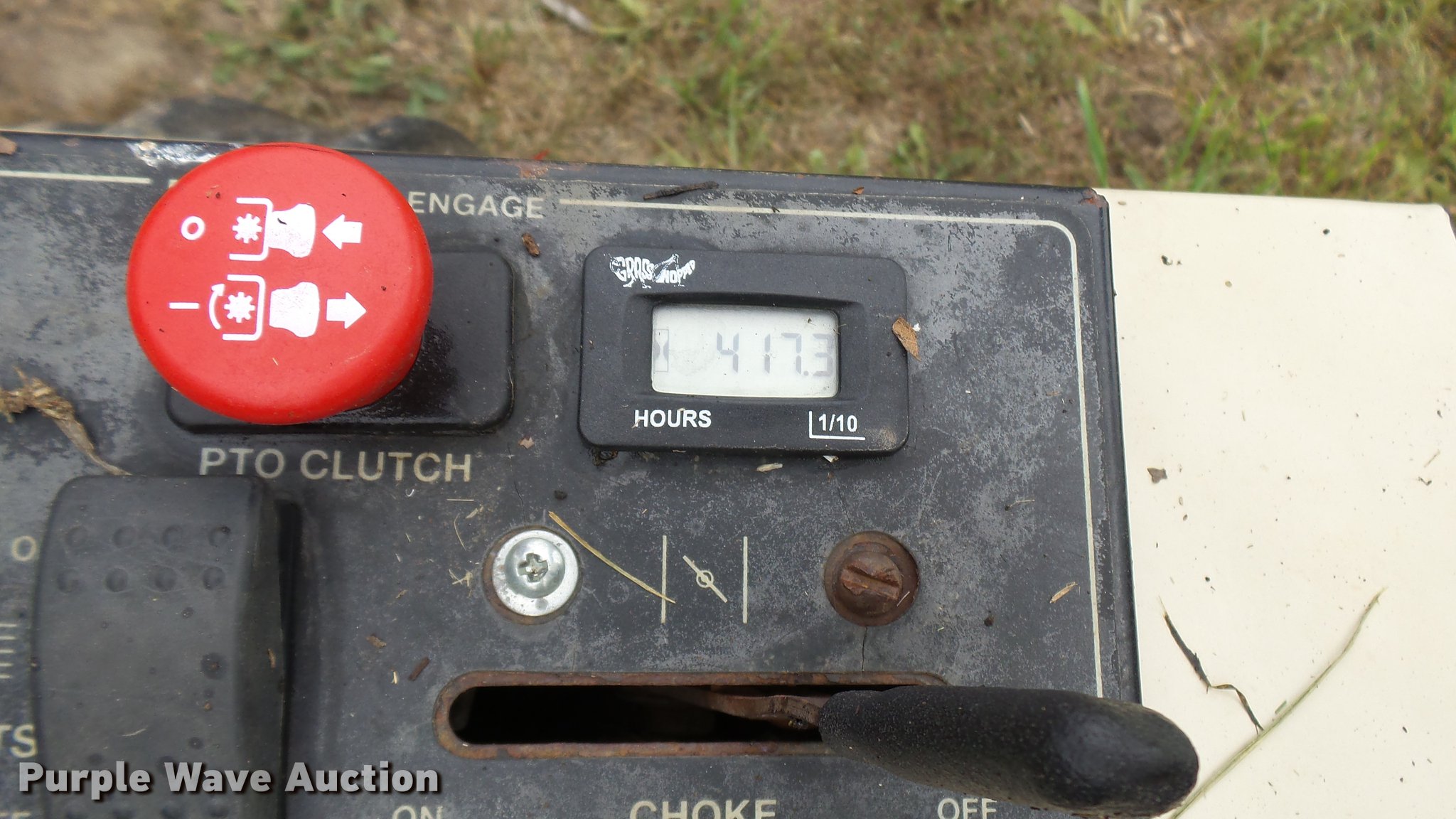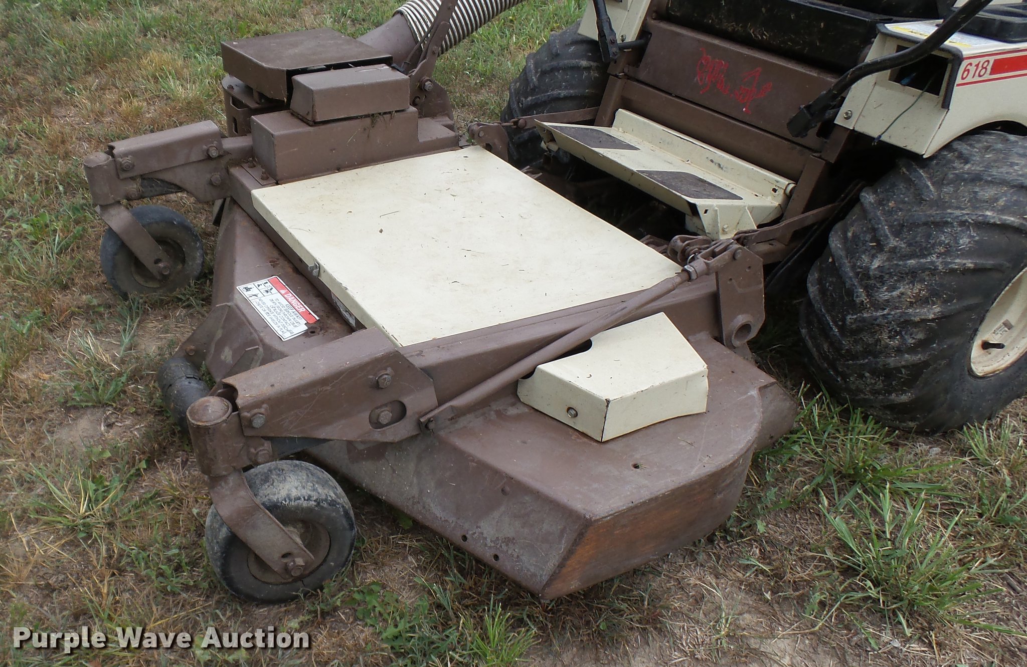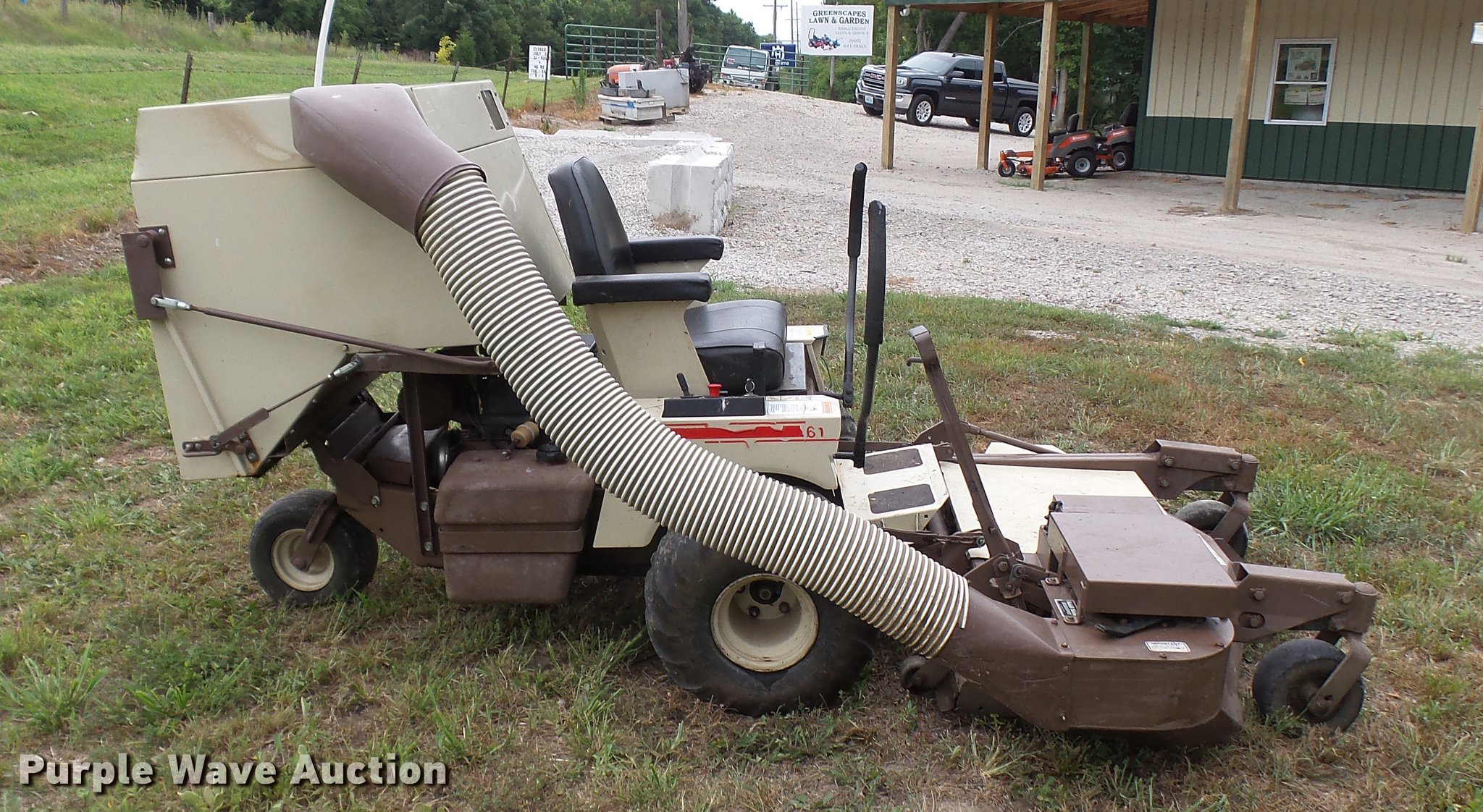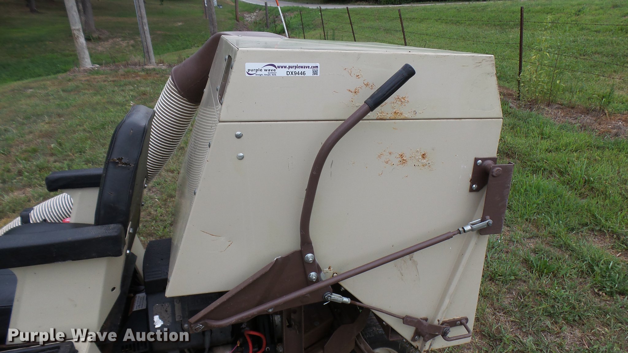 Purple Wave is selling a used Lawn Mower in Missouri. This item is a Grasshopper 618 ZTR lawn mower with the following: 417 hours on meter, 52" cut, Kohler 18 HP gas engine, Manual deck lift, Six position deck height, EZ-dump bagging system, Belt driven collection bagging system, 21-11-8 front tires, 13-6.5-6 rear tires, Serial 5413282