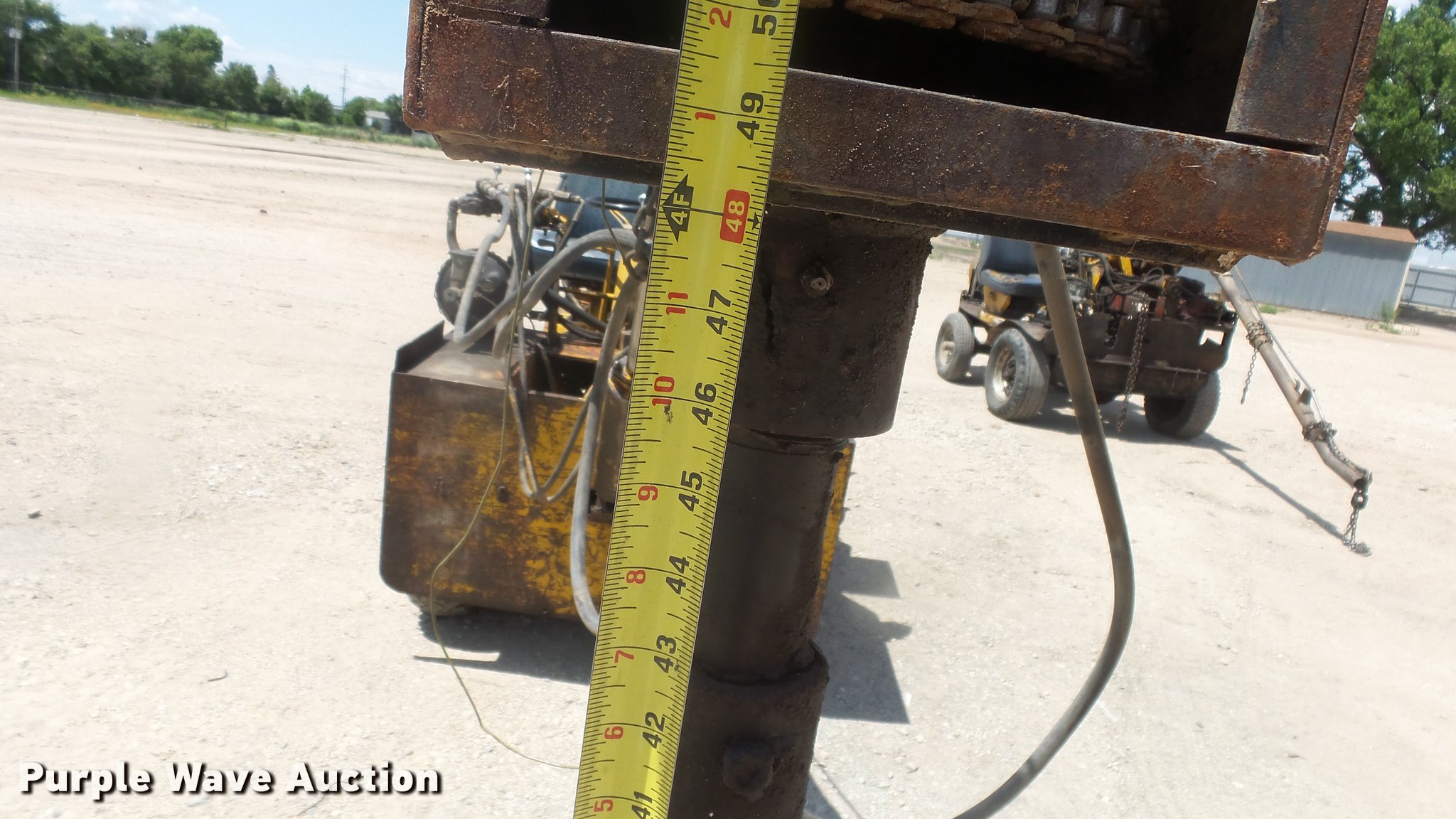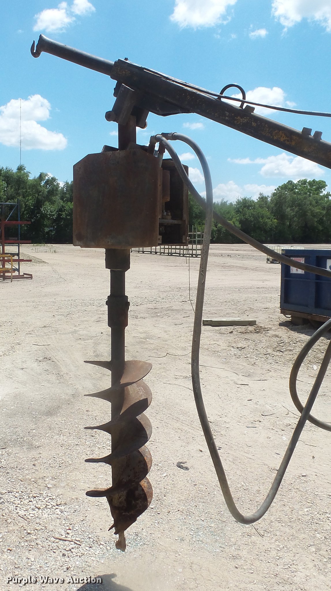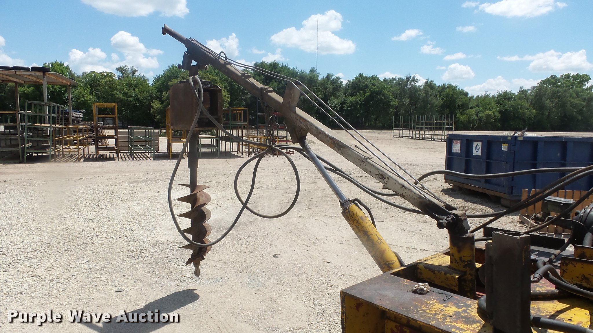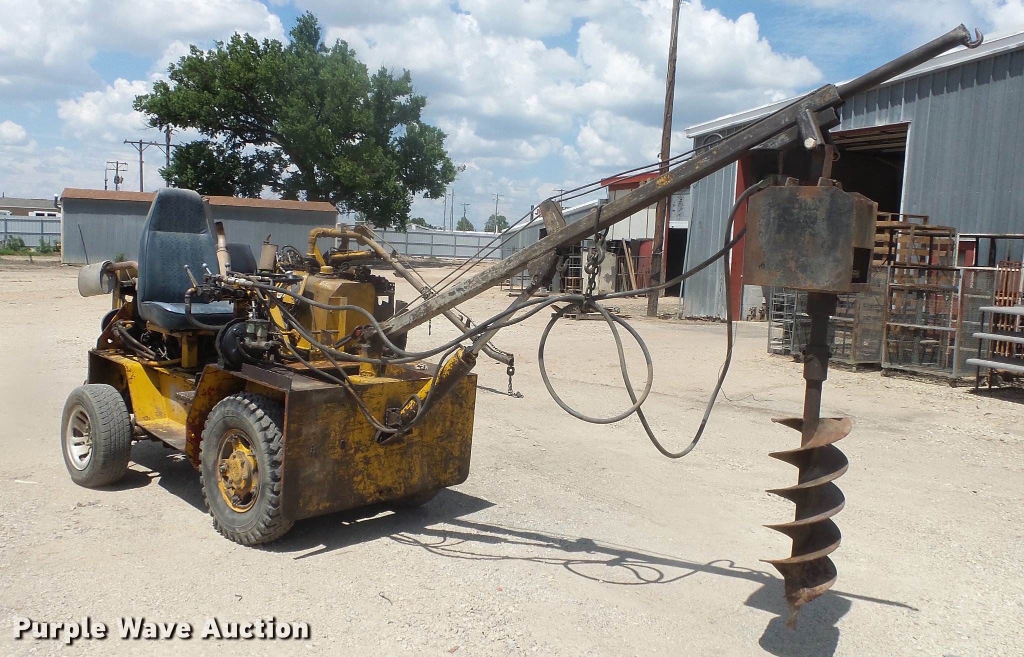 Purple Wave is selling a used Other Industrial or Business in Kansas. This item is a Shop built material handler with the following: Chevrolet eight cylinder gas engine, Automatic transmission, 10' lift bar, Post hole auger, 4'L x 12" diameter auger, Rear ball hitch, Rear suitcase weights, 7.50-16 front tires, 205/70R15 rear tires, Rear drive shaft seal leaks