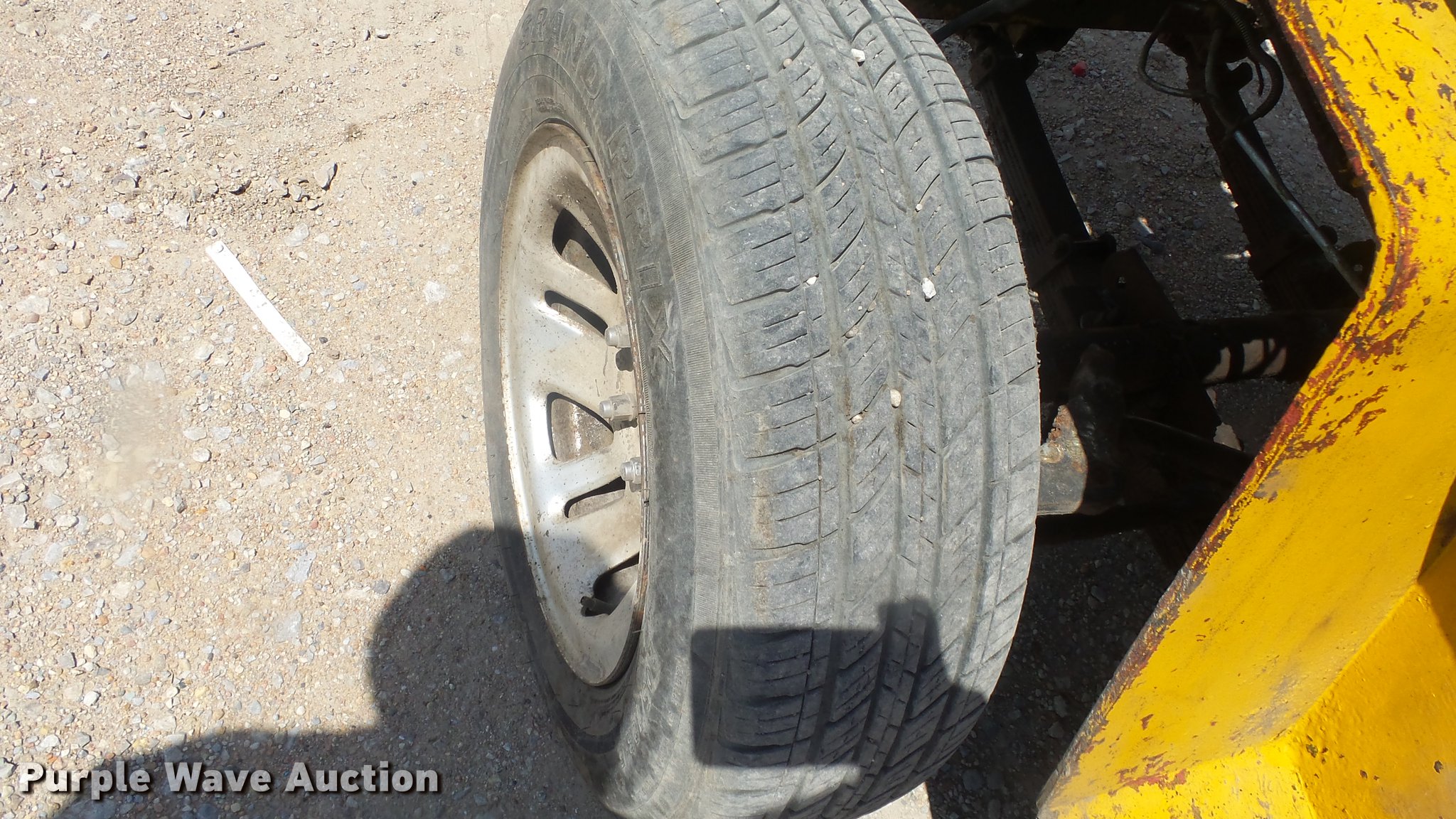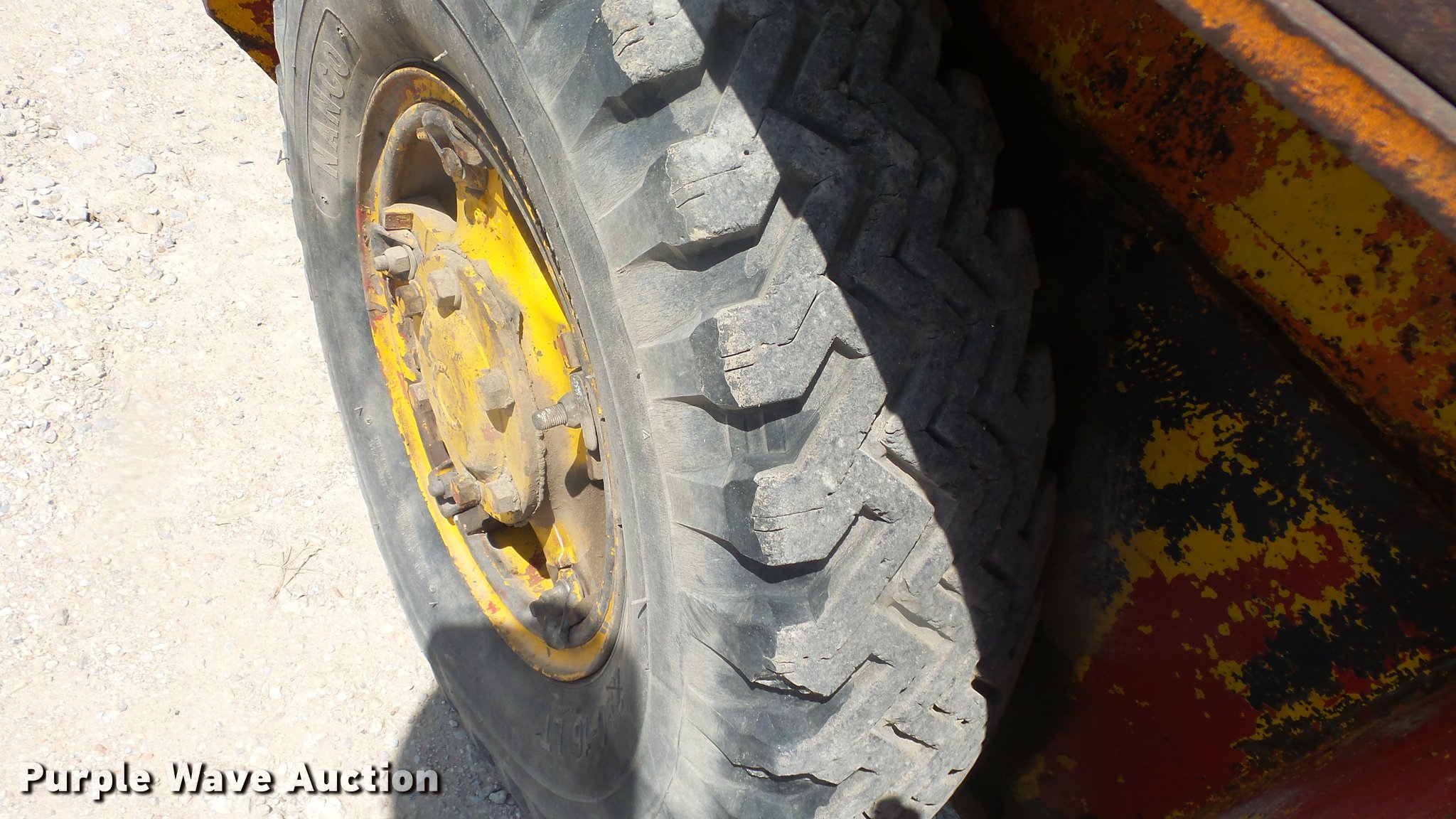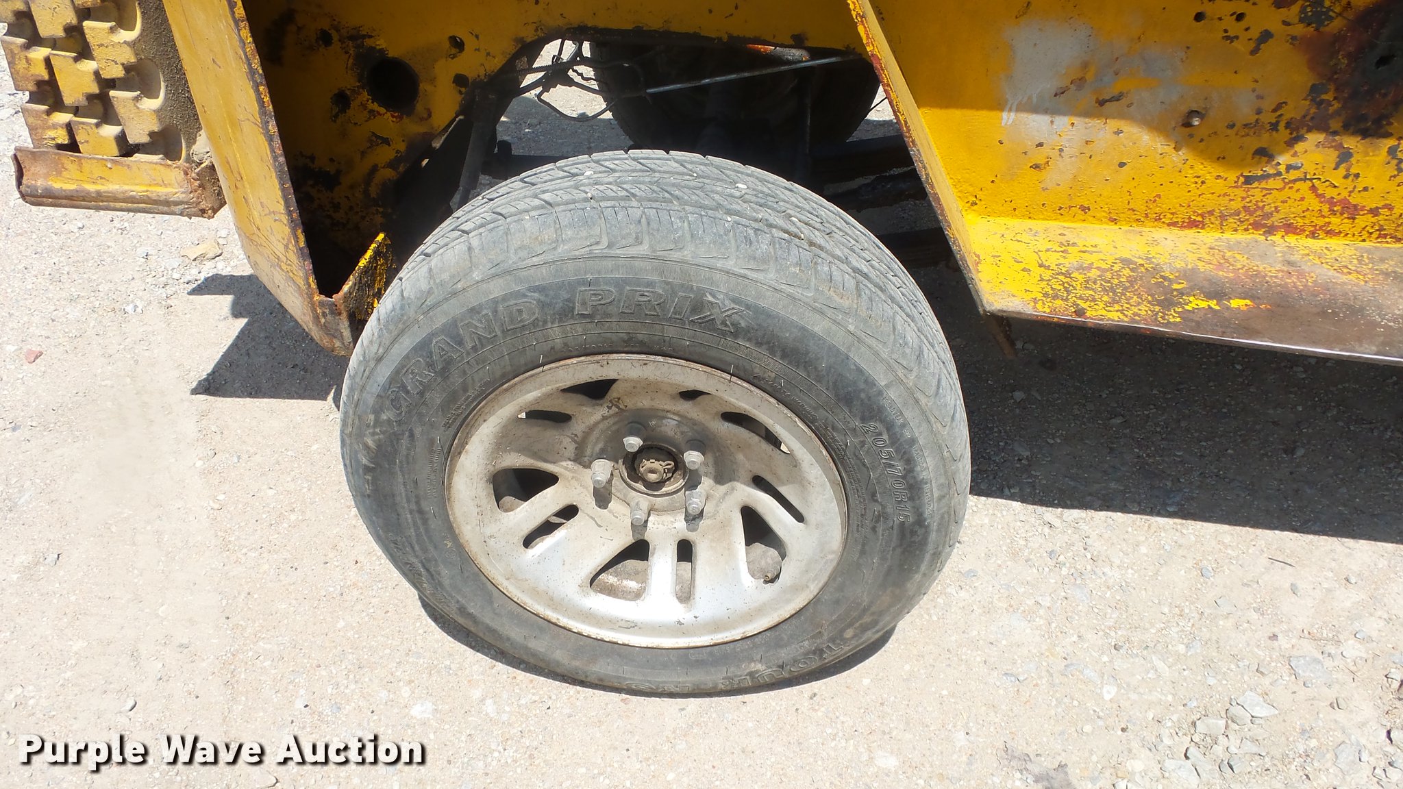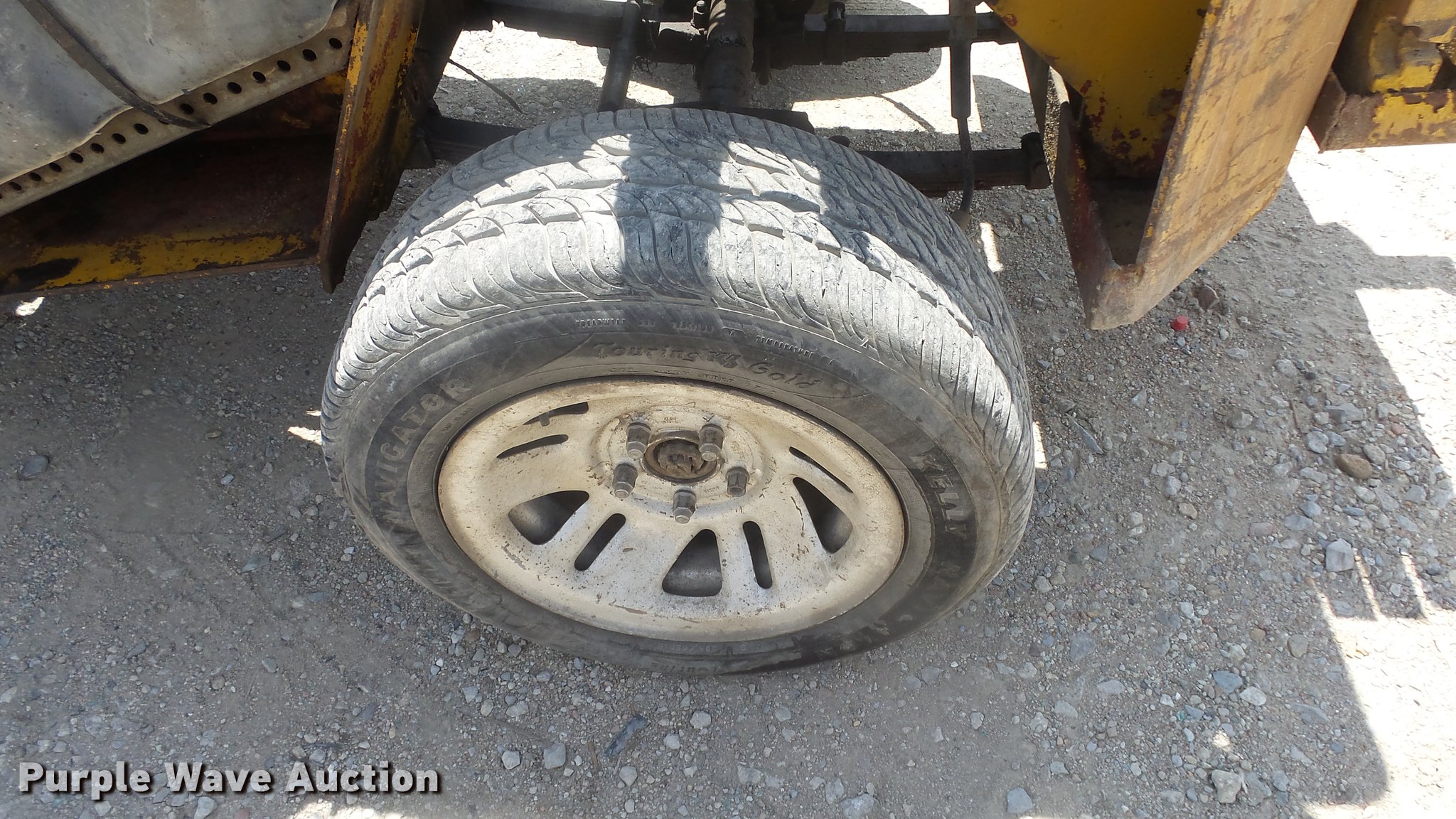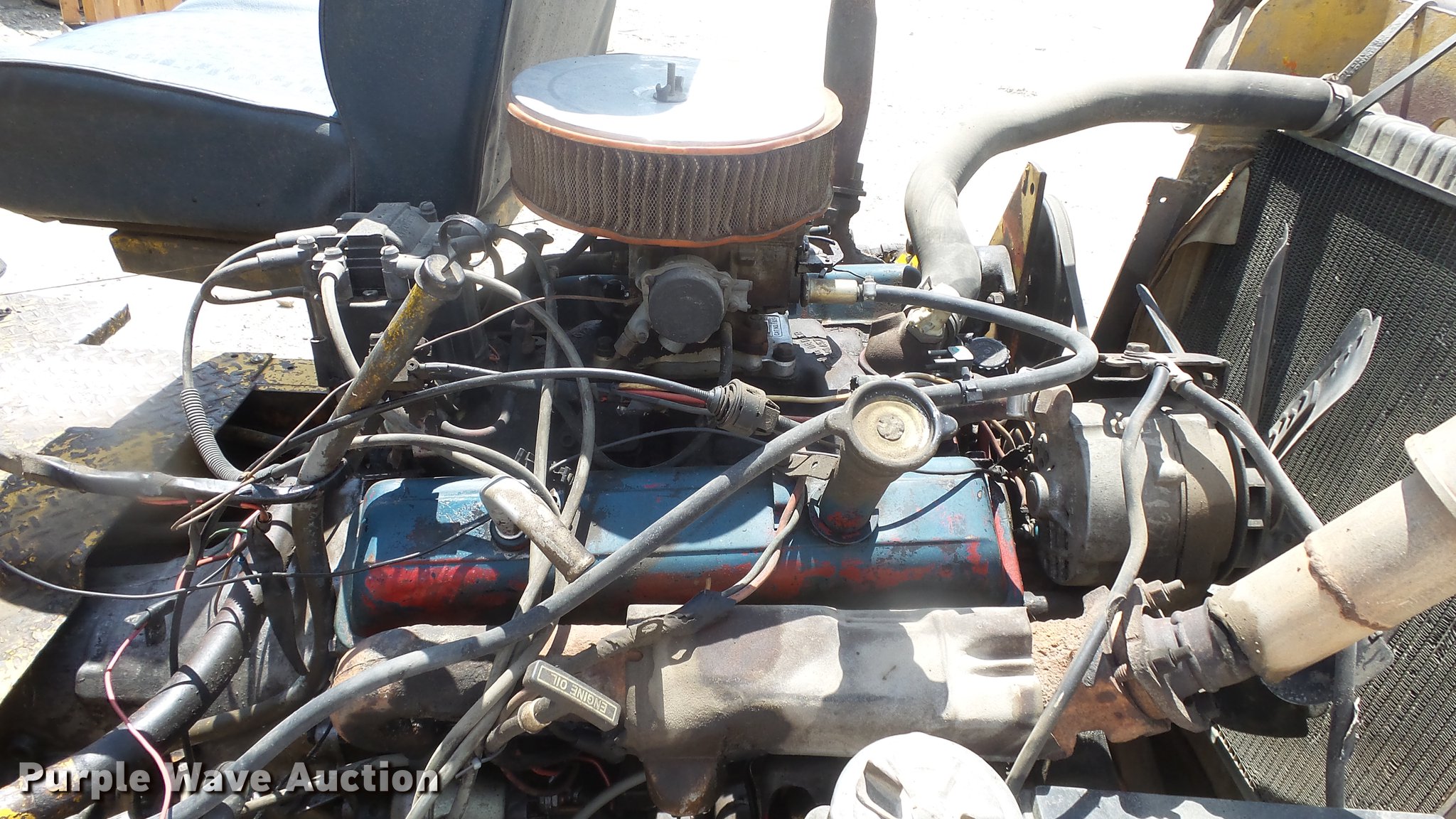 Shop built material handler. Chevrolet eight cylinder gas engine, Automatic transmission, 10' lift bar, Post hole auger 4'L x 12" diameter auger, Rear ball hitch, Rear suitcase weights, 7.50-16 front tires, 205/70R15 rear tires, Rear drive shaft seal leaks. G & R Truck Parts Retirement. 4123 S Broadway St. Wichita, KS 67216