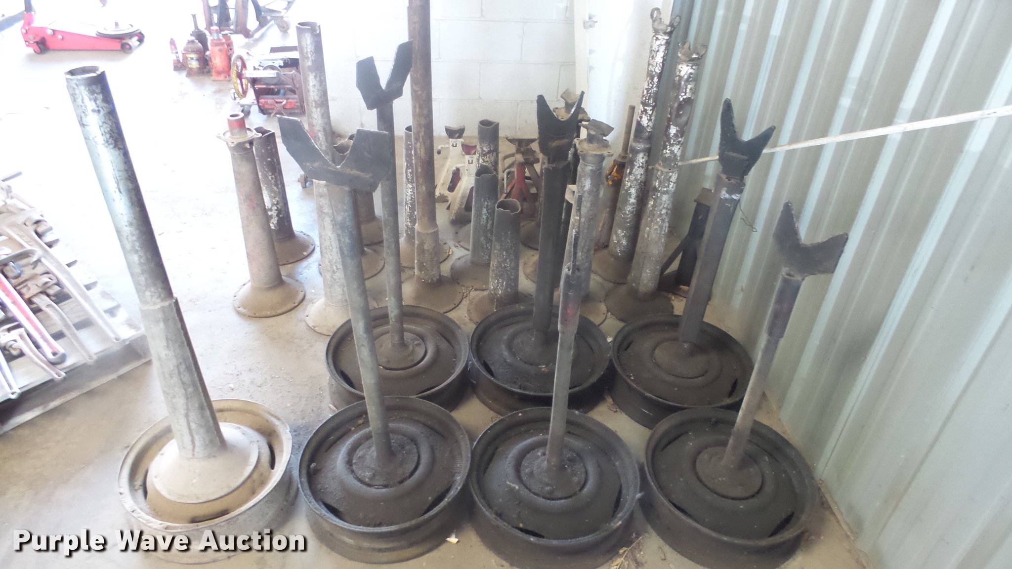 Purple Wave is selling a used Tools in Kansas. This item is a Jacks and stands with the following: Engine and transmission stands, Floor jacks, Hydraulic jacks, Assorted stands