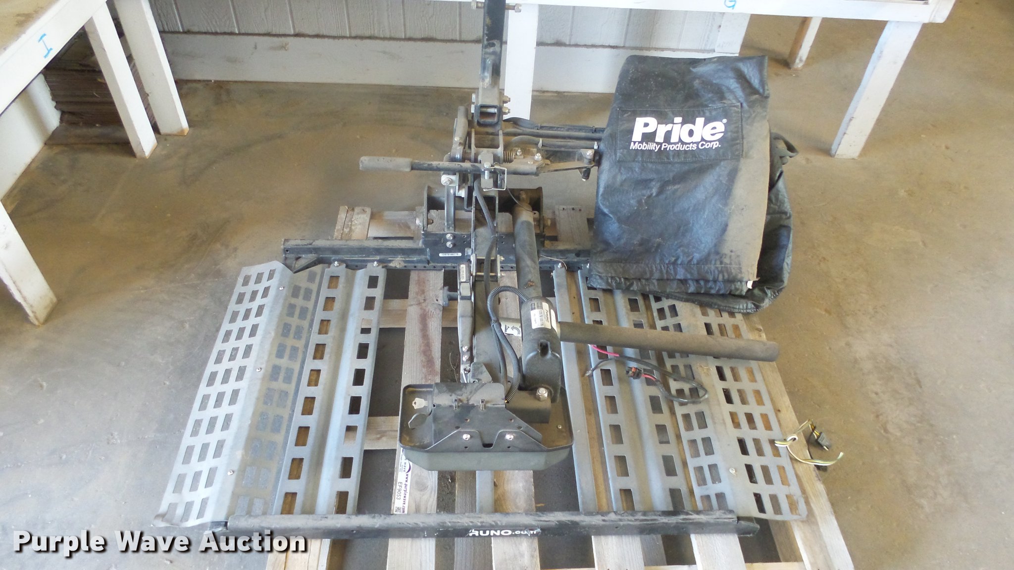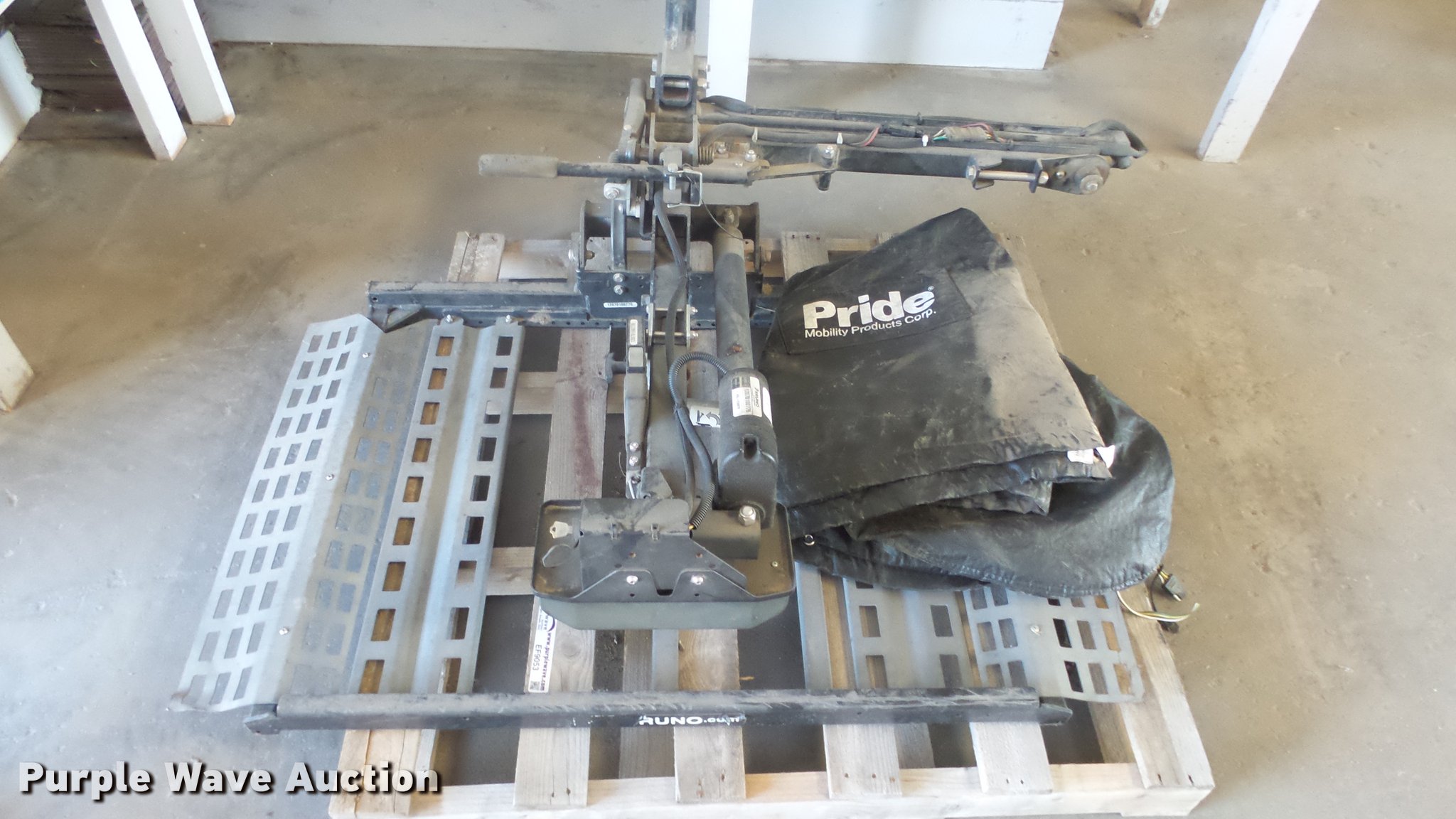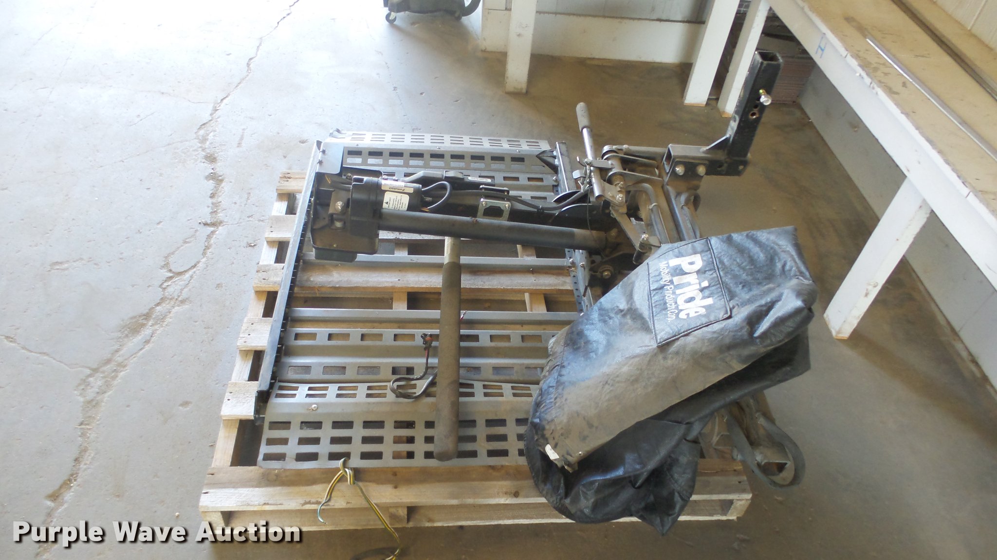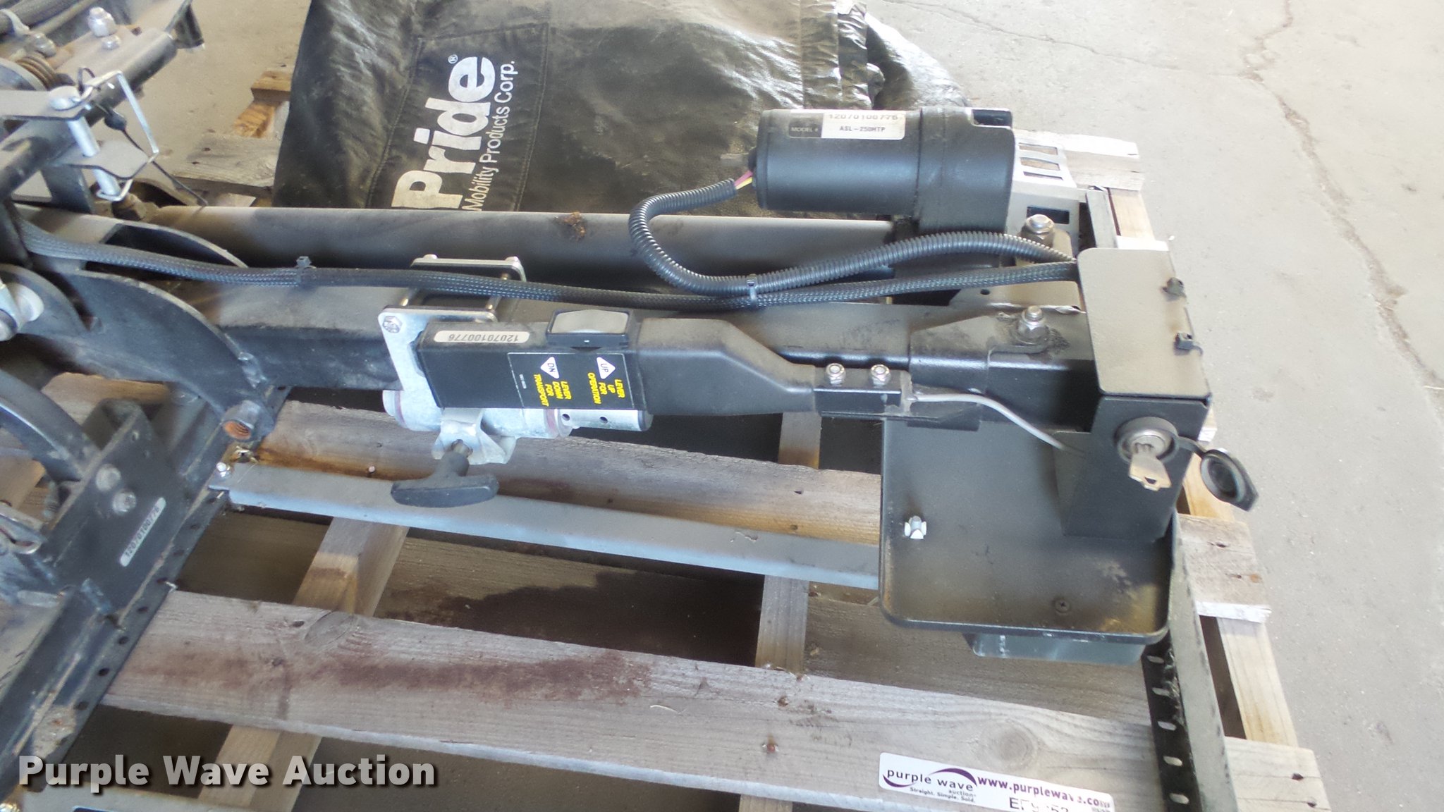 Purple Wave is selling a used Automotive Parts or Acces. in Kansas. This item is a Pride wheelchair lift with the following: Bruno ASL-250HTP electric motor, Receiver hitch mount