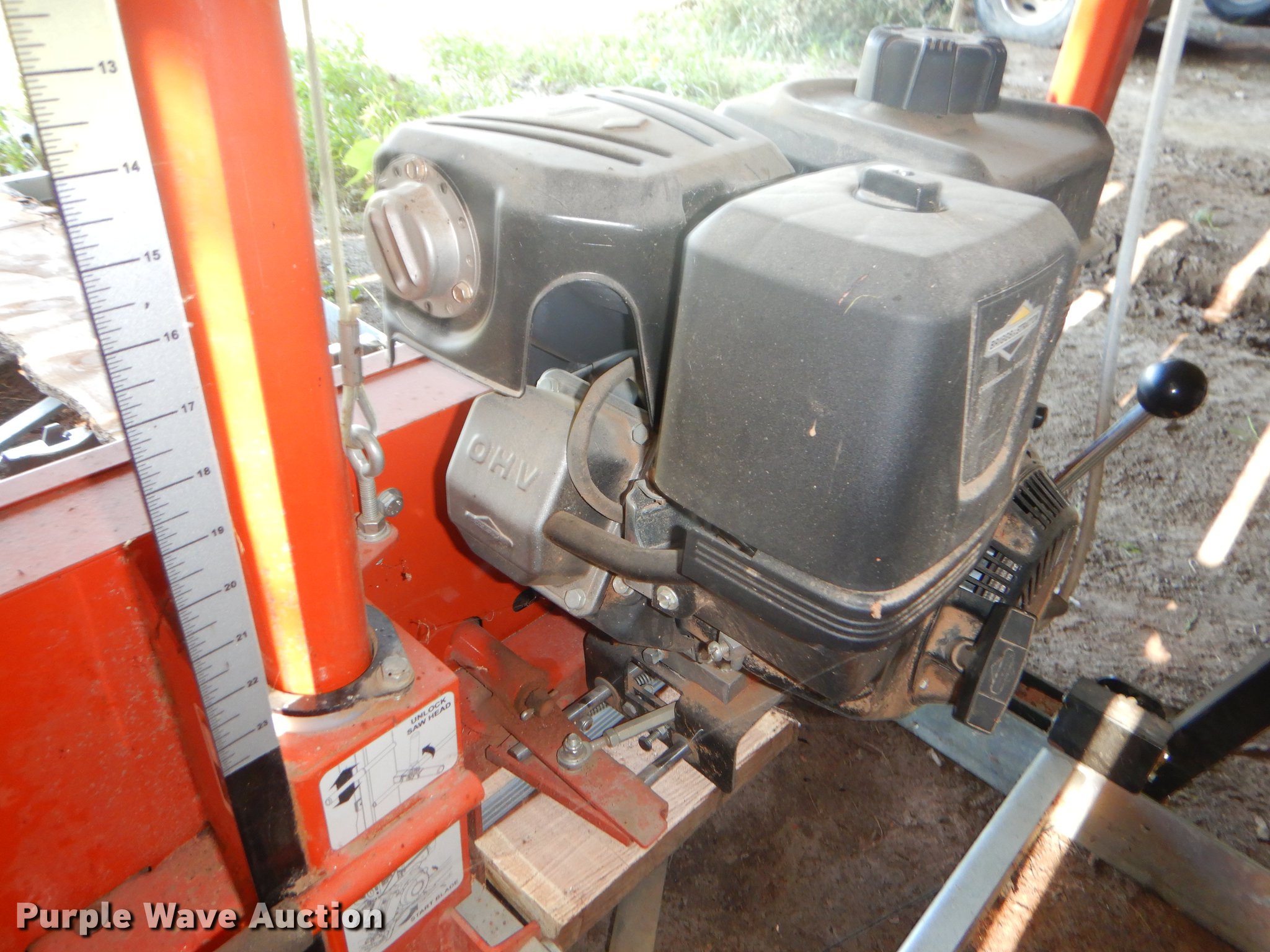 Purple Wave is selling a used Sawmill in Kansas. This item is a Woodmizer LT10 sawmill with the following: 64" x 60" x 14", Vanguard gas engine, 1" blade, Adjustable thickness, (3) additional blades, Serial 01160924