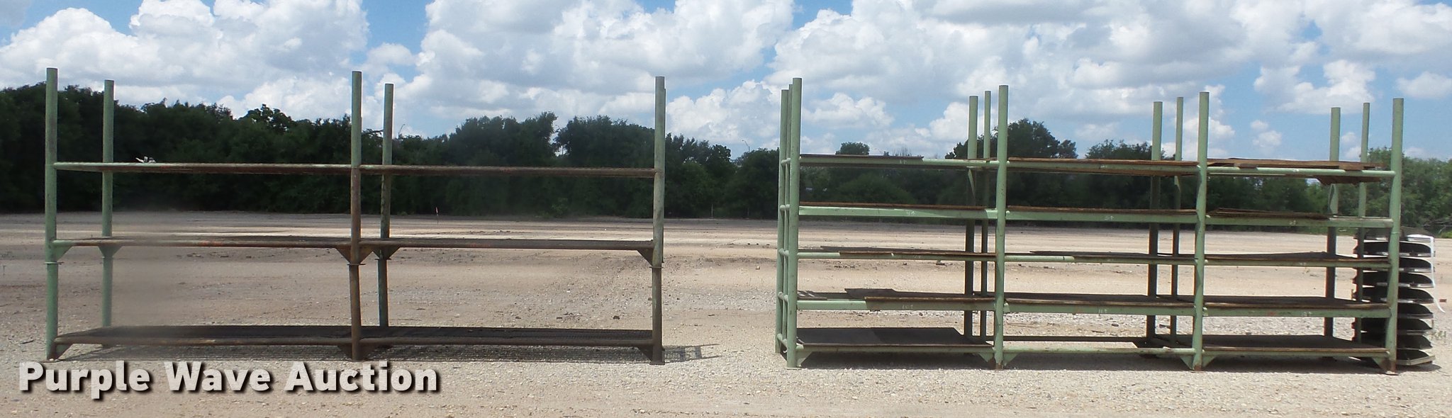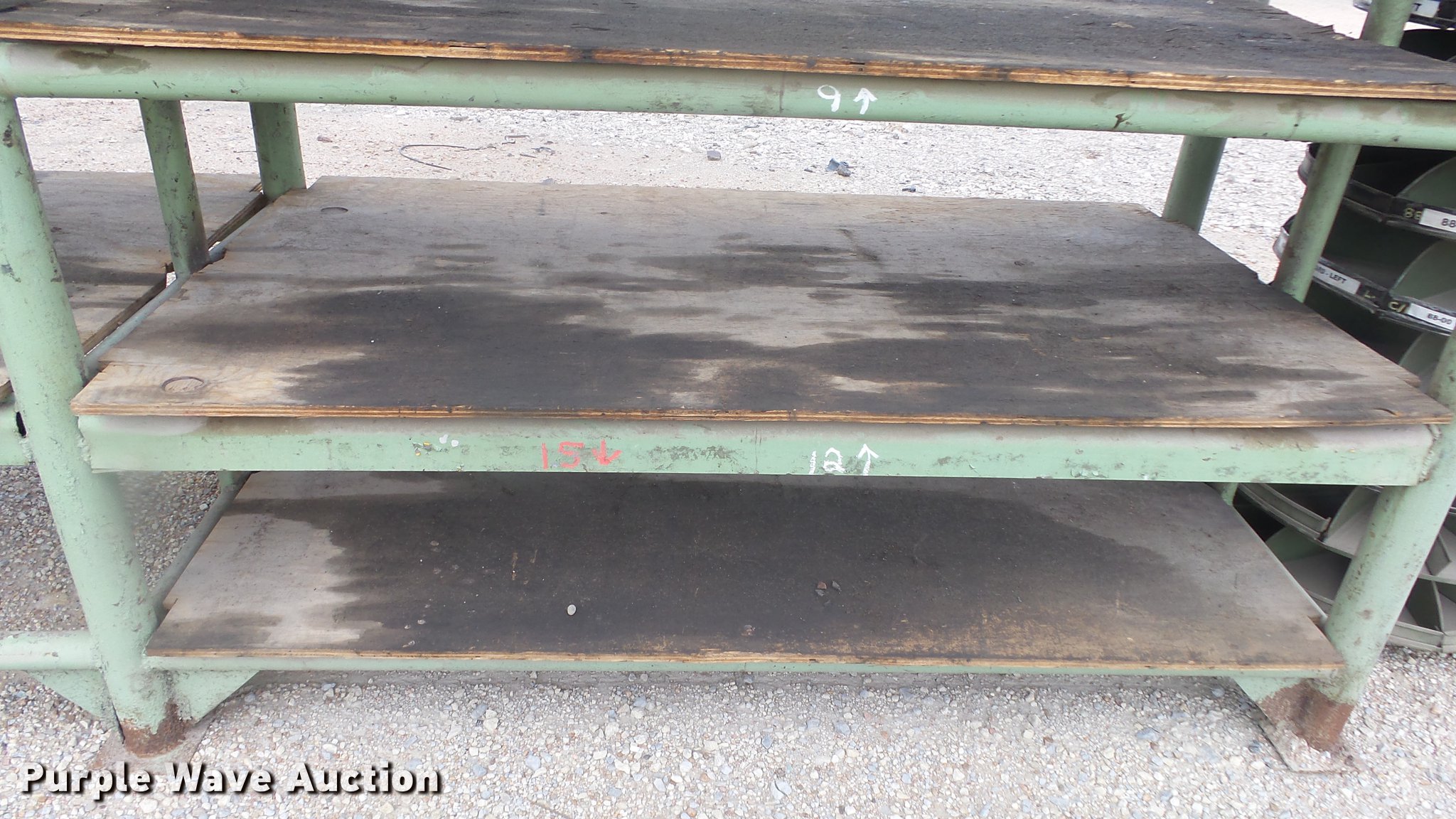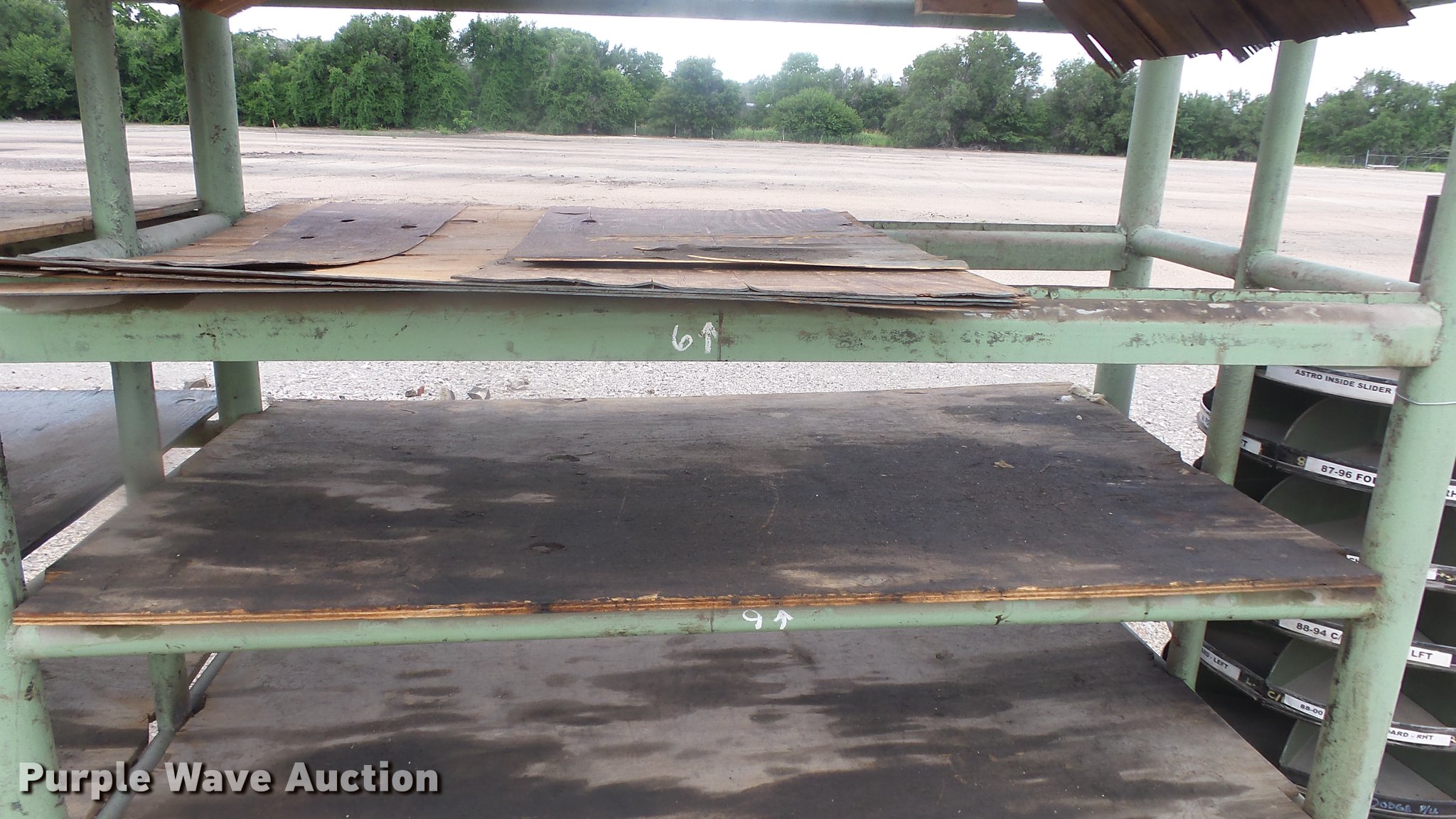 Purple Wave is selling a used Shelving and Storage in Kansas. This item is a Steel shelving with the following: 19' x 4' x 9'H, 19.5' x 40" x 9'H, Rollo bin not included