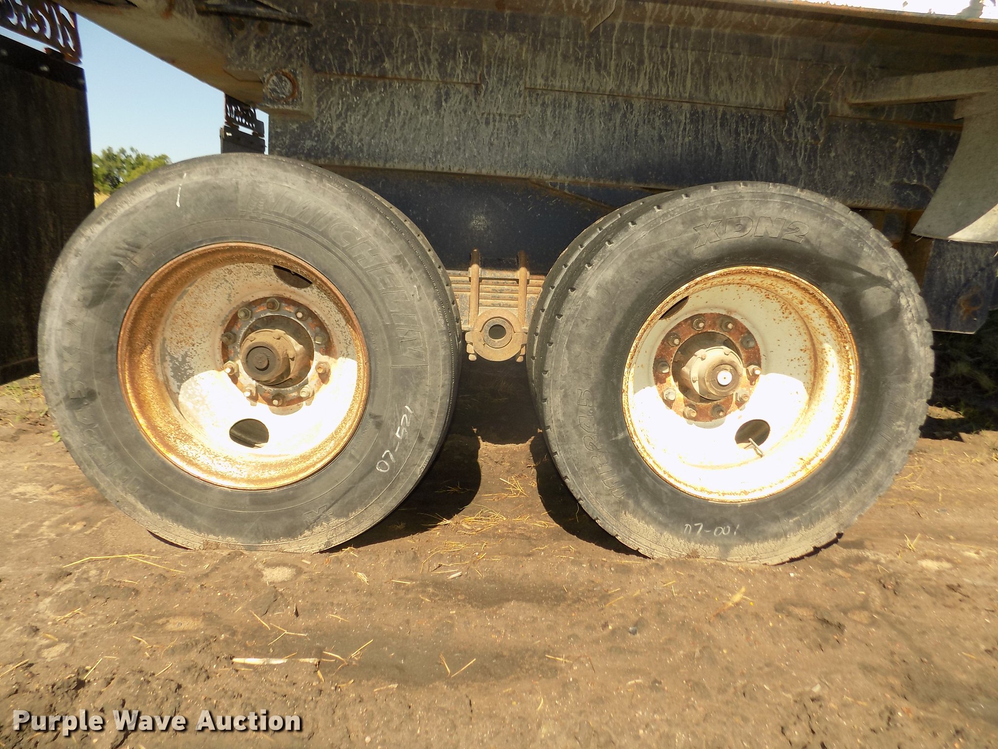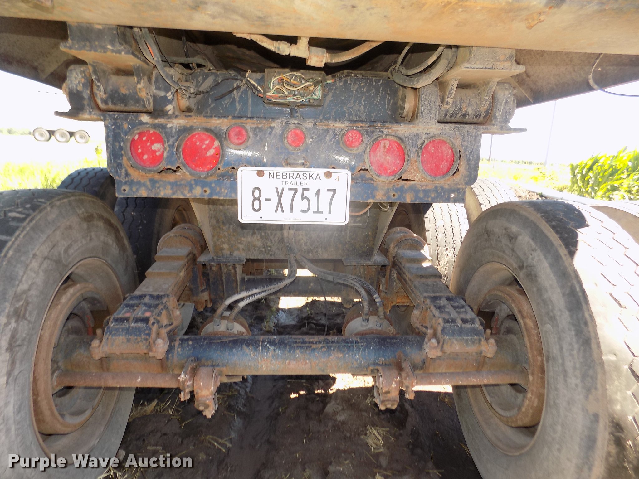 Purple Wave is selling a used End Dump Rock Trailer in Nebraska. This item is a 1999 Western STR26401 barrel bed end dump trailer with the following: 27'L x 99"W, 111" from ground to top of side, Steel construction, Single hydraulic cylinder, Fifth wheel plate, Dual leg landing gear, Spring suspension, Air brakes, Tandem axle, Steel wheels, 11R24.5 tires, GVWR 34,000 lbs, GAWR 20,000 lbs, Unit# E3