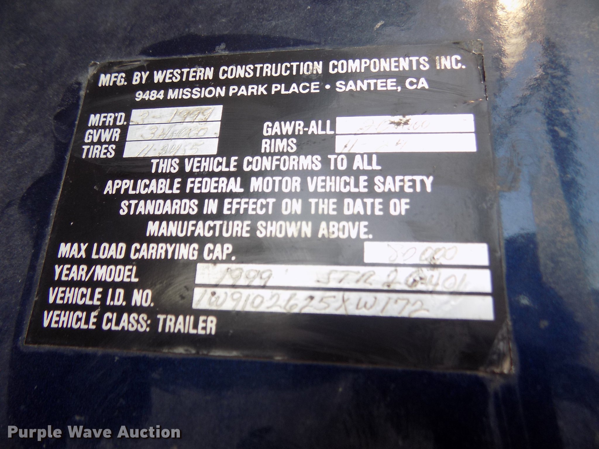 Take a look at this used 1999 Western STR26401 barrel bed end dump trailer being sold on August 2nd, 2018 in the SOLD! August 2 Construction Equipment Auction made by Western. Take a look at all of the item information below or take a look at similar auctions for Construction Trailers.