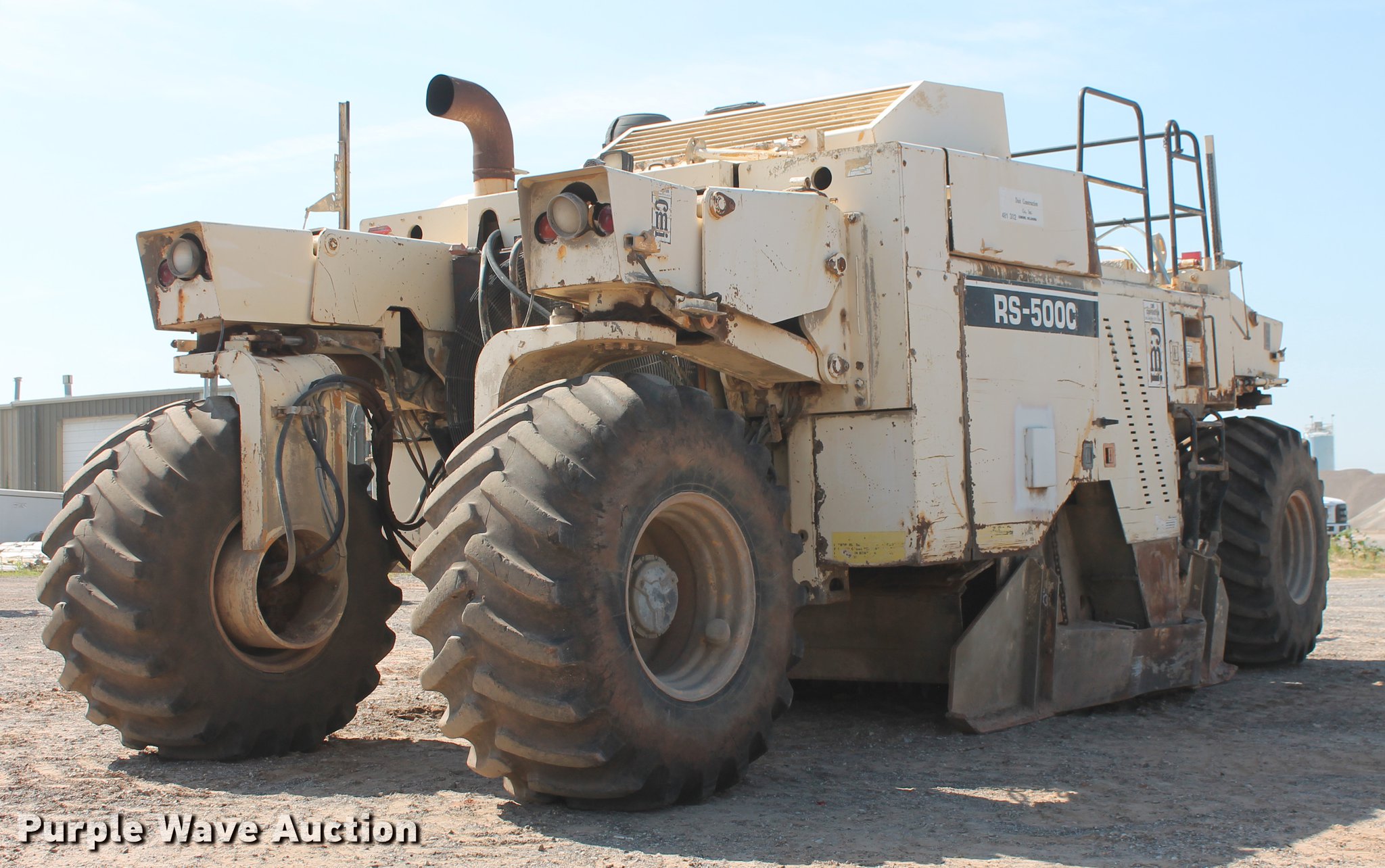 Purple Wave is selling a used Reclaimer or Stabilizer in Oklahoma. This item is a 2001 CMI RS-500C reclaimer/stabilizer with the following: 134 hours on meter, Caterpillar 3408 eight cylinder diesel engine, Two speed hydrostatic transmission, Open station, Work lights, Gorman-Rupp additive/slurry pump, 8'W cutter drum milling head, 8'L pintle hitch, 28L-26 tires, Serial 531391, Unit# 481.302