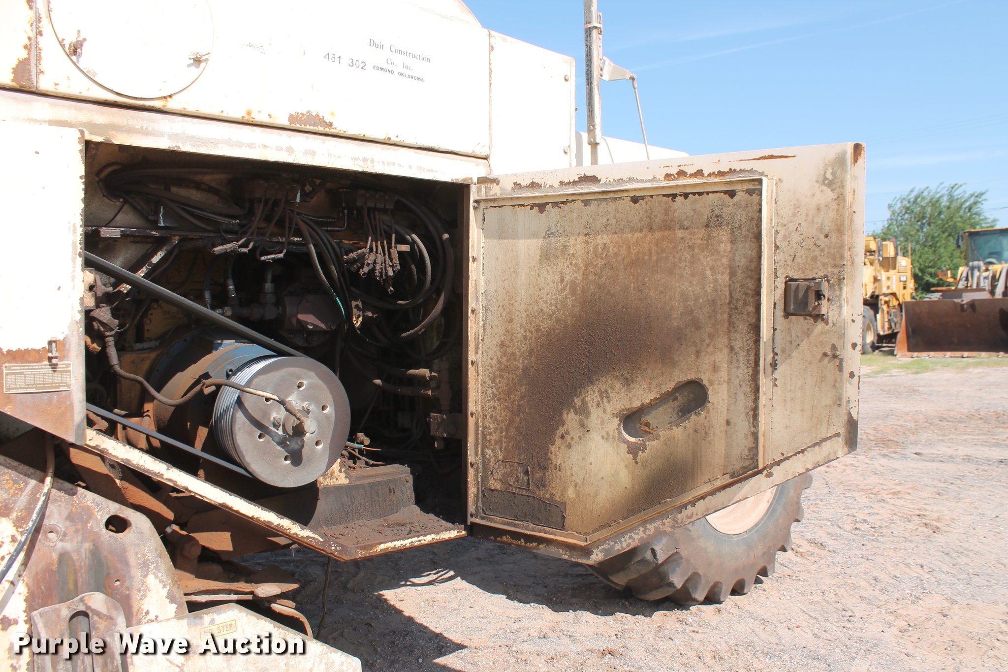 2001 CMI RS-500C reclaimer/stabilizer. 134 hours on meter, Caterpillar 3408 eight cylinder diesel engine, Two speed hydrostatic transmission, Open station, Work lights, Gorman-Rupp additive/slurry pump, 8'W cutter drum milling head, 8'L pintle hitch, 28L-26 tires, Serial 531391, Unit# 481.302. Duit Holdings Inc. - Open inspection July 31. 7183 E Waterloo Industrial Rd. Edmond, OK 73034