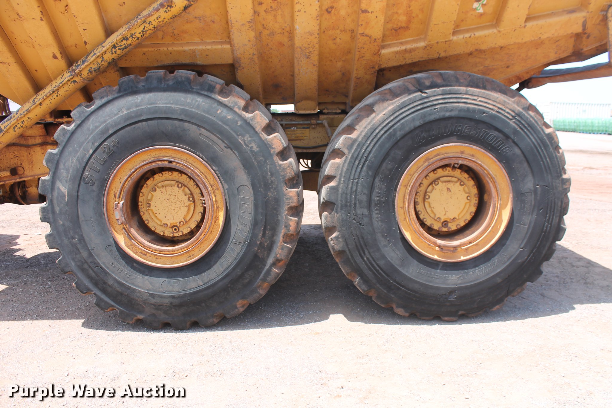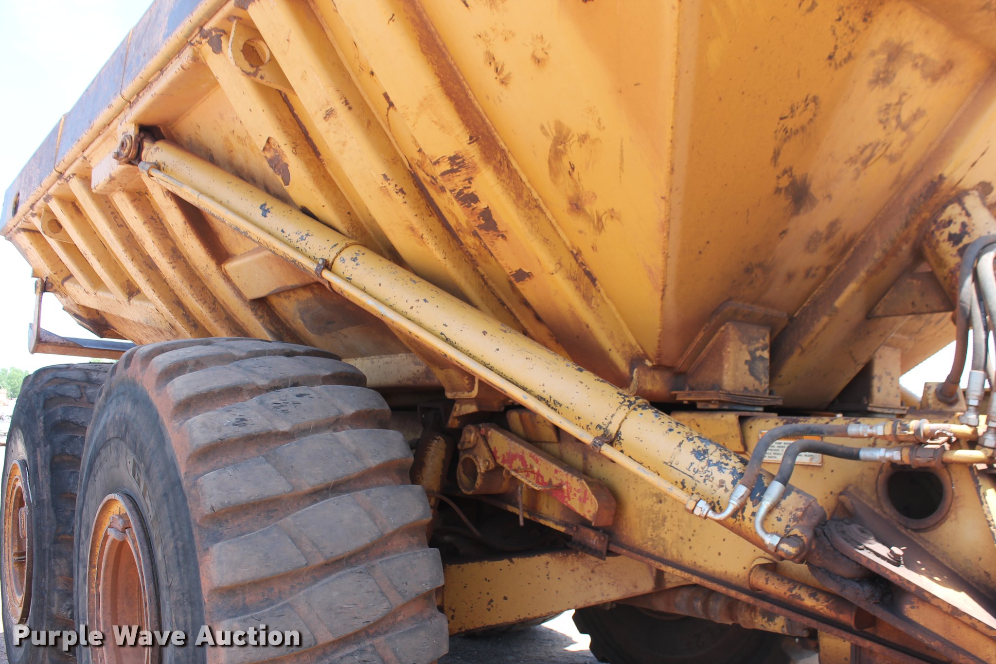 Purple Wave is selling a used Articulated Haul Truck in Oklahoma. This item is a 1993 Caterpillar D400D articulated haul truck with the following: 13,893 hours on meter, Caterpillar 3406B 14.6L six cylinder diesel engine, 385 HP, Serial 11N05452, Powershift transmission, Six wheel drive, EROPS, AC and heat, Retarder, Air suspension seat, Dump bed, Payload 80,000 lbs, Struck 22.6 cu.yd., Heap 30.7 cu.yd., 29.5R25 tires, Serial 8TF00673, Unit# 731.242
