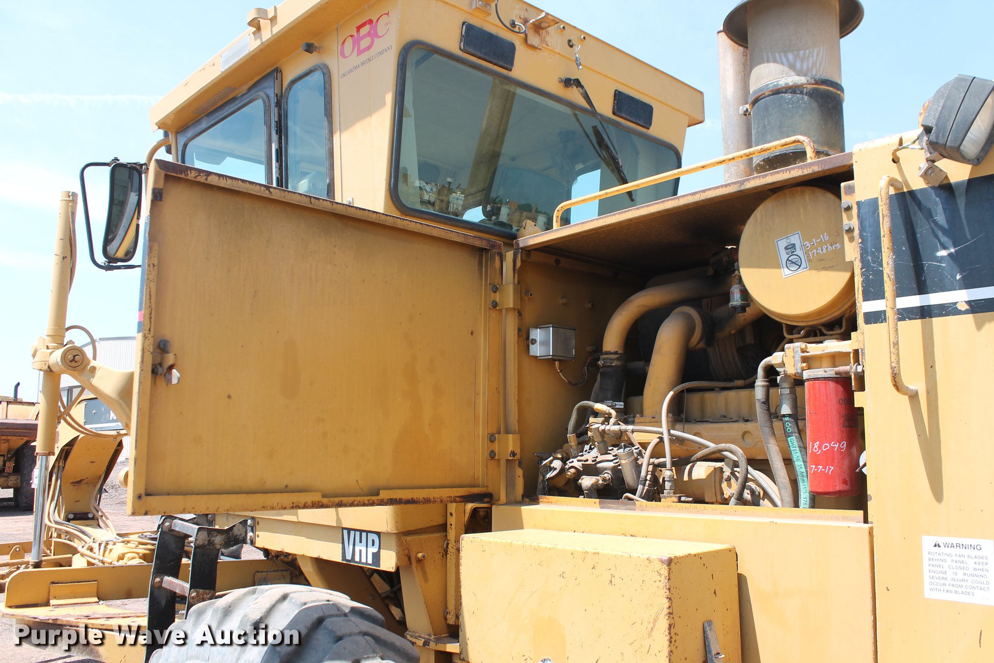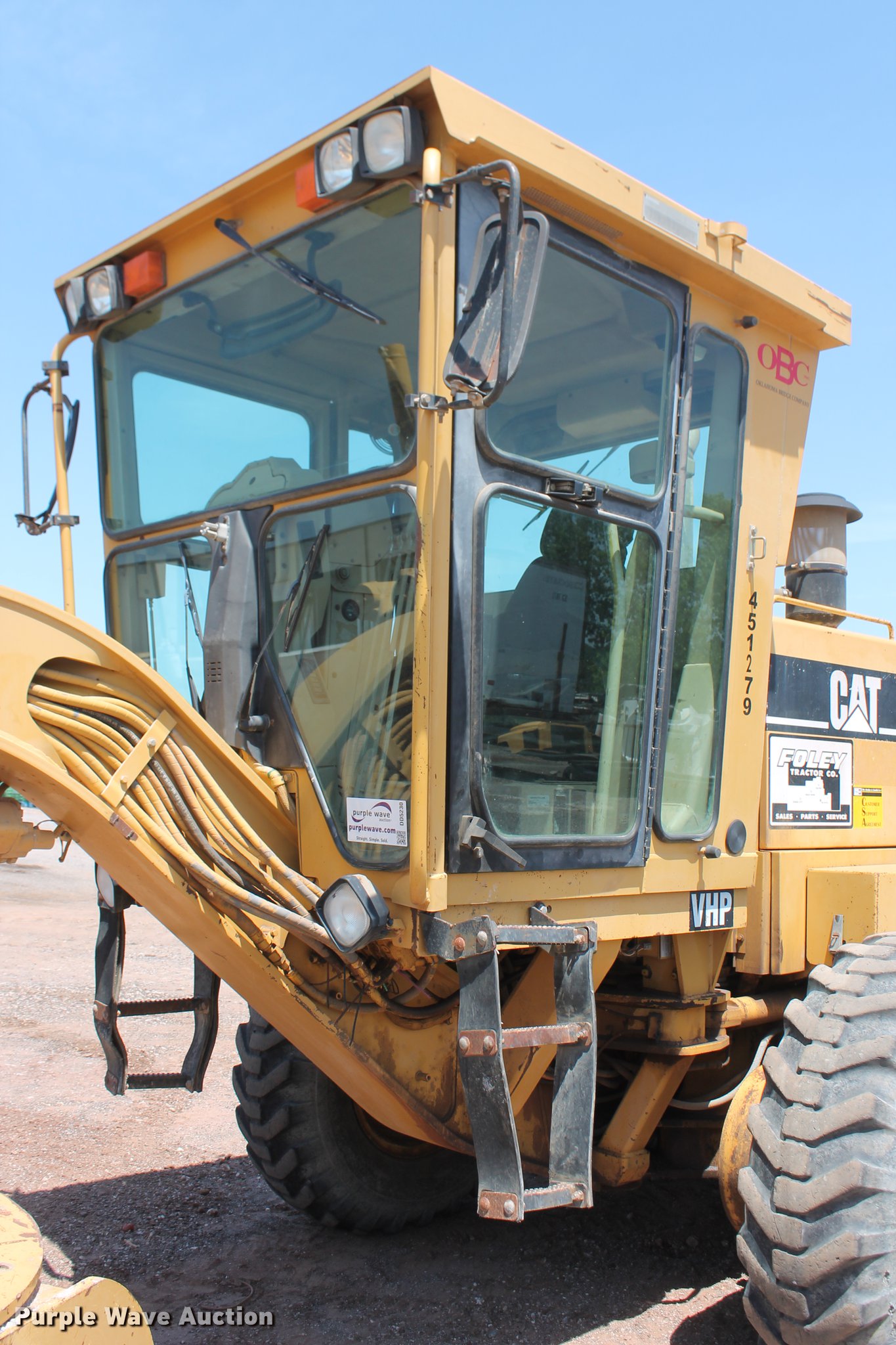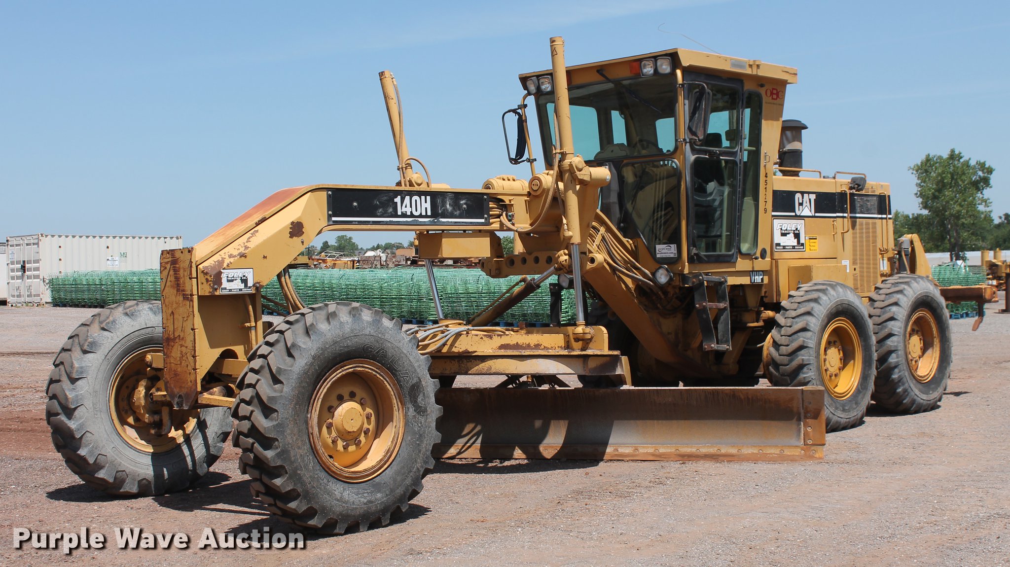 Purple Wave is selling a used Motor Grader in Oklahoma. This item is a 1997 Caterpillar 140H VHP motor grader with the following: 18,173 hours on meter, Caterpillar 3306 turbo diesel engine, Serial 6MC02263, Powershift transmission, 8F-6R gears, Differential lock, EROPS, AC and heat, AM/FM, Air suspension seat, 9 control valves, Front and rear work lights, 14'W moldboard, Tip control, Side shift, Circle slip clutch, Diamond rear ripper, Five shank capacity, (2) shanks included, Nine scarifier teeth capacity, (5) included,, 14.00-24 tires, Serial 2ZK02695, Unit# 451.279