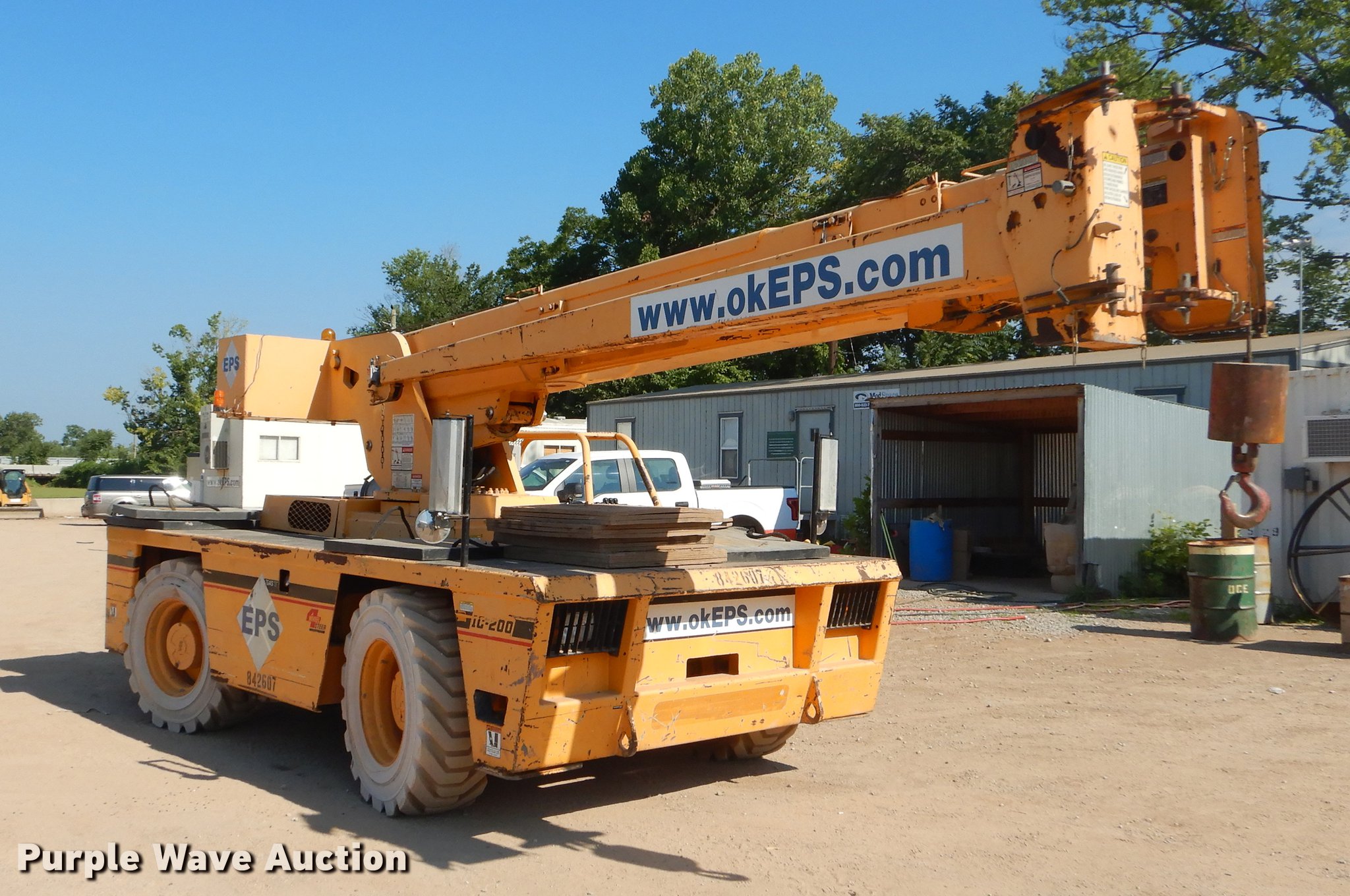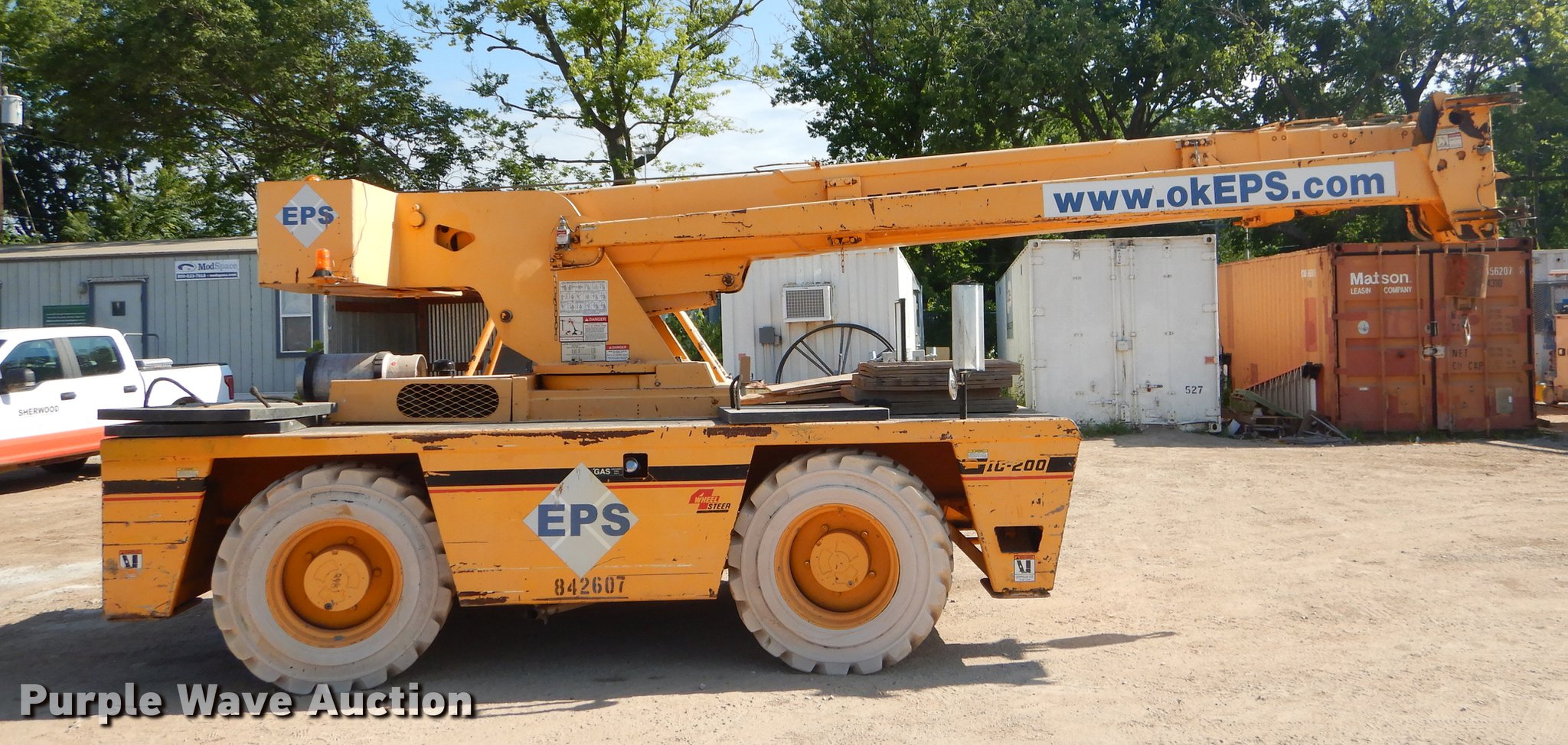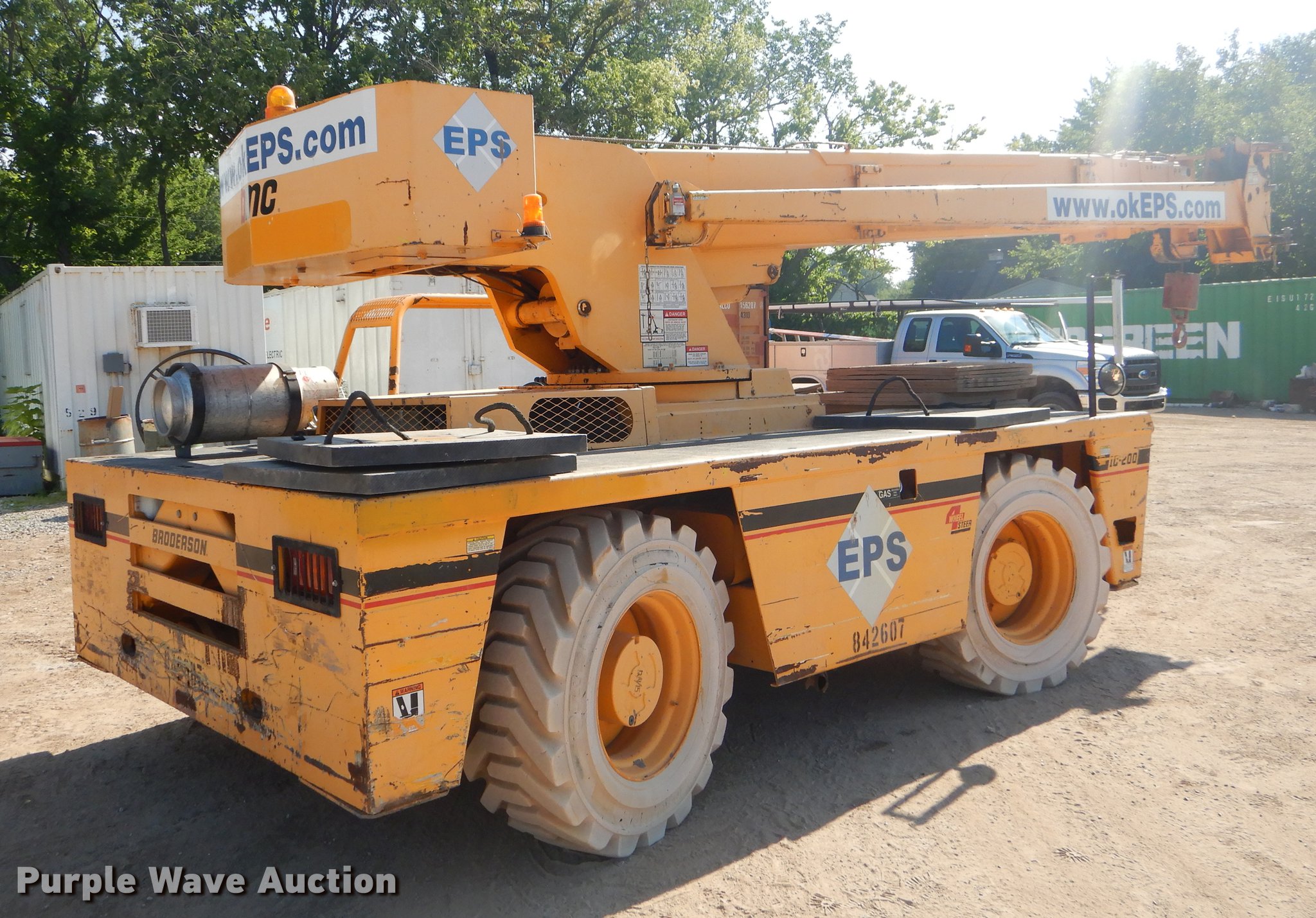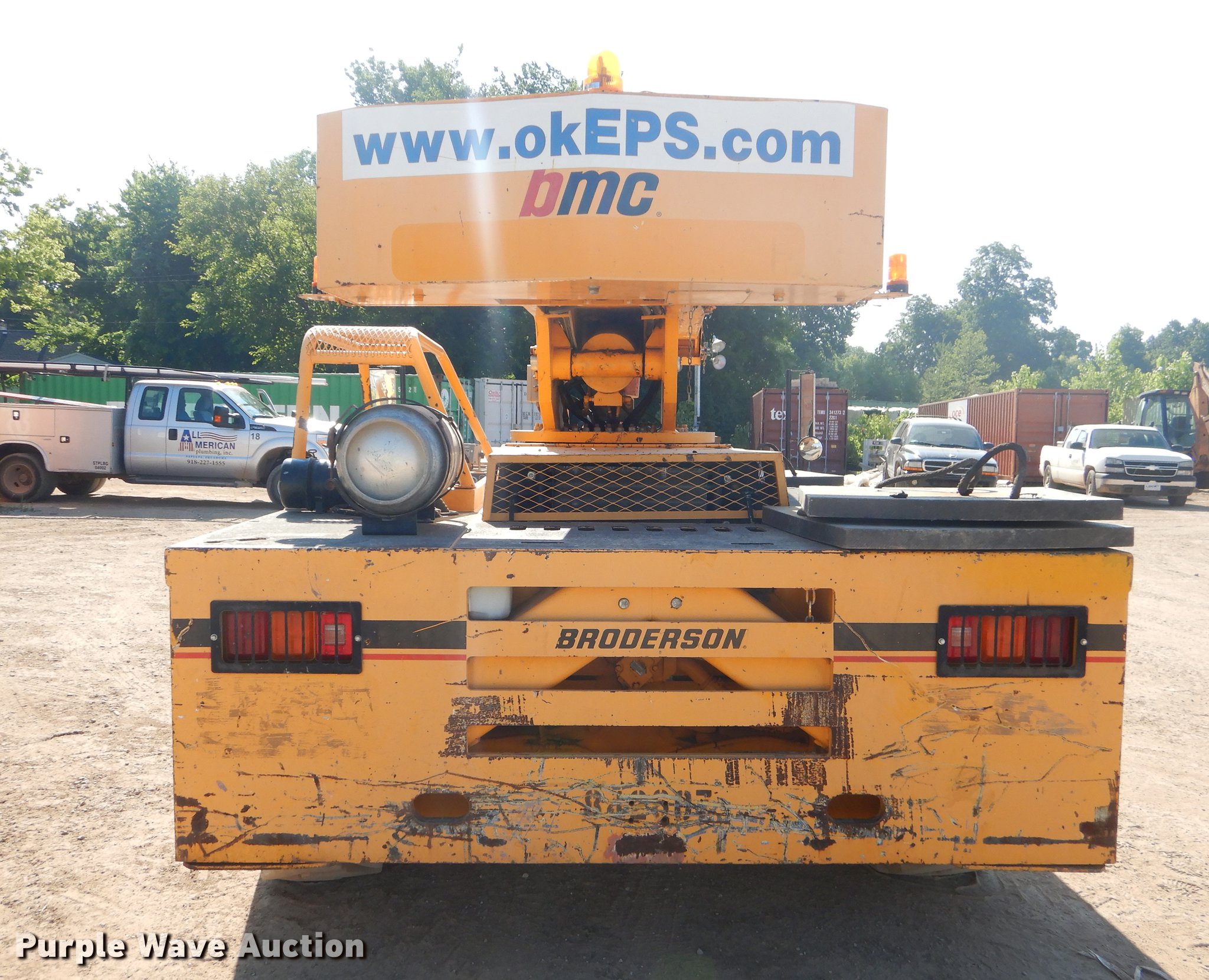 Purple Wave is selling a used Carry Deck Crane in Oklahoma. This item is a 2006 Broderson IC-200-3F crane with the following: 4,164 hours on meter, Hours may vary, still in use, GM Vortec 4.3L six cylinder engine dual fuel engine, Powershift transmission, Single axle, Stick crane controls, Work lights, Backup alarm, Beacon light, 50'L boom, 30,000 lbs max lift capacity, 74' max lift height, 66' max reach length, In-cab controls, Crane ball and hook, 360 degree continuous rotation, Four section, (4) stabilizers, (4) drive axles, (4) steering axles, Spring suspension, Hydraulic brakes, IN385/65P22.5 tires, Engine replaced 08/2017 at 2,482 hours, Serial 152372