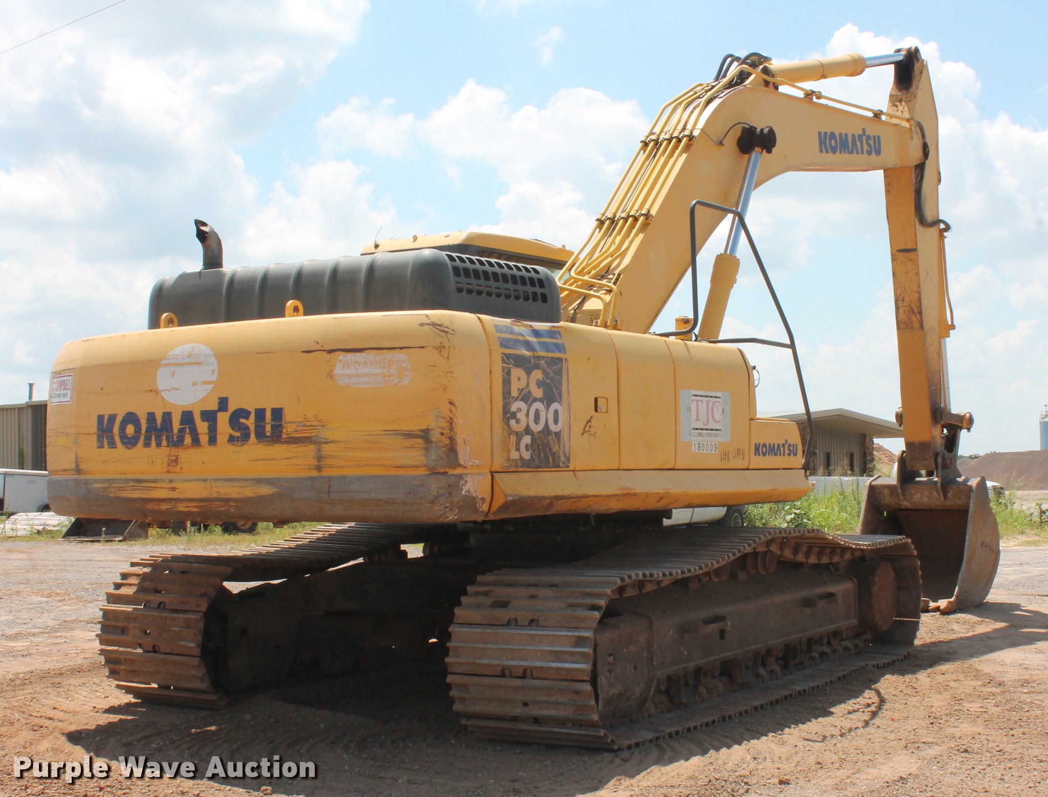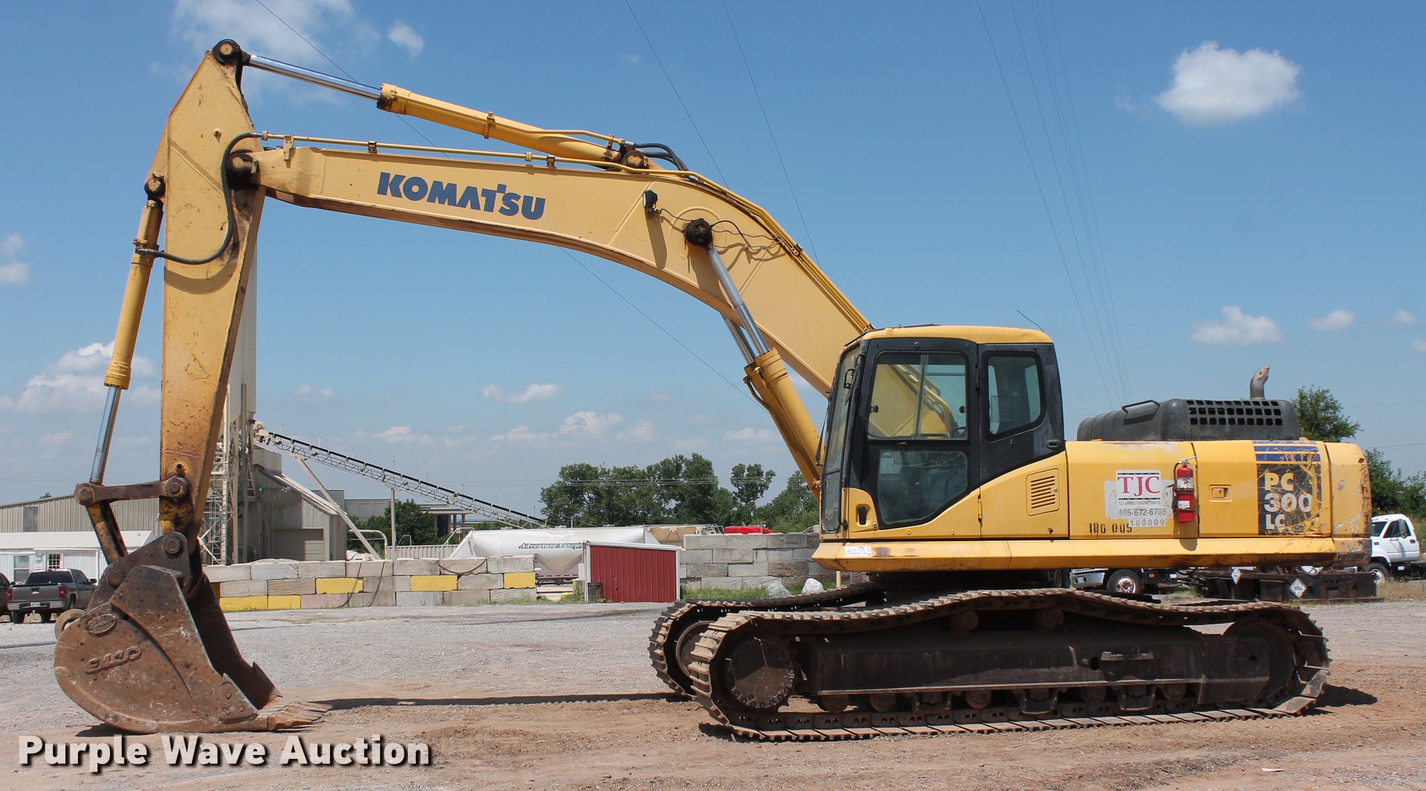 Purple Wave is selling a used Hydraulic Excavator in Oklahoma. This item is a 2005 Komatsu PC300LC-7L excavator with the following: 1,999 hours on meter, Komatsu SAA6D114E-2 8.3L six cylinder turbo diesel engine, 255 HP, Serial 46487477, Two speed hydrostatic transmission, EROPS, AC and heat, AM/FM, Suspension seat, Wipers, Front work lights, Standard boom, 10'5" stick length, Esco 48"W bucket, (5) bolt-on teeth, 2.19 cu. yd. capacity, 33.5"W steel triple grouser track pads, Side glass cracked, Serial KMTPC065J54A86681, Unit# 180.009