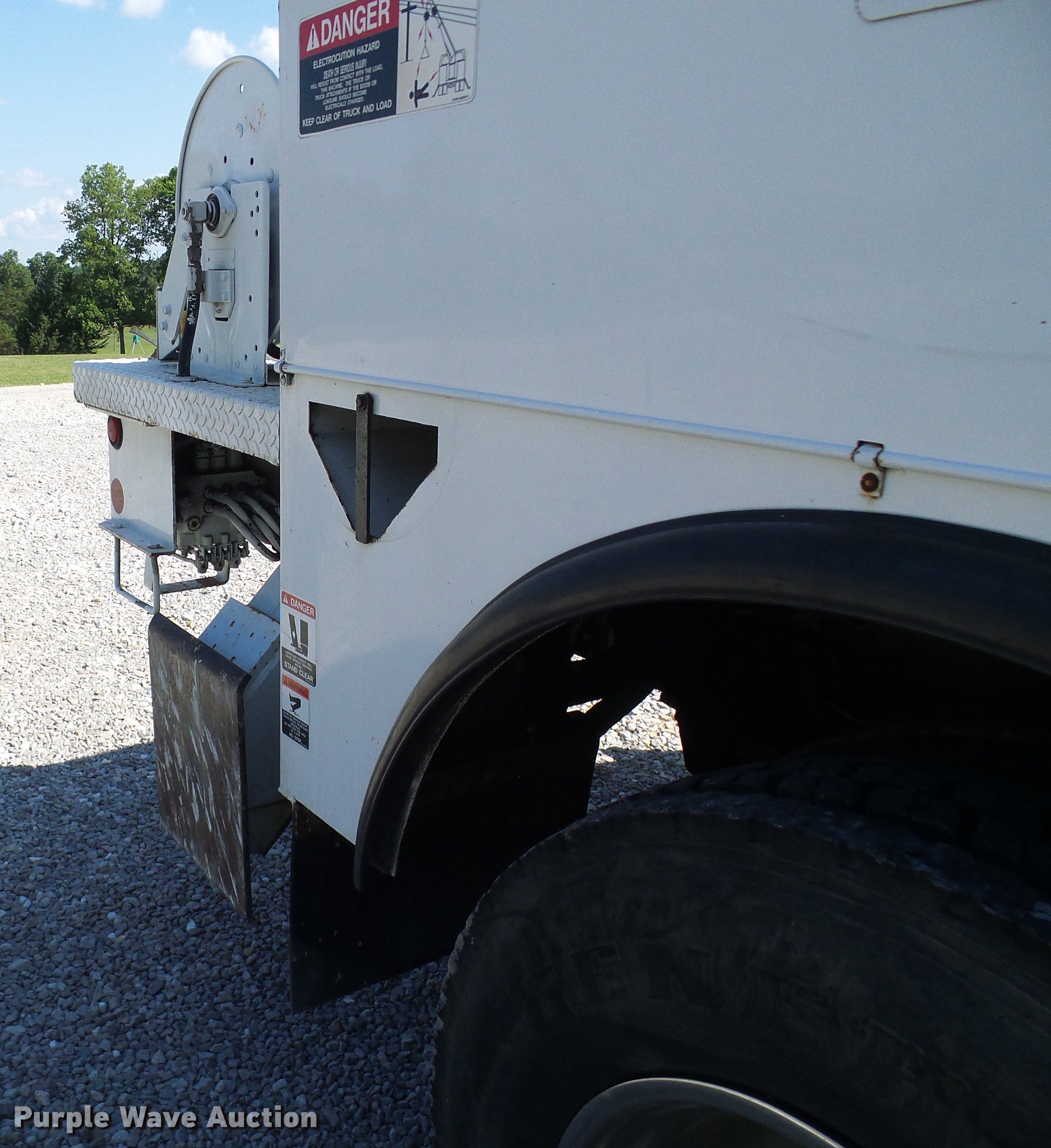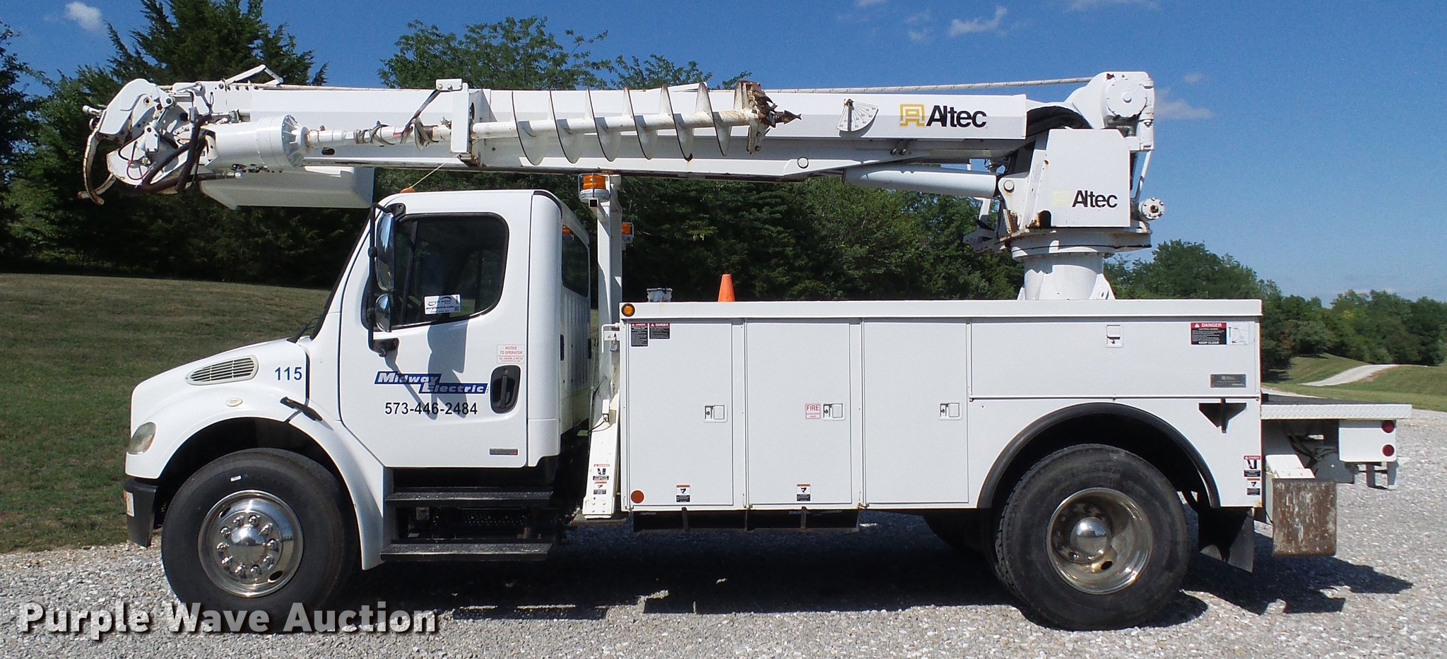 2004 Freightliner Business Class M2 digger derrick truck. 65,105 miles on odometer, 4,856 hours on meter Miles and hours may vary, still in use, Caterpillar C7 7.2L L6 turbo diesel engine, Six speed manual transmission, Single axle, AC and heat, Cruise, AM/FM, Suspension seat, Brake controller, Beacon light, Front tow hooks, PTO, Altec utility bed 15'L, Shelving, Serial 37-2246875, Altec DM47TR digger derrick 18,000 lbs max lift capacity, Man basket Pin-on, 47' max lift height, Ground and platform controls, Pole guide, Telescopic boom, 18" diameter auger, Rope material handler, (4) outriggers, Serial 0104DV0285, Single fuel tank, Pintle hitch, Trailer wiring, Spring suspension, Air brakes, 11R22.5 tires, GVWR 33,000 lbs. View repairs. Missouri title. 1FVACXDC04HN09560. Midway Electric. 7301 W Henderson Rd. Columbia, MO 65202
