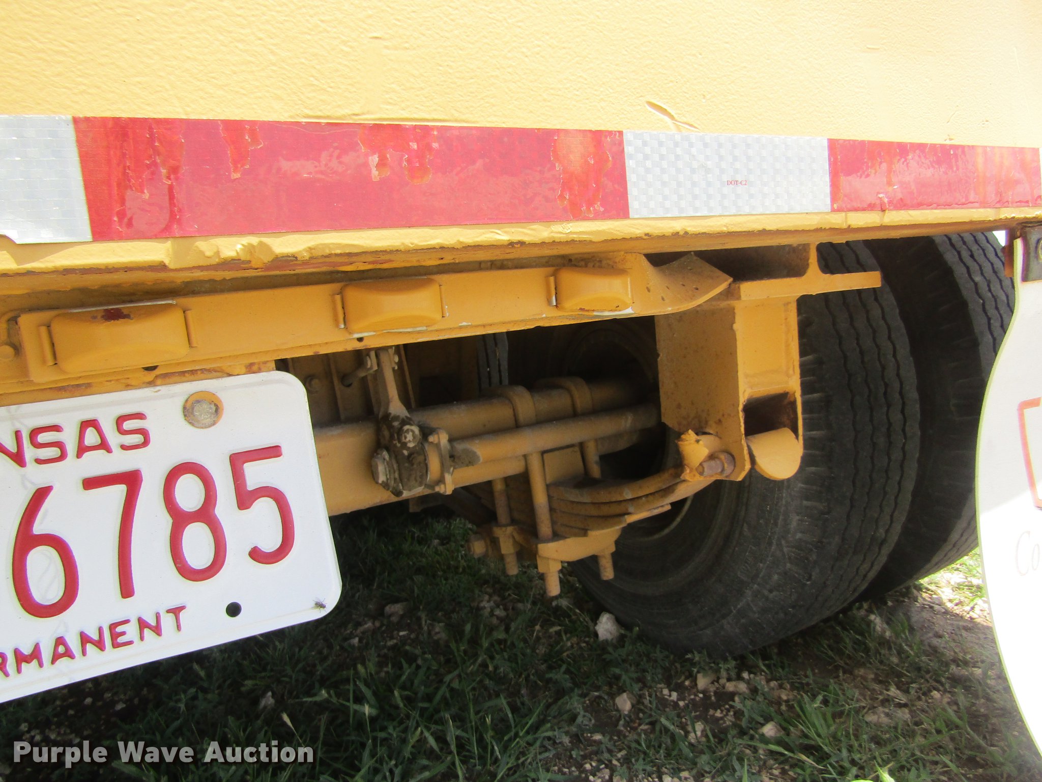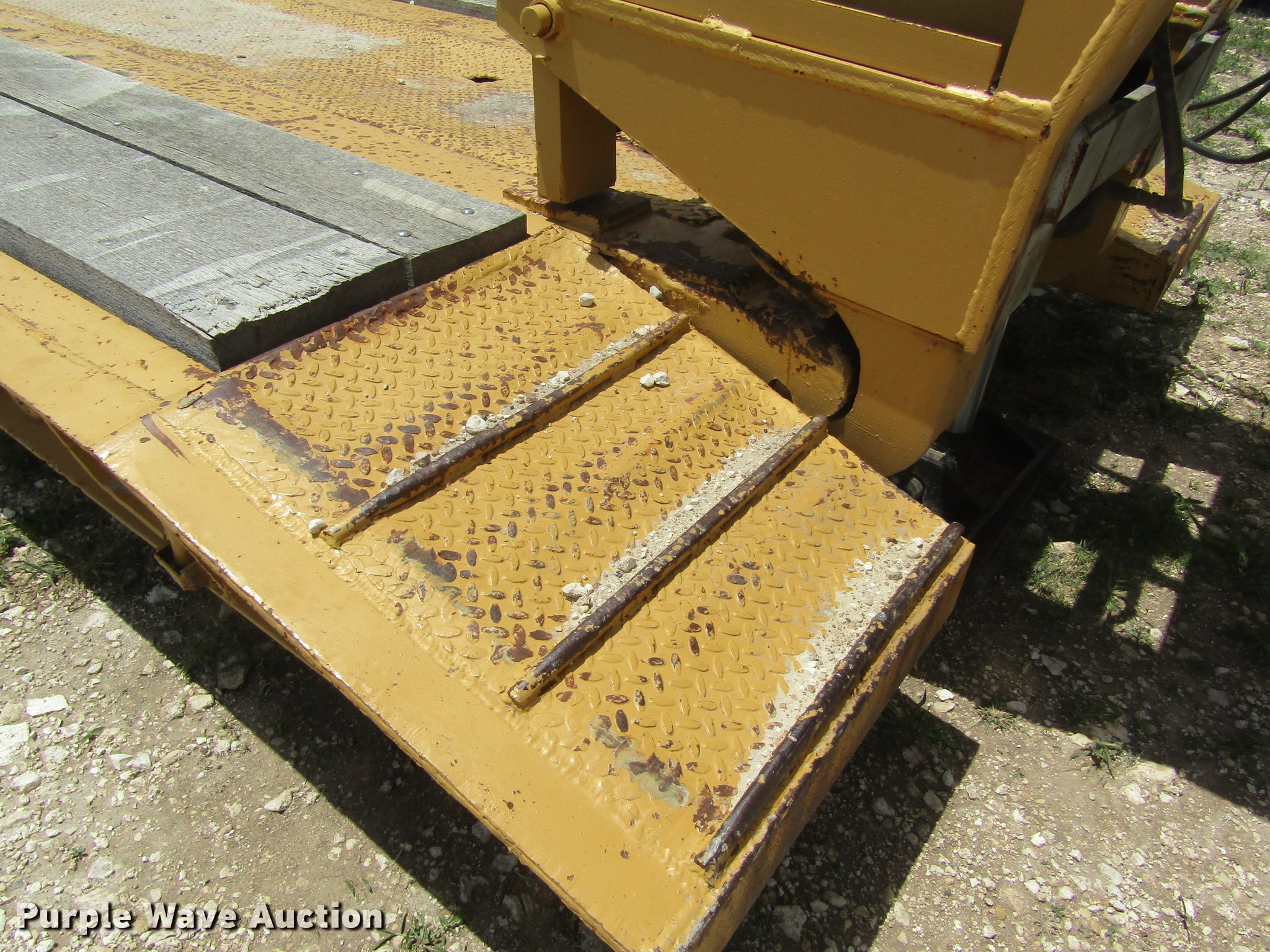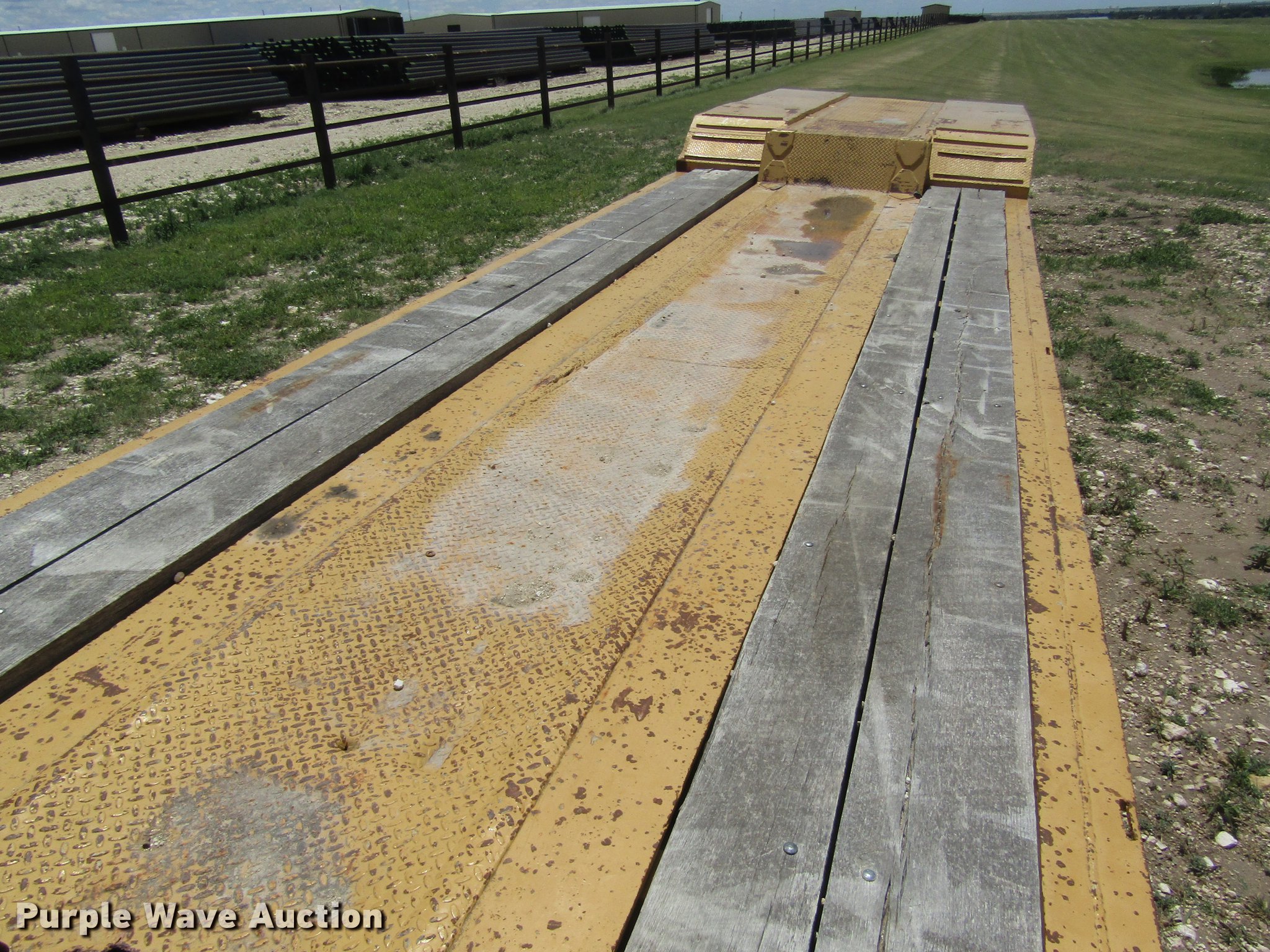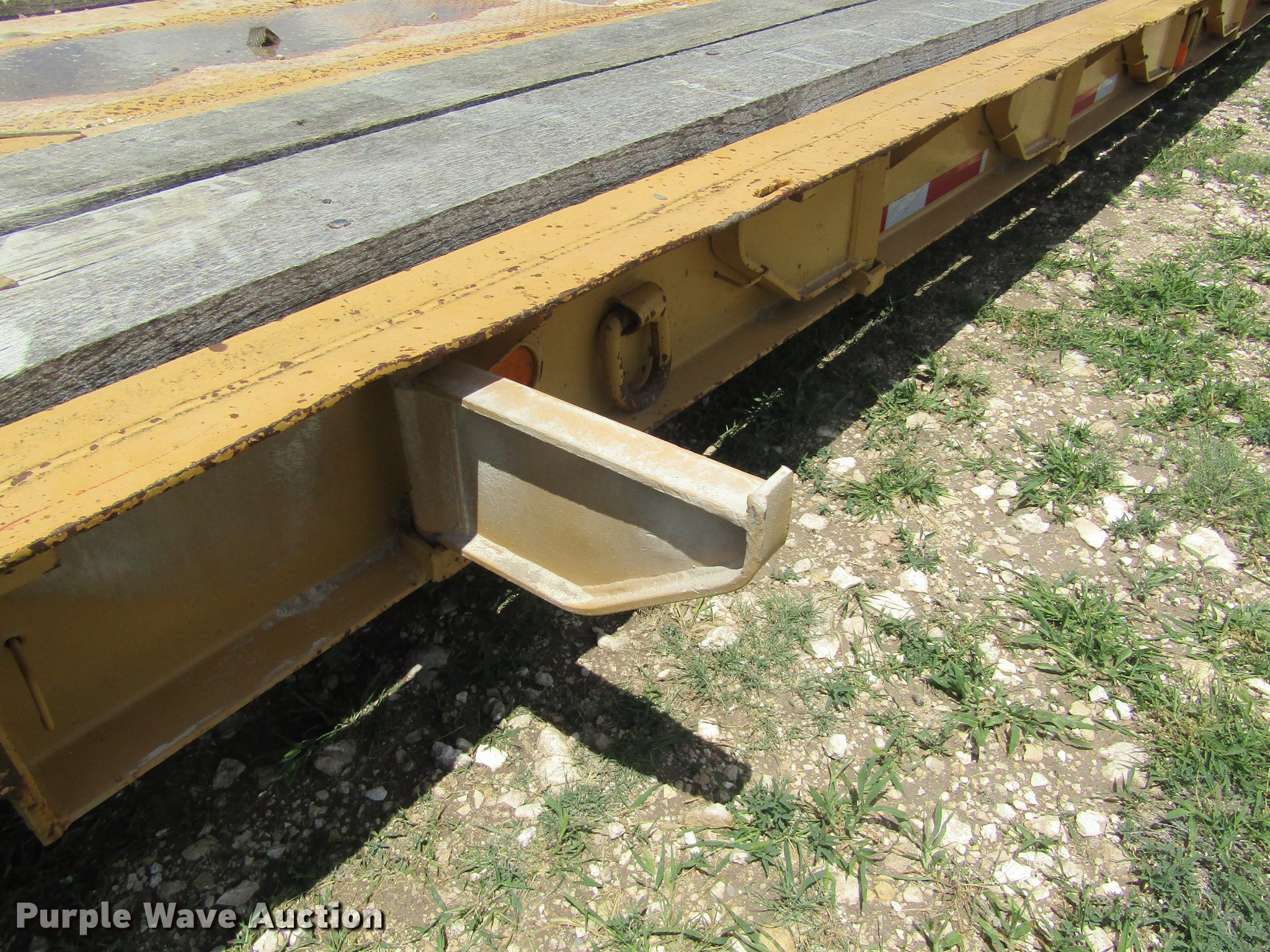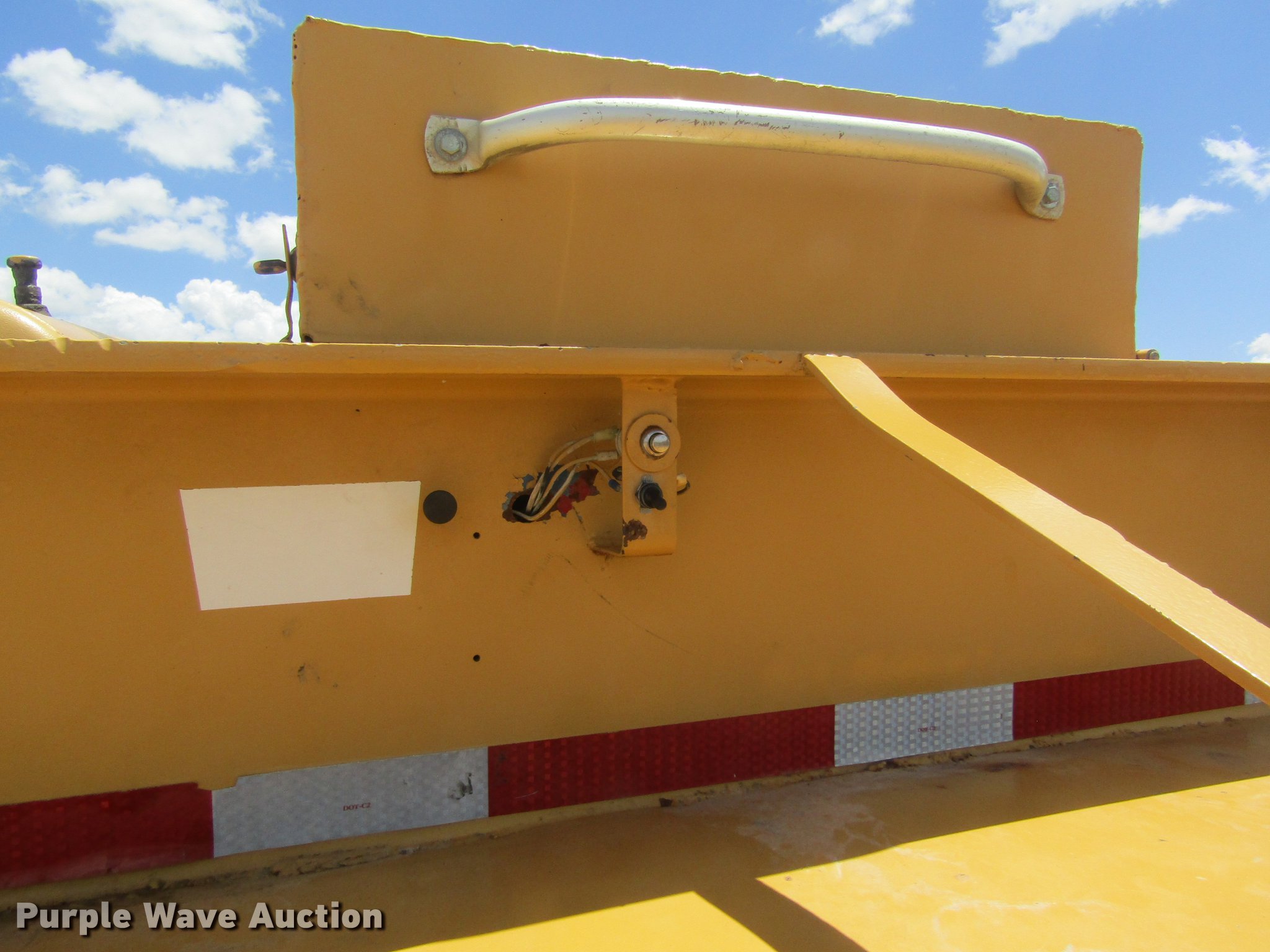 Purple Wave is selling a used Equip. Trailer in Kansas. This item is a 1984 Witco Challenger RG50 lowboy equipment trailer with the following: 46'L x 102"W, 23'L well, 13'L rear deck, 13" swing and stow side extensions, Wood and steel deck, D-ring tie downs, Detachable neck, 50 ton capacity, Fifth wheel plate, Single hydraulic landing gear, Spring suspension, Air brakes, Triple axle, Steel wheels, 10.00R15 tires, Rear deck weld will be repaired prior to auction