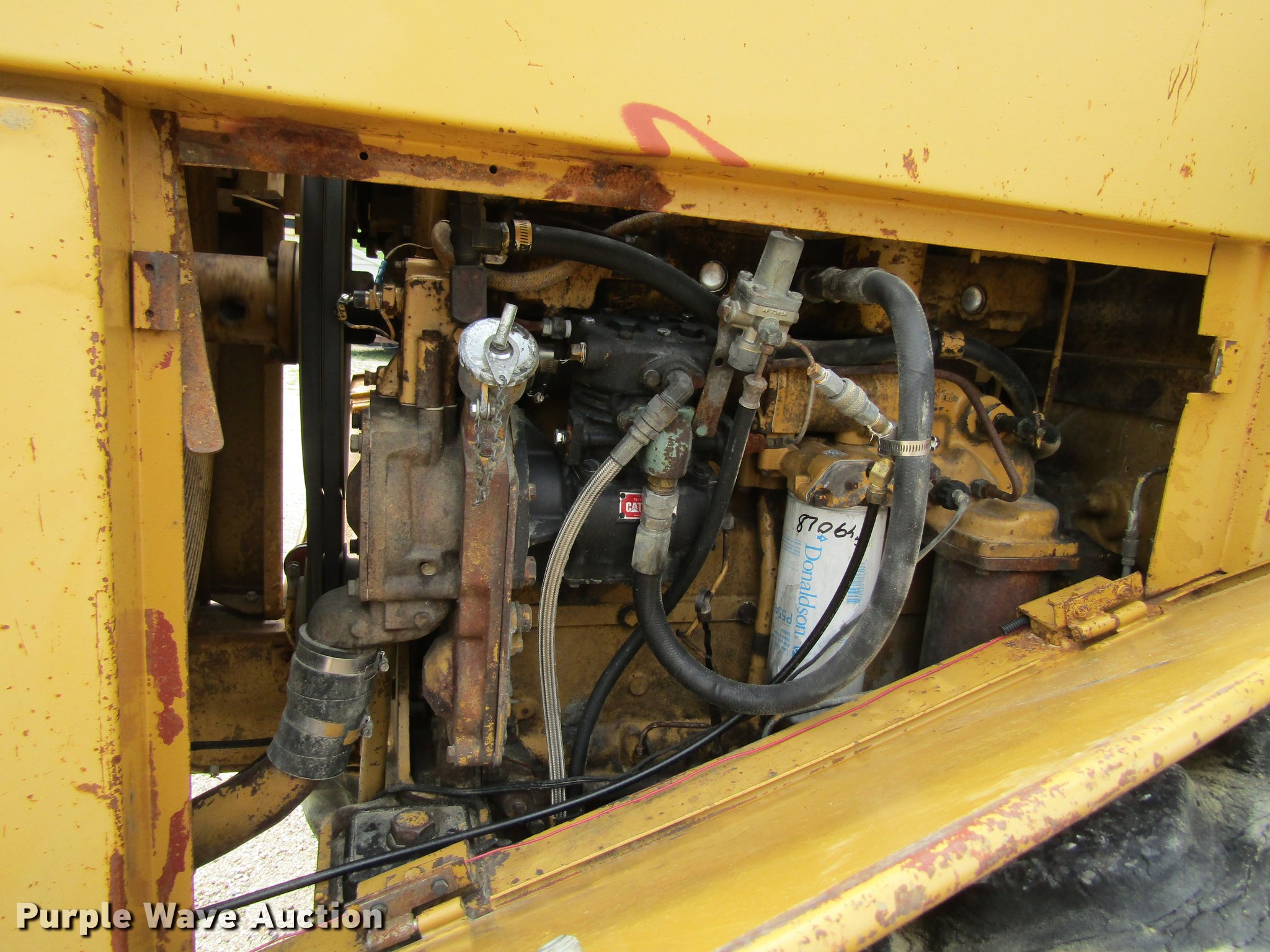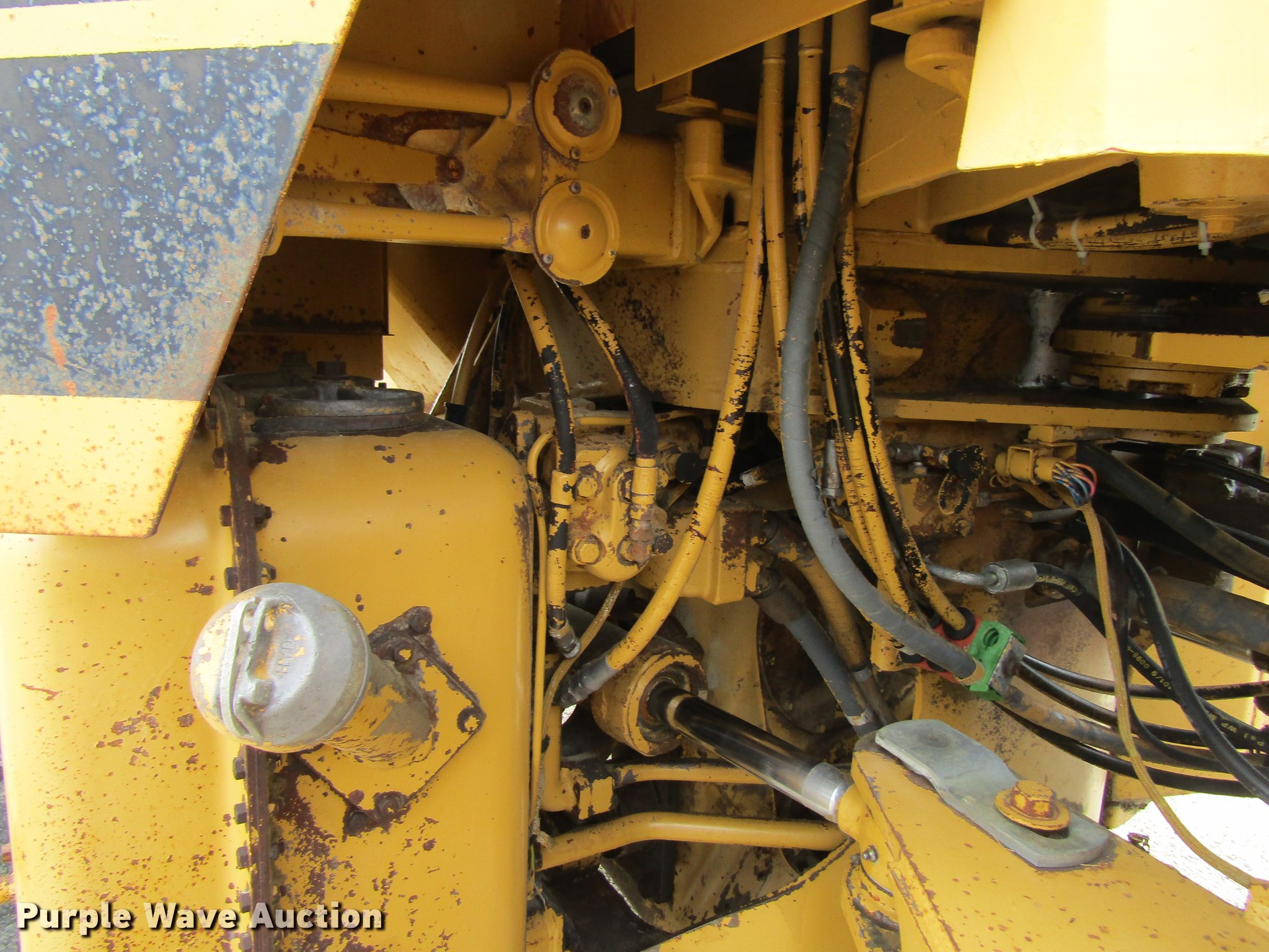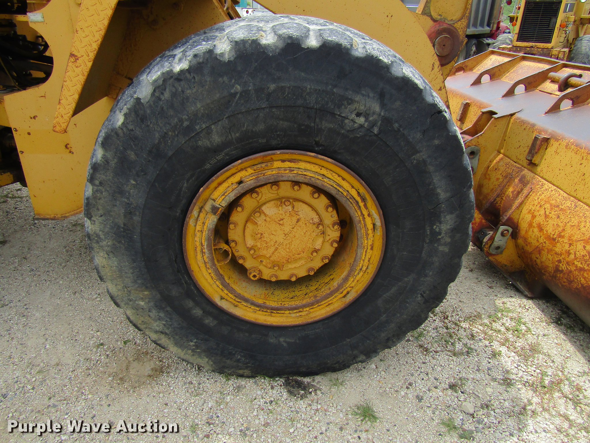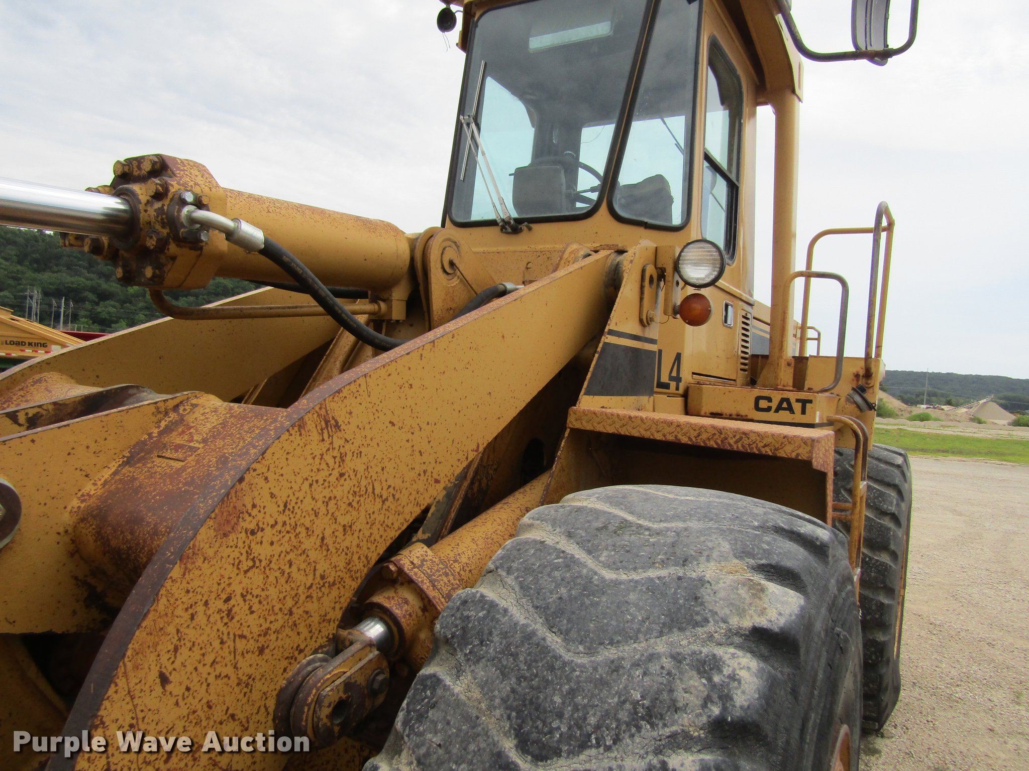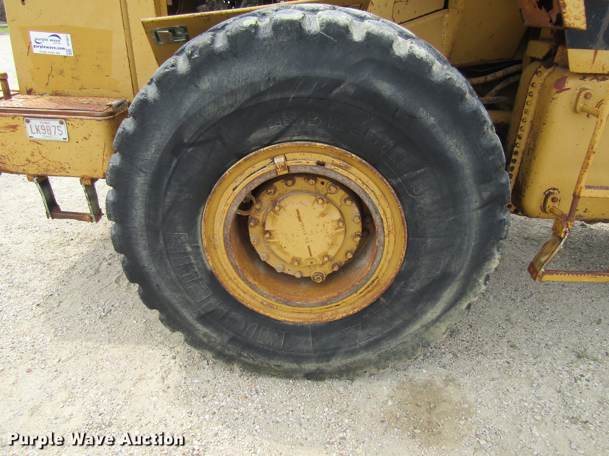 Purple Wave is selling a used Wheel Loader in Iowa. This item is a 1983 Caterpillar 950B wheel loader with the following: Caterpillar 3304 four cylinder diesel engine, Powershift transmission, 4F-4R gears, Enclosed cab, Heat, AM/FM, Two-lever bucket controls, 8.5'W general purpose bucket, Bolt-on cutting edge, 23.5R25 tires, Hour meter does not illuminate, Serial 31R01456