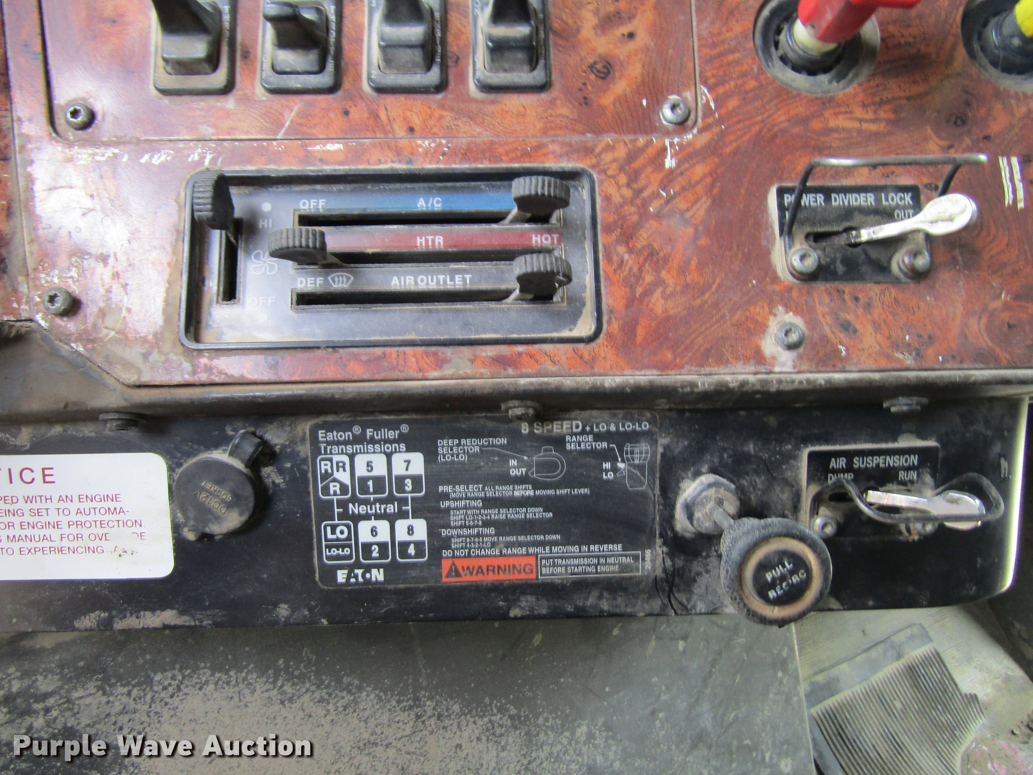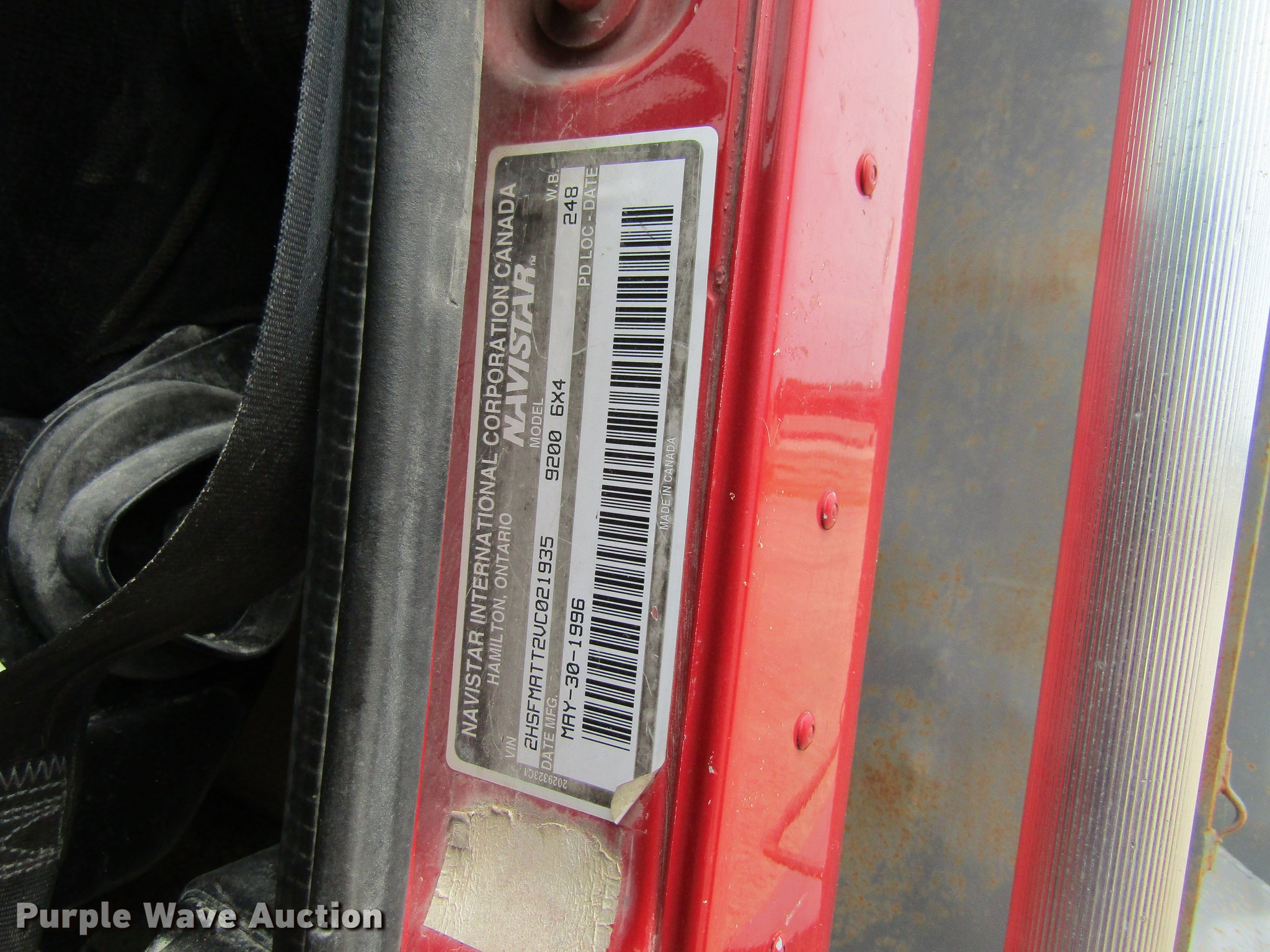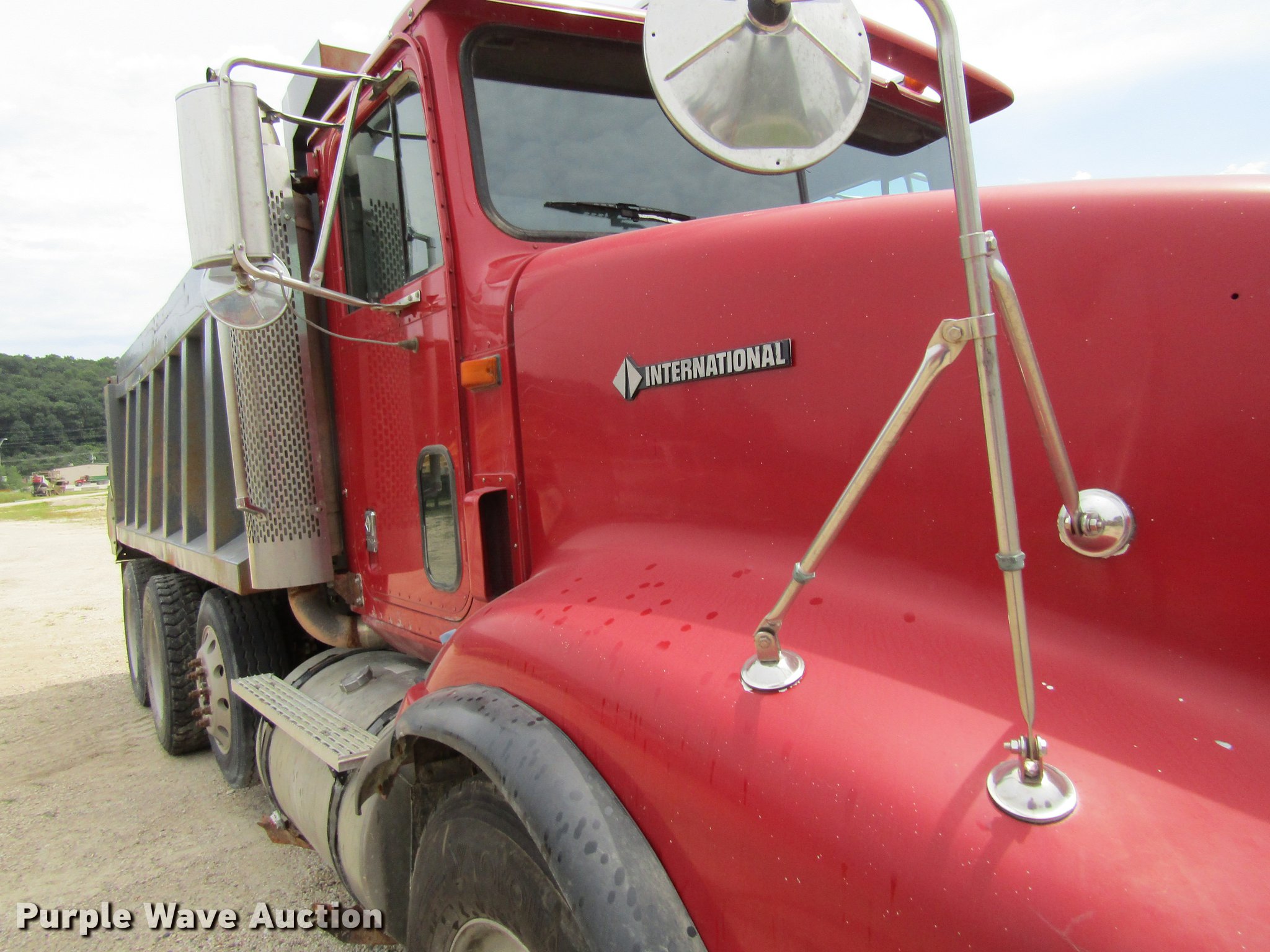 Purple Wave is selling a used Construction Dump Truck in Iowa. This item is a 1997 International 9200 dump truck with the following: 174,970 miles on odometer, 4,416 hours on meter, Caterpillar C10 10.3L L6 diesel engine, Eaton Fuller eight speed manual transmission, Tandem axle, AC and ehat, AM/FM, Suspension seat, PTO, 16'L x 7'W steel dump bed, 48" side height, 7" side board height, Single ram hoist, Manual end gate, Single fuel tank, Air suspension, Air brakes, 385/65R22.5 front tires, 285/75R24.5 rear tires, 255/70R22.5 tag axle tires