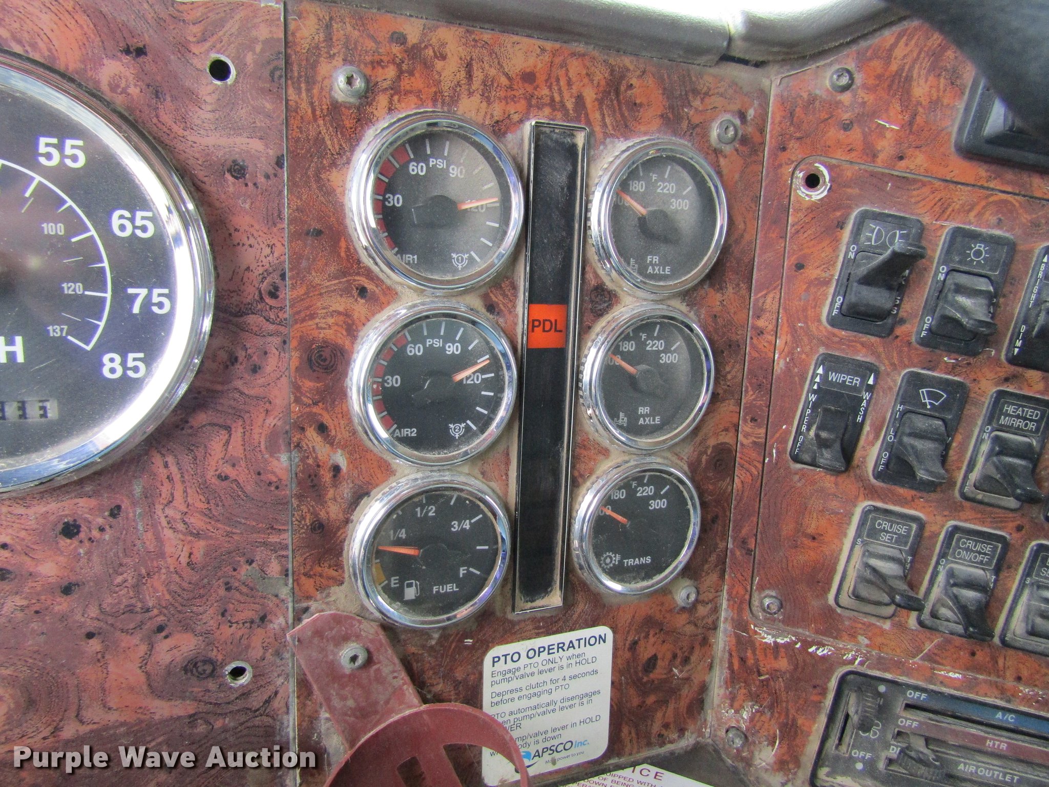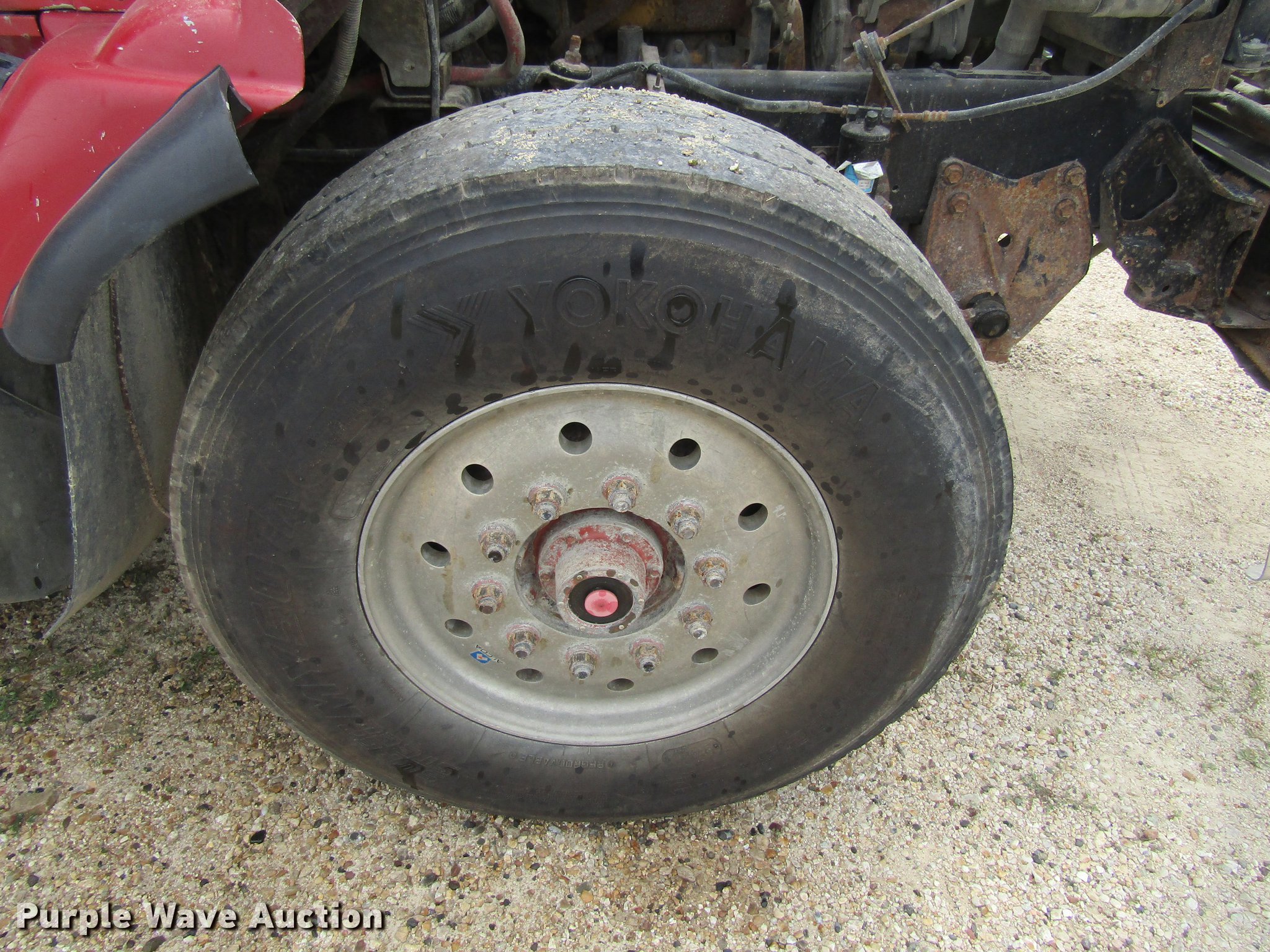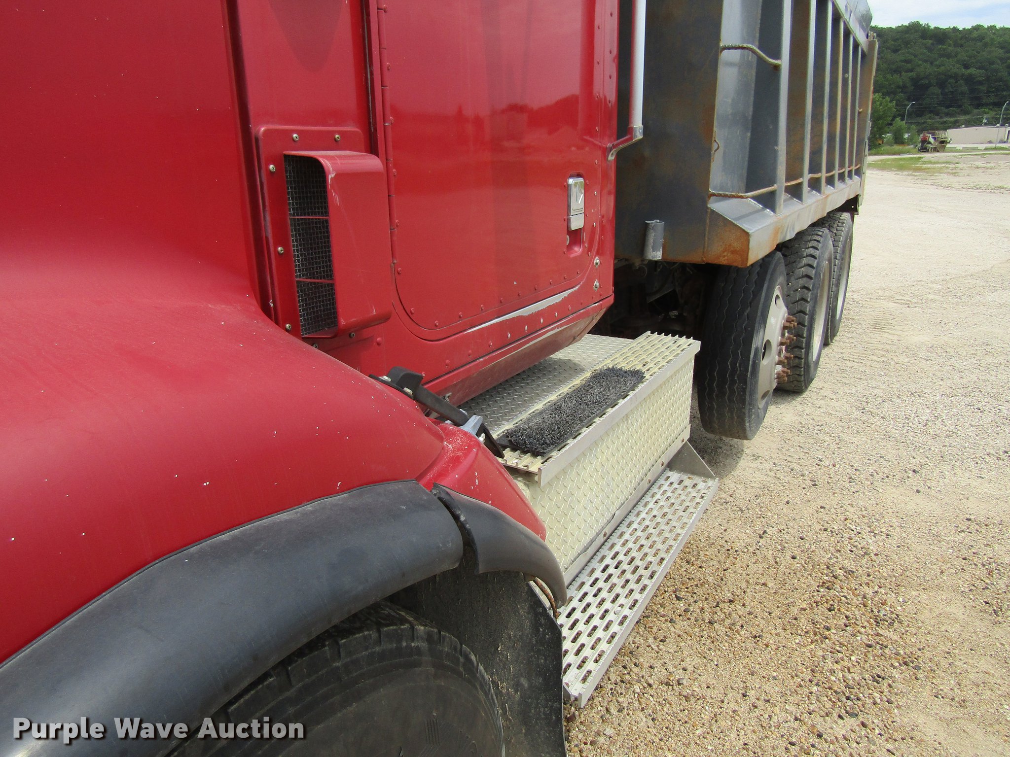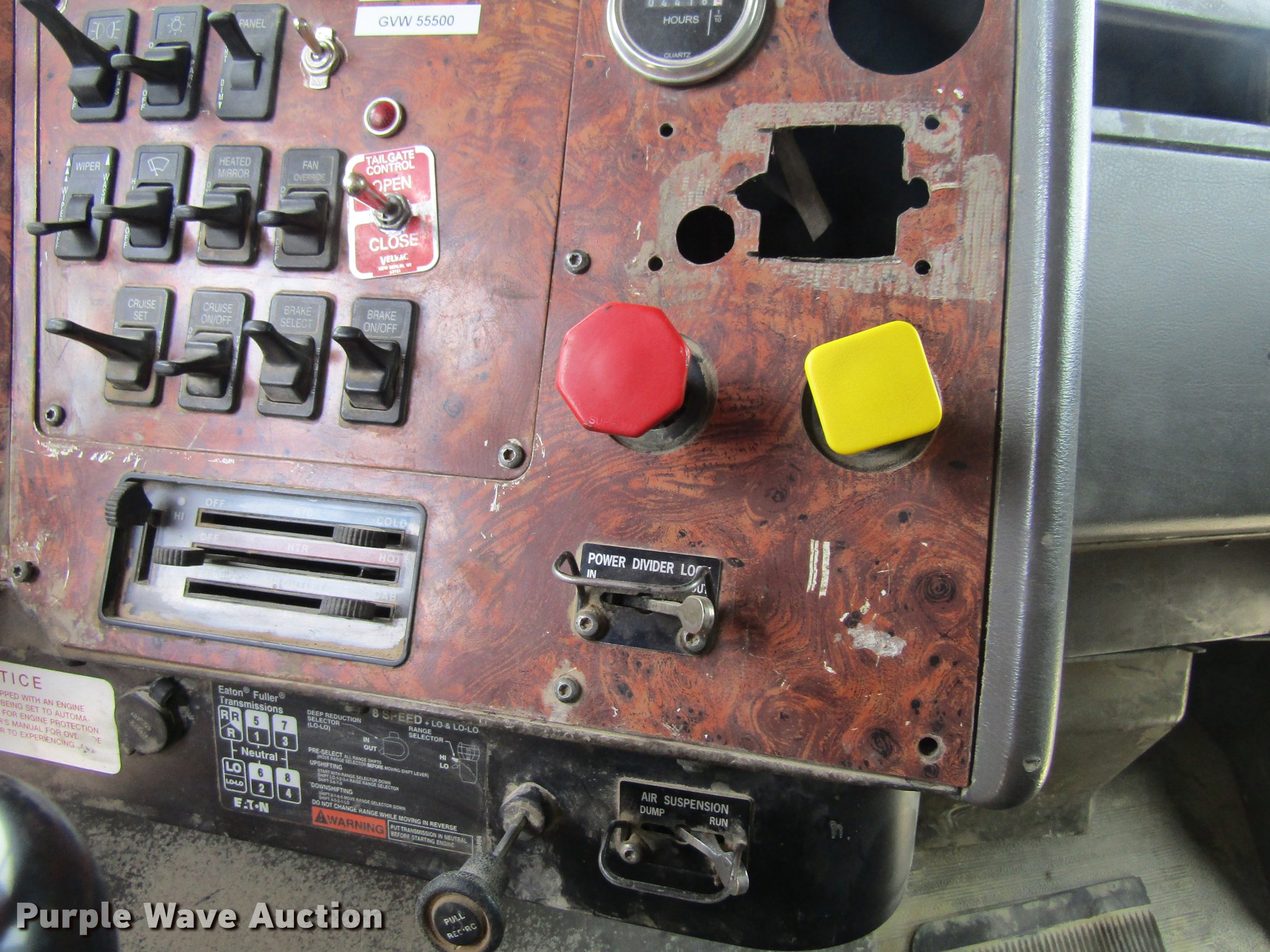 Purple Wave is selling a used Construction Dump Truck in Iowa. This item is a 1997 International 9200 dump truck with the following: 174,970 miles on odometer, 4,416 hours on meter, Caterpillar C10 10.3L L6 diesel engine, Eaton Fuller eight speed manual transmission, Tandem axle, AC and ehat, AM/FM, Suspension seat, PTO, 16'L x 7'W steel dump bed, 48" side height, 7" side board height, Single ram hoist, Manual end gate, Single fuel tank, Air suspension, Air brakes, 385/65R22.5 front tires, 285/75R24.5 rear tires, 255/70R22.5 tag axle tires