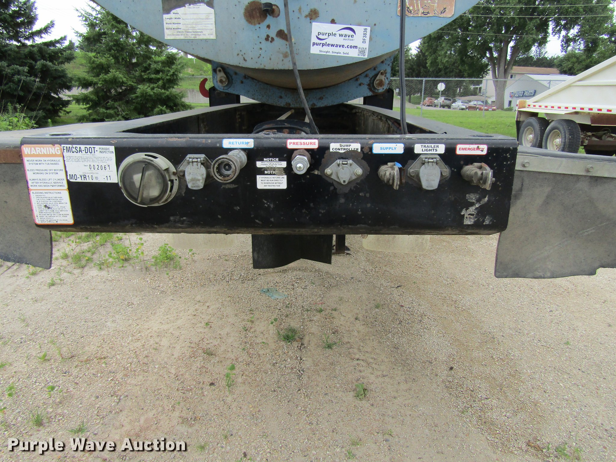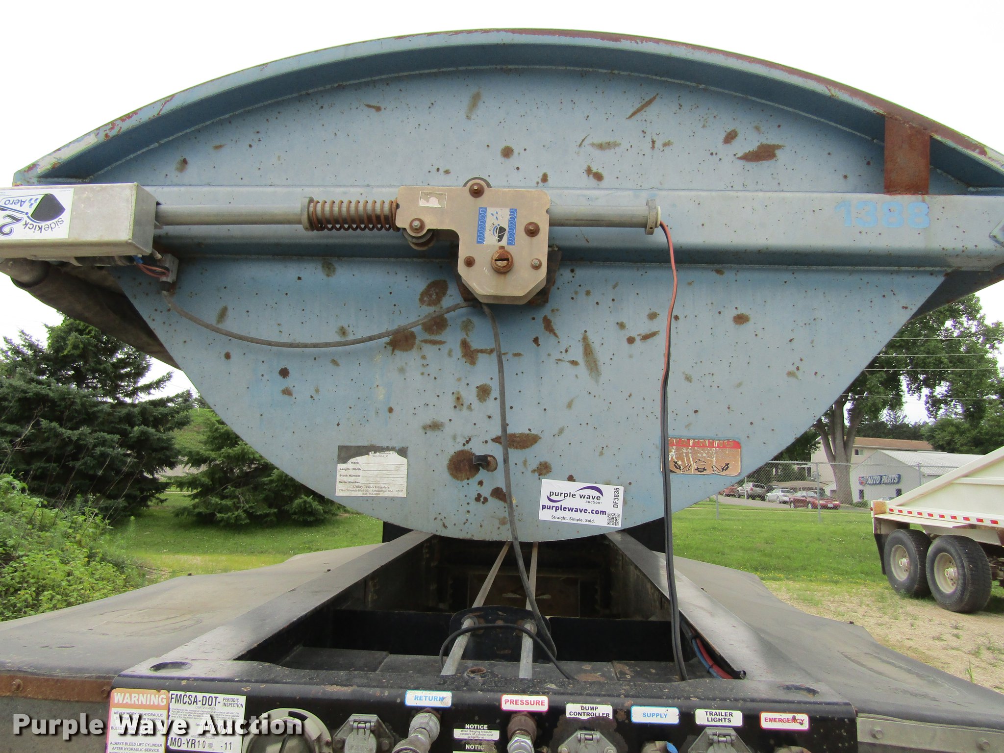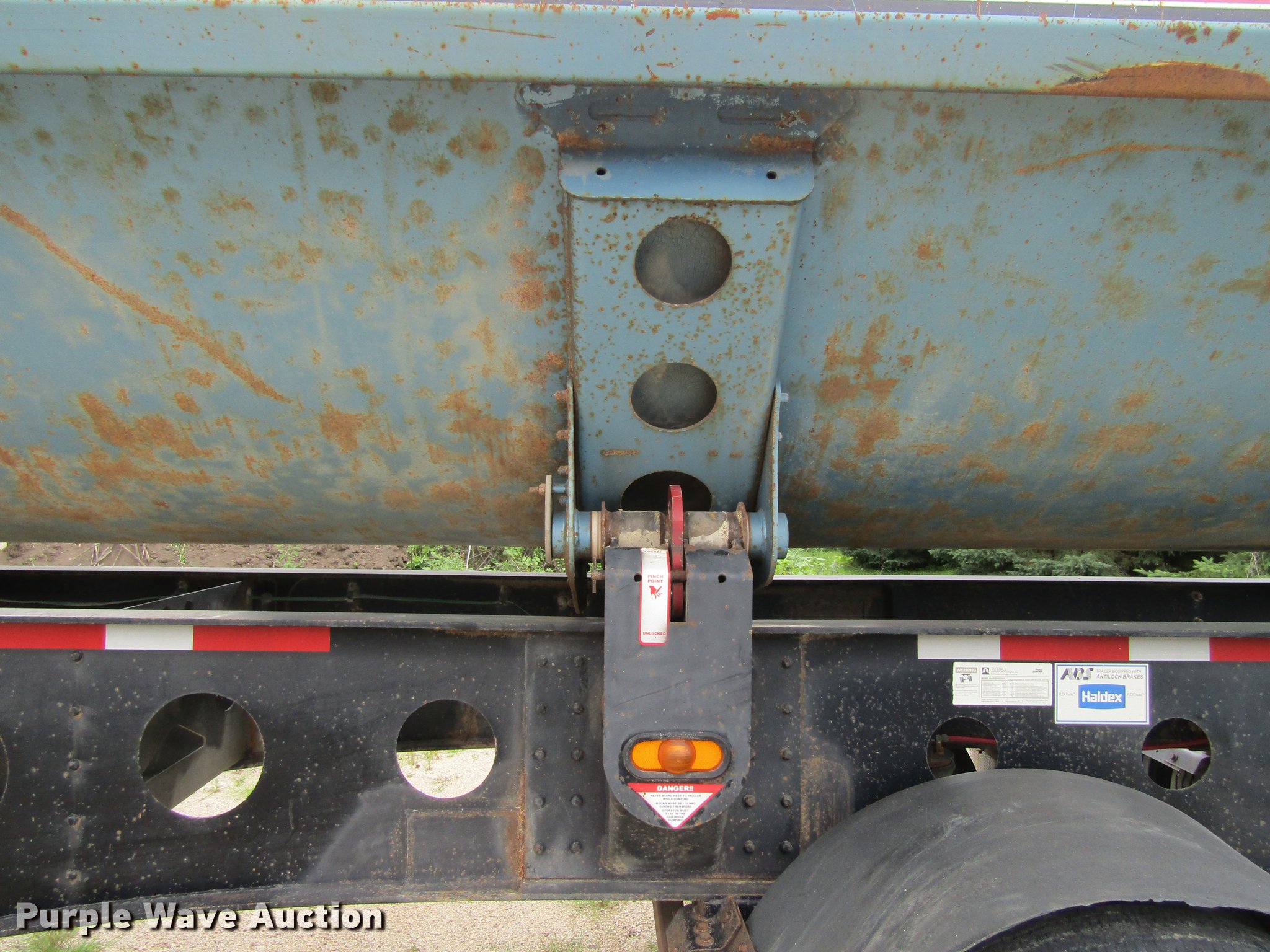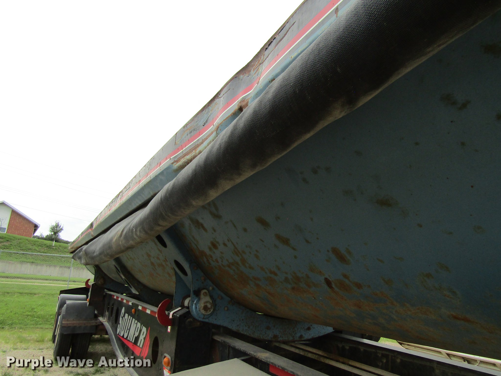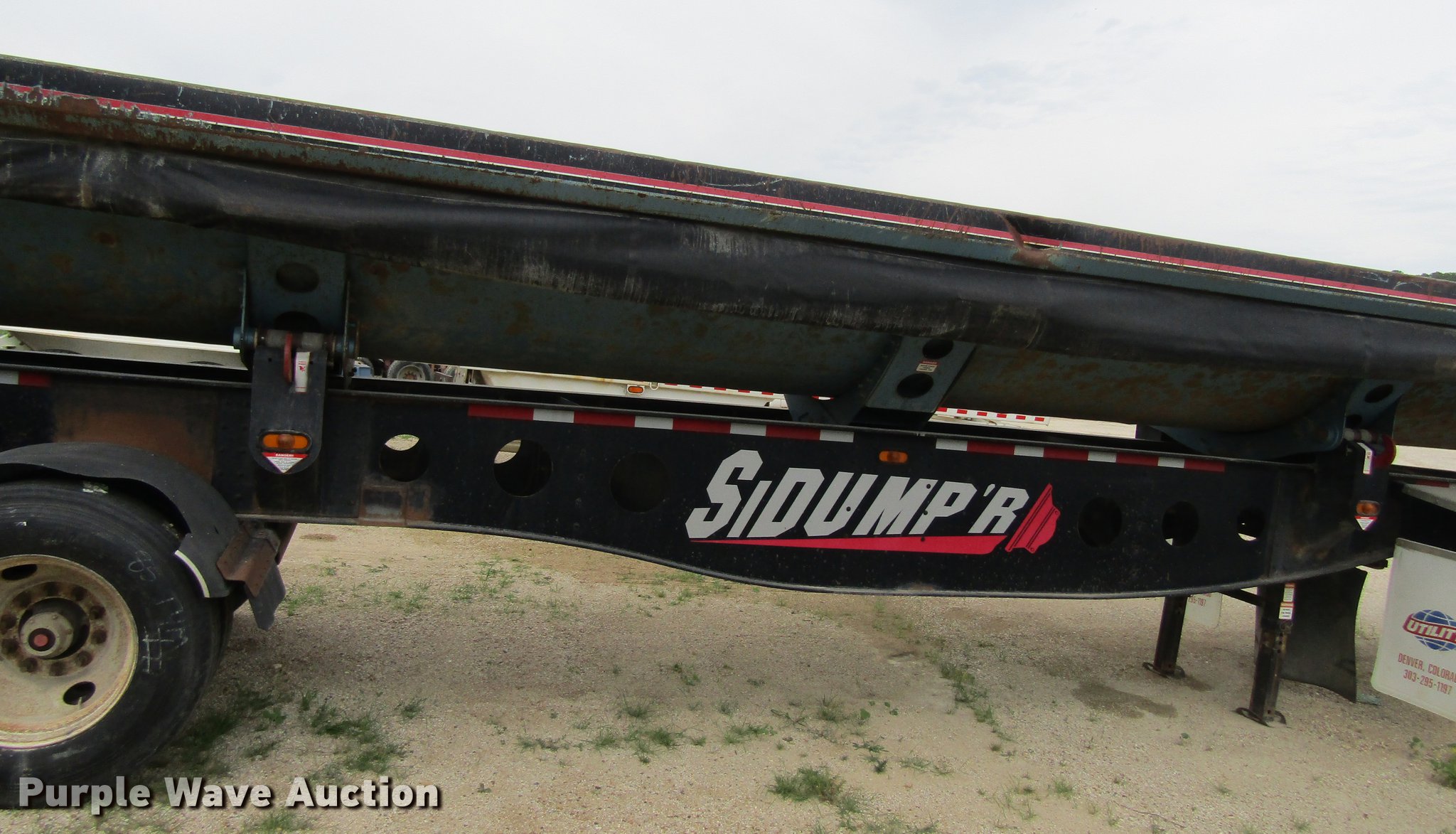 Purple Wave is selling a used Side Tilt Dump Trailer in Iowa. This item is a 2007 Sidumpr side dump trailer with the following: 42' overall length, 8.5'W, 36" side height, Single cylinder hoist, Electric tarp, Fifth wheel plate, Dual leg landing gear, Air suspension, Air brakes, Tandem axle, 11R22.5 tires, GVWR 68,000 lbs