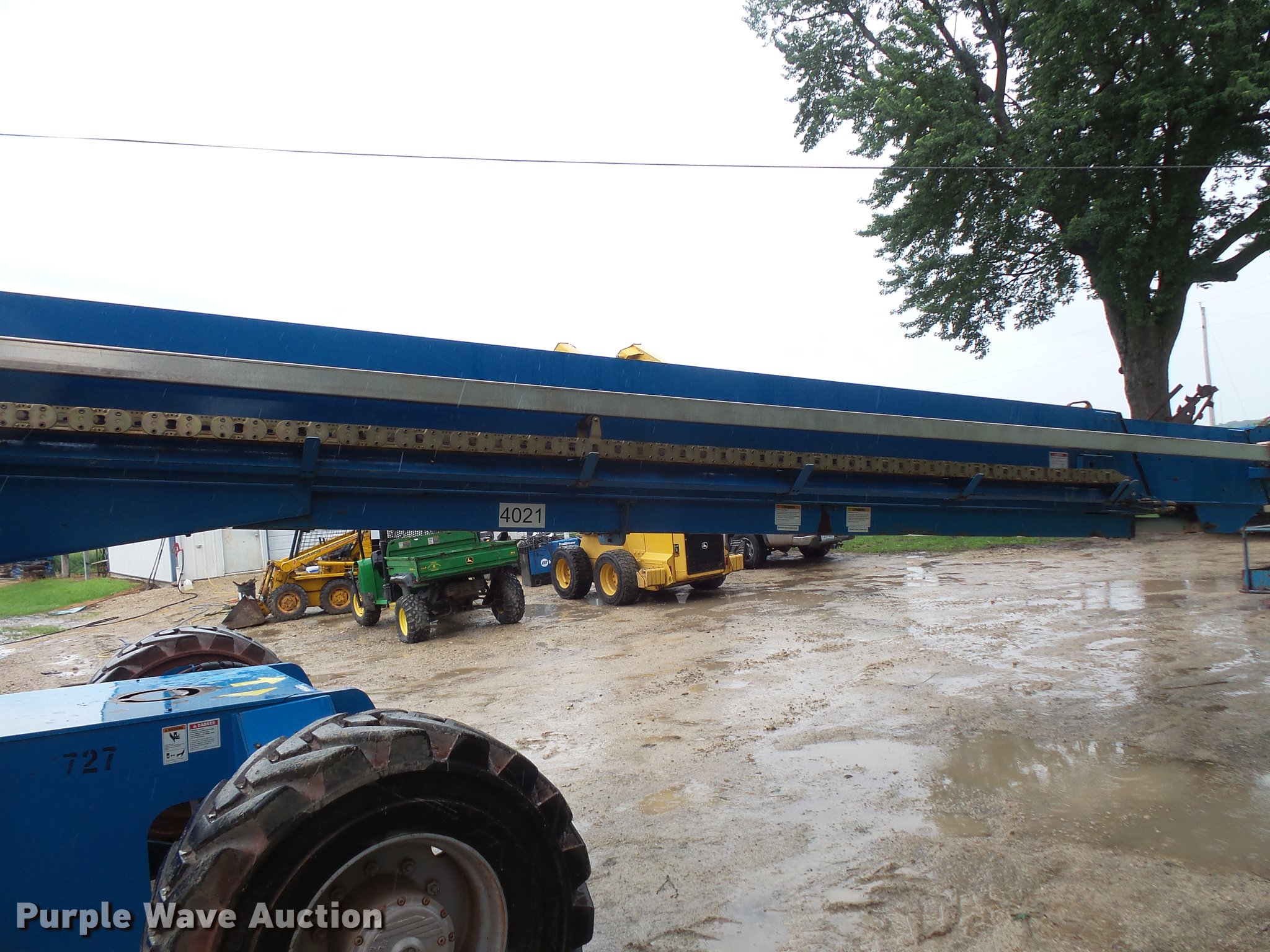 Purple Wave is selling a used Boom Lift in Minnesota. This item is a 2002 Genie S-125 boom lift with the following: 2,889 hours on meter, Deutz four cylinder diesel engine, 79 HP, Four wheel drive, 500 lbs max lift capacity, 80' max reach length, 125' max lift height, Three mph travel speed, Hydraulic extendable jib, Platform and ground controls, 8'L x 3'W platform, Safety alarm, Hydraulic platform rotation, Adjustable tread width, 445/65D22.5 pneumatic tires, Serial S125-670