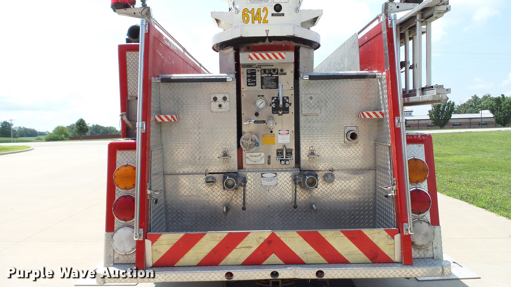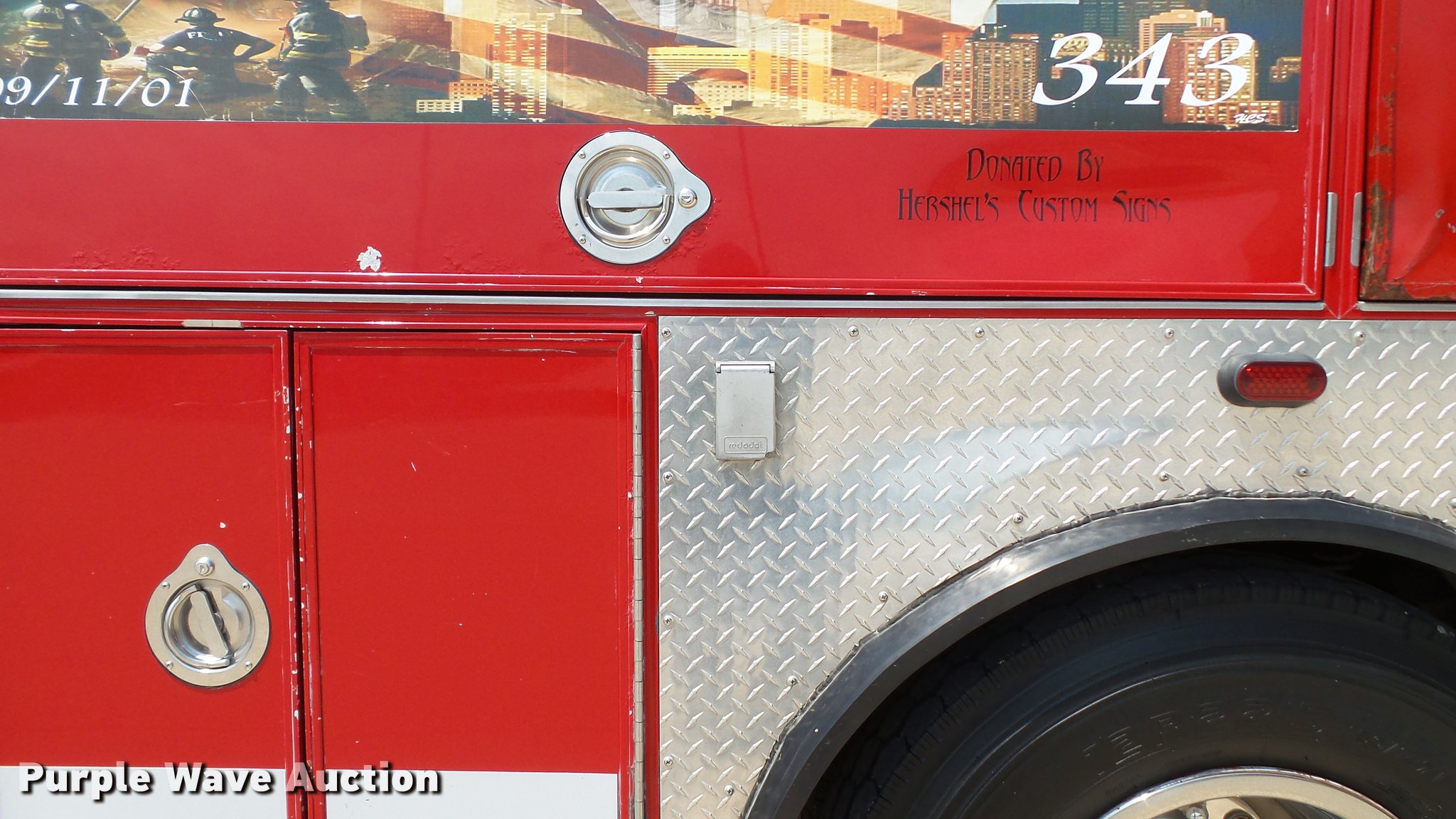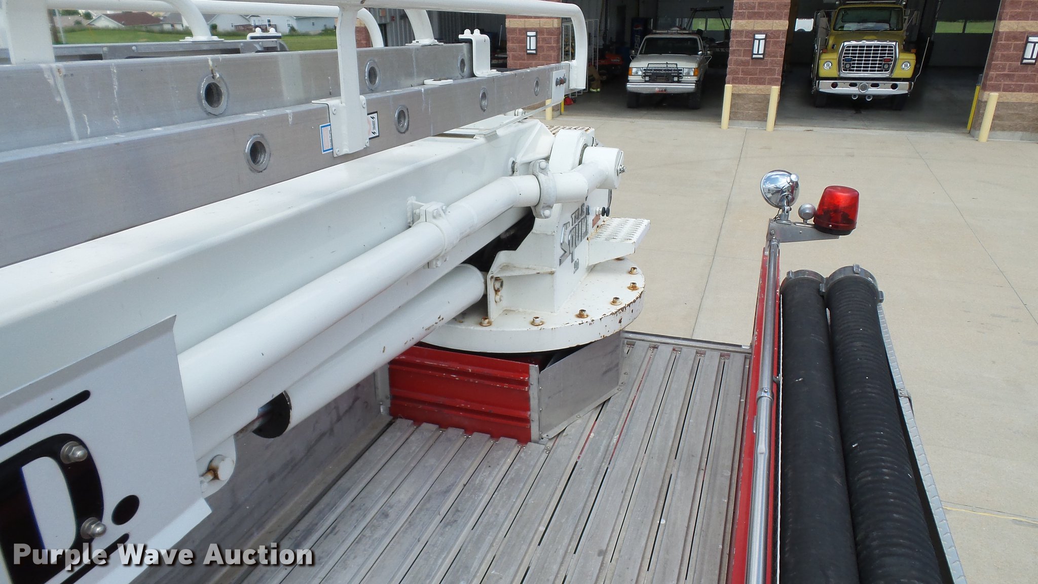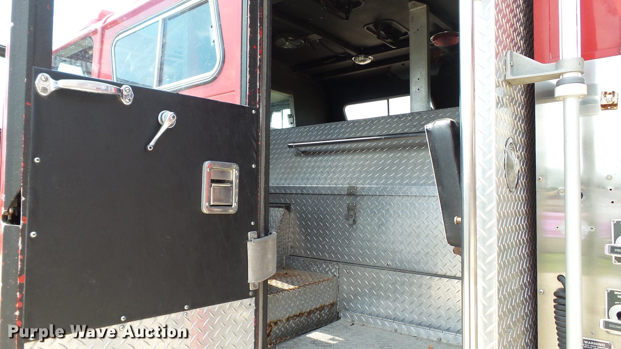 Purple Wave is selling a used Fire Truck or Emergency Vehicle in Missouri. This item is a 1988 Mack CF688FC fire truck with the following: 71,440 miles on odometer, 5,381 hours on meter, Mack six cylinder turbo diesel engine, Mack automatic transmission, Single axle, Heat, Air suspension seat, Air horn, PTO, Waterous Ranger platform, 9,729 hours on meter, 1,000 gpm pump, (2) outriggers, Outlet box, Work lights, Tele Squrt 50 B5042 ladder, 55'L, Two sections, Pre-piped water way ladder, Possible hydraulic hose leaking on ladder rotation, 10' attic ladder, 35' extension ladder, Receiver hitch, Air brakes, Engine brake, 12R22.5 tires, 9/11 mural on side of truck, Decals will be removed prior to auction, Removed from service in July 2017