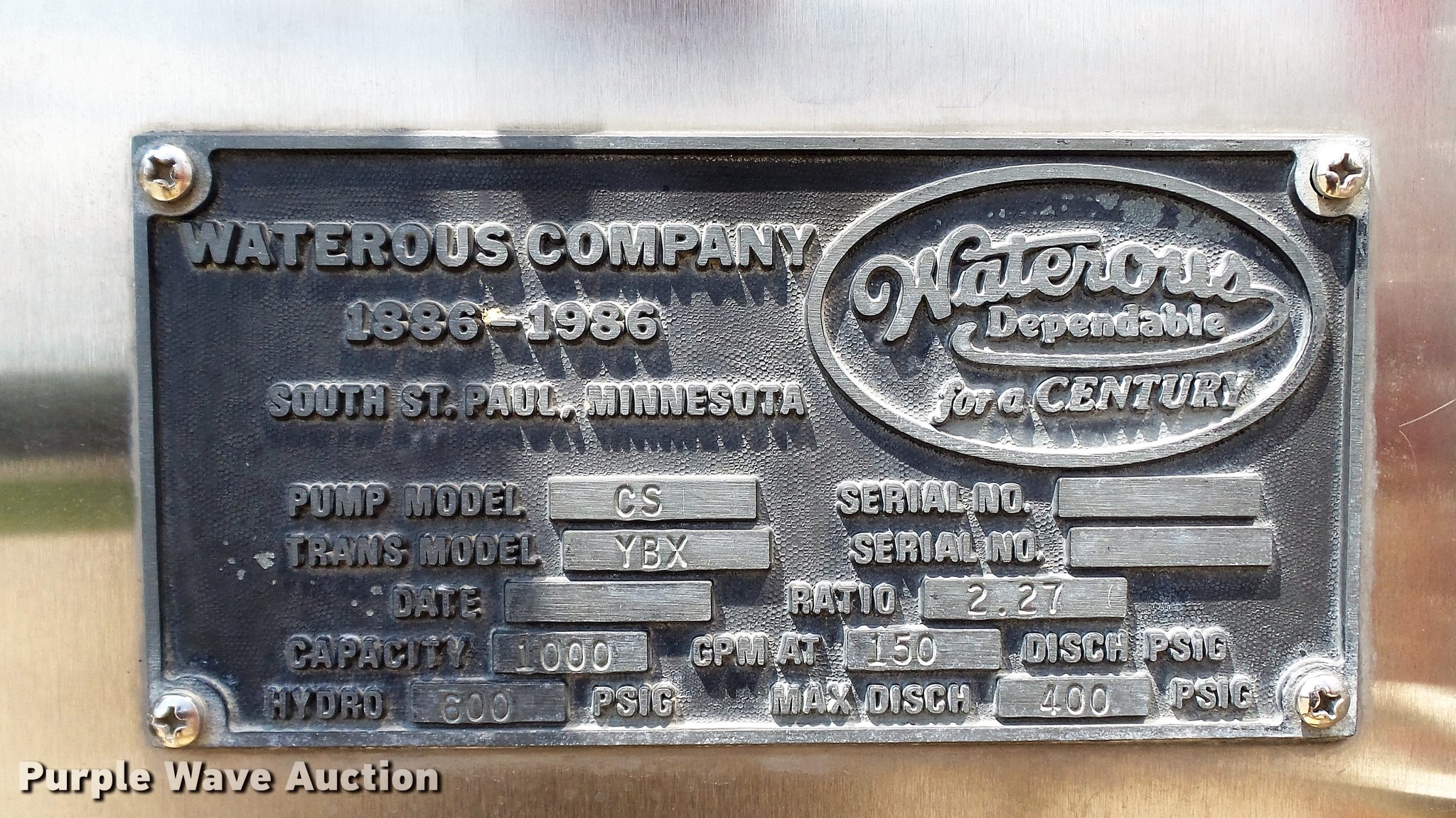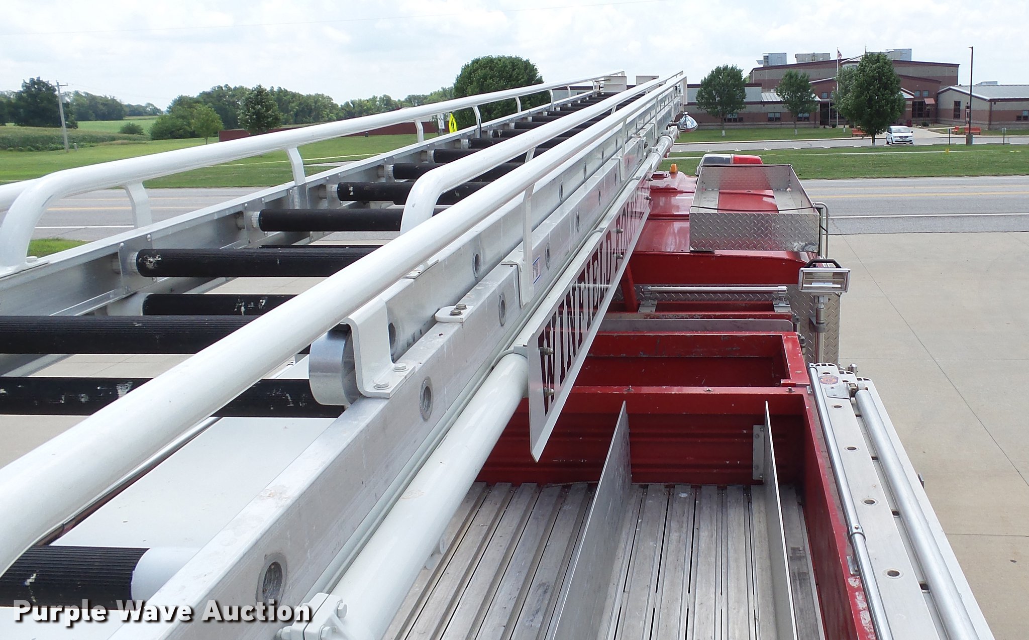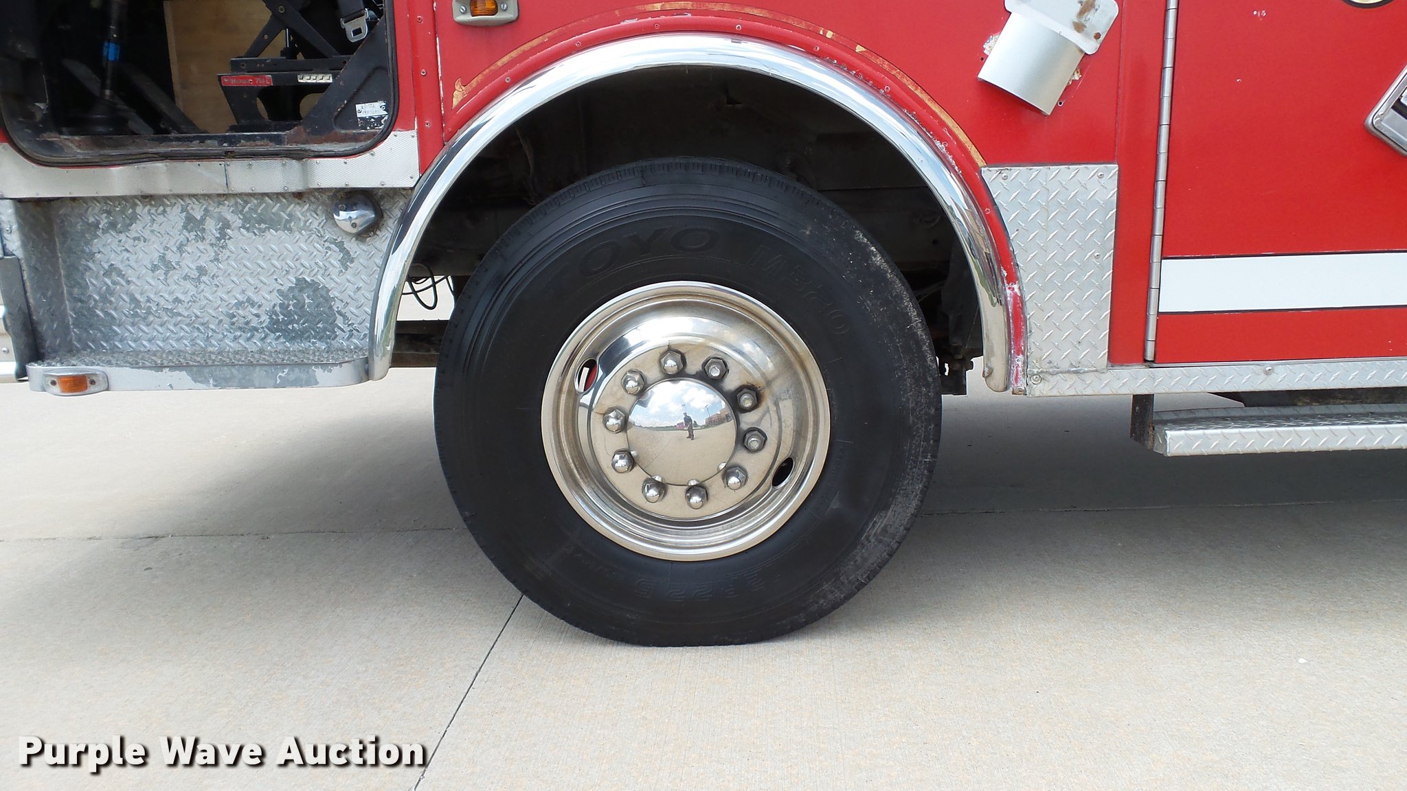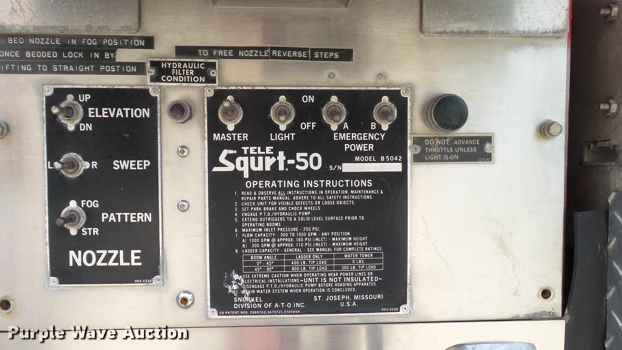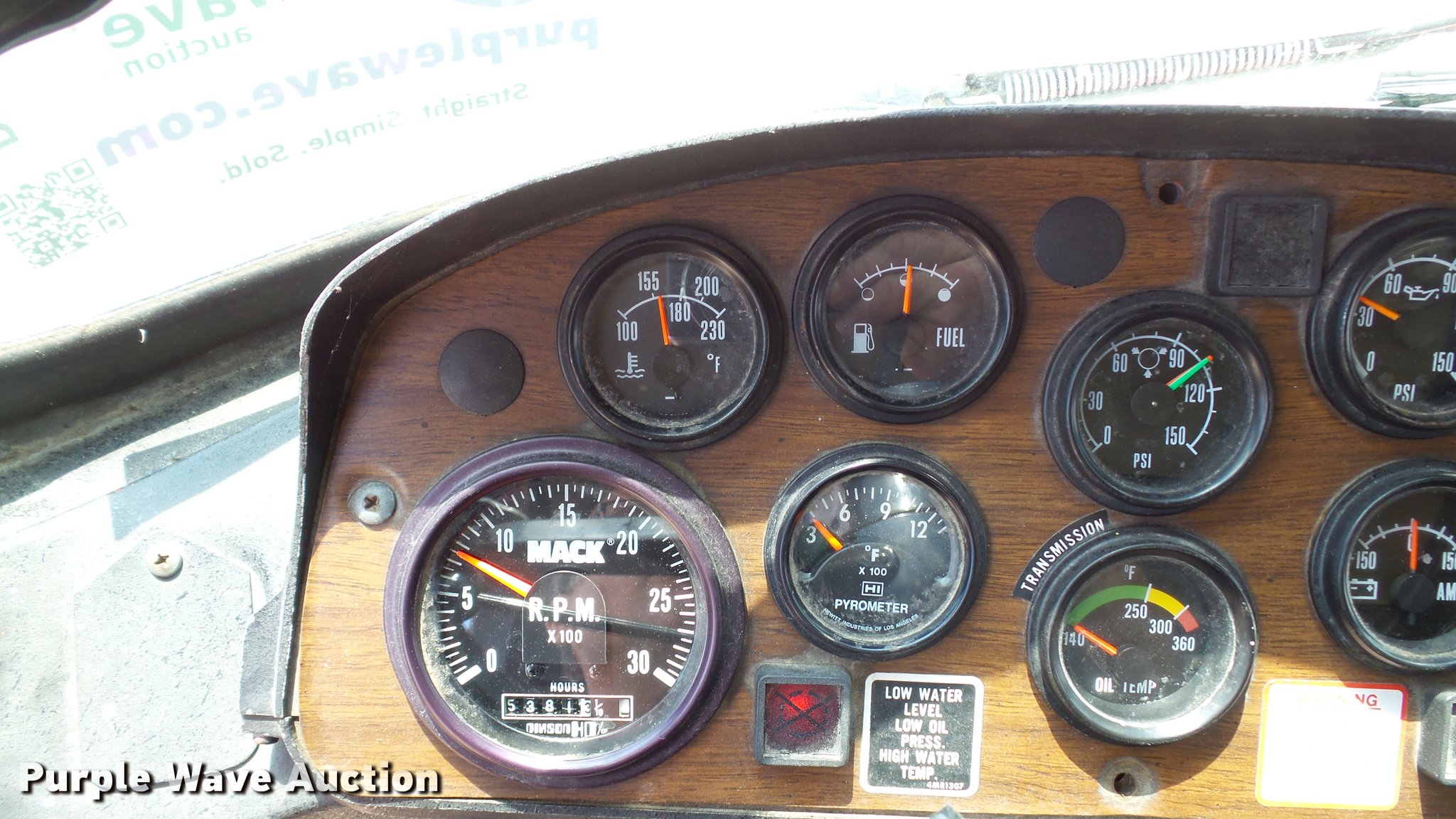 Purple Wave is selling a used Fire Truck or Emergency Vehicle in Missouri. This item is a 1988 Mack CF688FC fire truck with the following: 71,440 miles on odometer, 5,381 hours on meter, Mack six cylinder turbo diesel engine, Mack automatic transmission, Single axle, Heat, Air suspension seat, Air horn, PTO, Waterous Ranger platform, 9,729 hours on meter, 1,000 gpm pump, (2) outriggers, Outlet box, Work lights, Tele Squrt 50 B5042 ladder, 55'L, Two sections, Pre-piped water way ladder, Possible hydraulic hose leaking on ladder rotation, 10' attic ladder, 35' extension ladder, Receiver hitch, Air brakes, Engine brake, 12R22.5 tires, 9/11 mural on side of truck, Decals will be removed prior to auction, Removed from service in July 2017