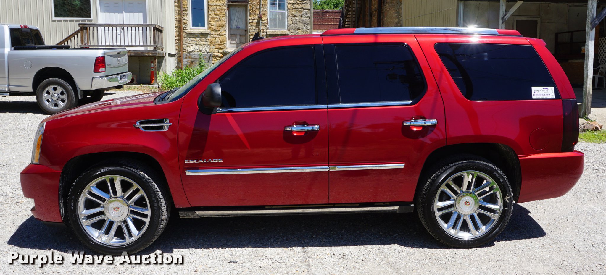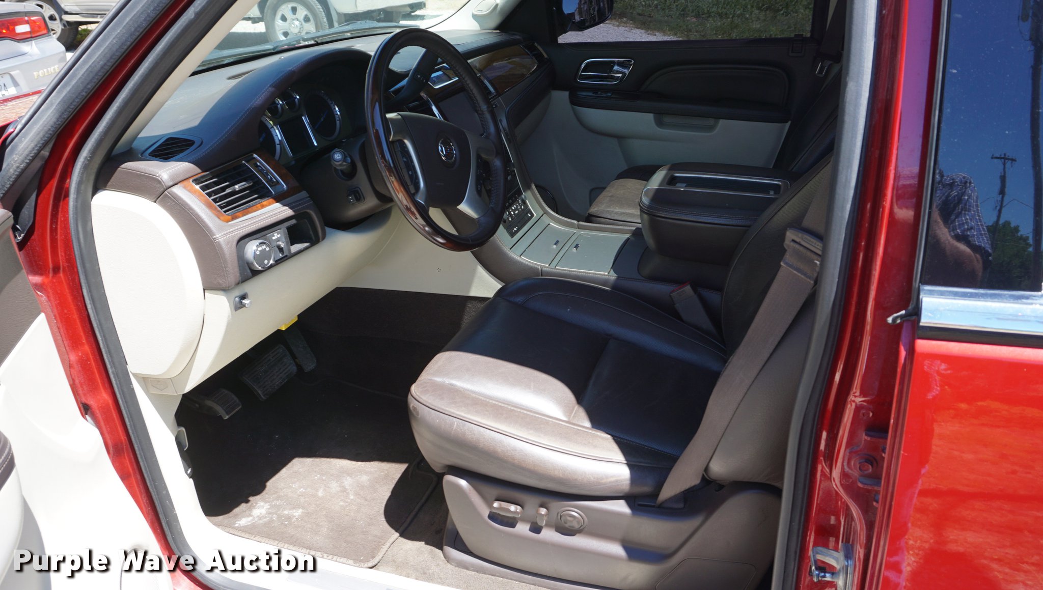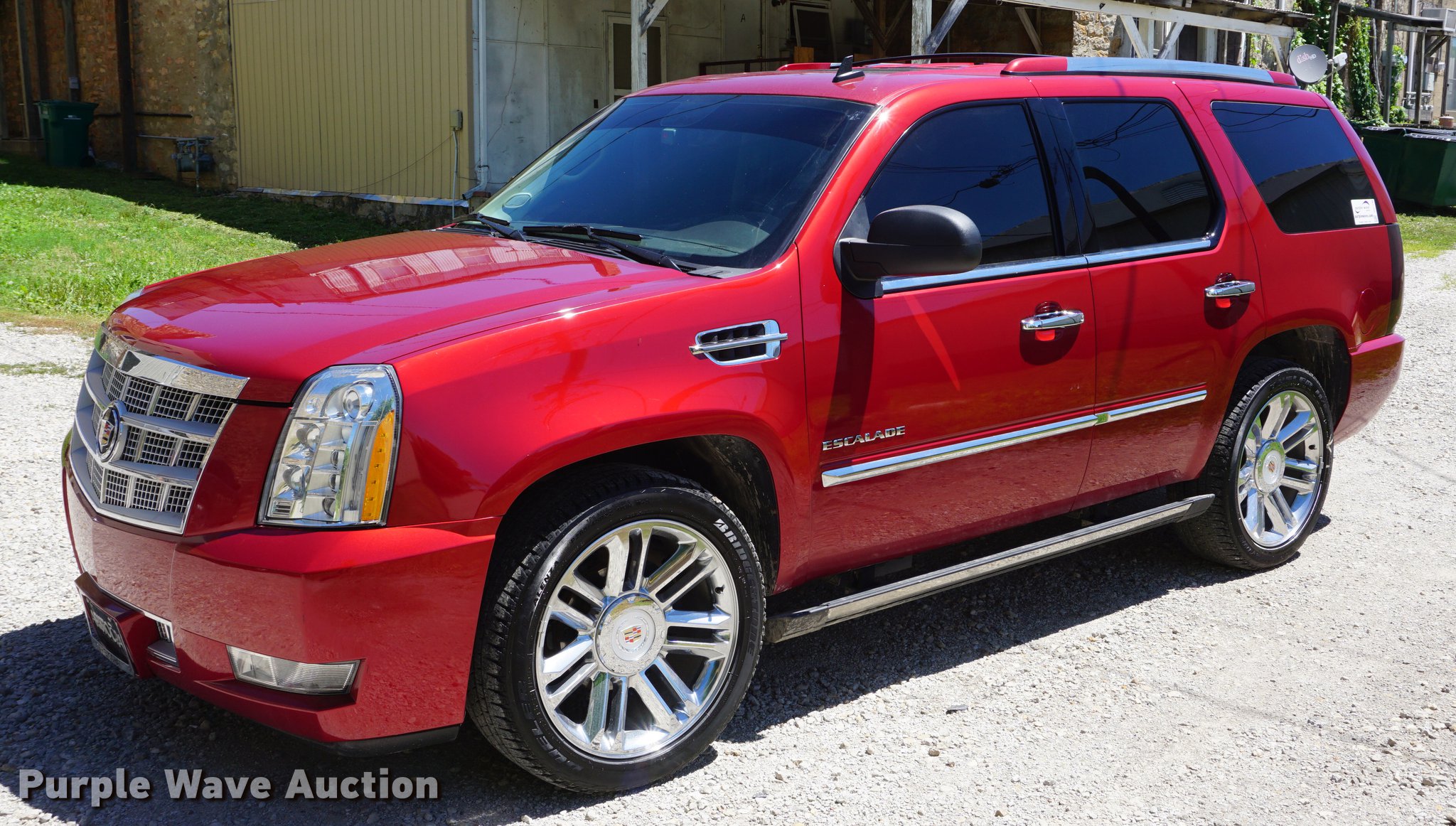 Purple Wave is selling a used Passenger Vehicle in Kansas. This item is a 2013 Cadillac Escalade SUV with the following: 124,364 miles on odometer, 6.2L V8 OHV 16V FFV gas engine, Automatic transmission, All wheel drive, AC and heat, Tilt, Cruise, AM/FM/CD, Power windows, locks, mirrors and seats, Heated and cooled seats, Heated steering wheel, Leather interior, Power sunroof, Running boards, Backup camera, 285/45R22 tires, Check engine light on, Left front wheel bearing needs replaced
