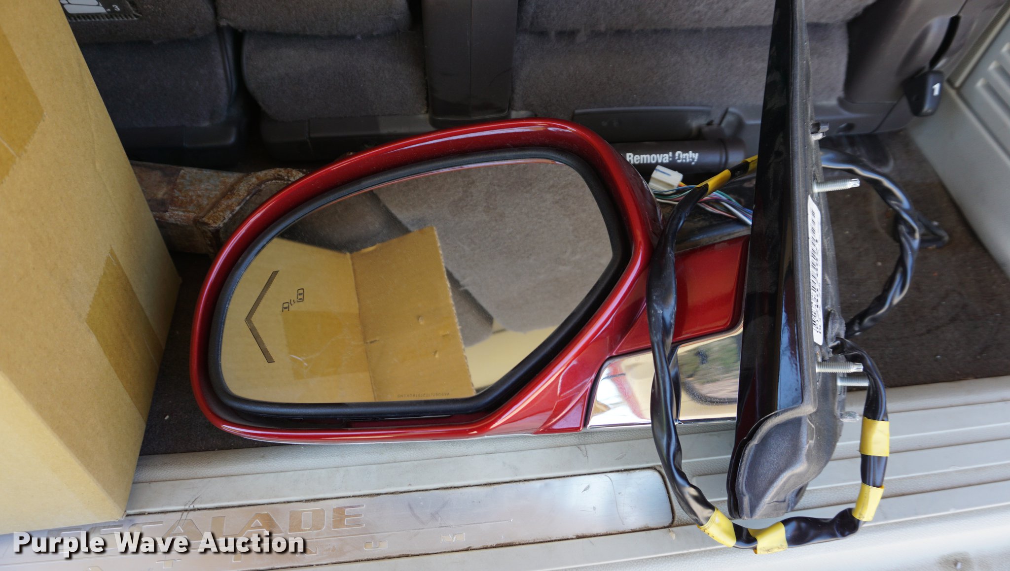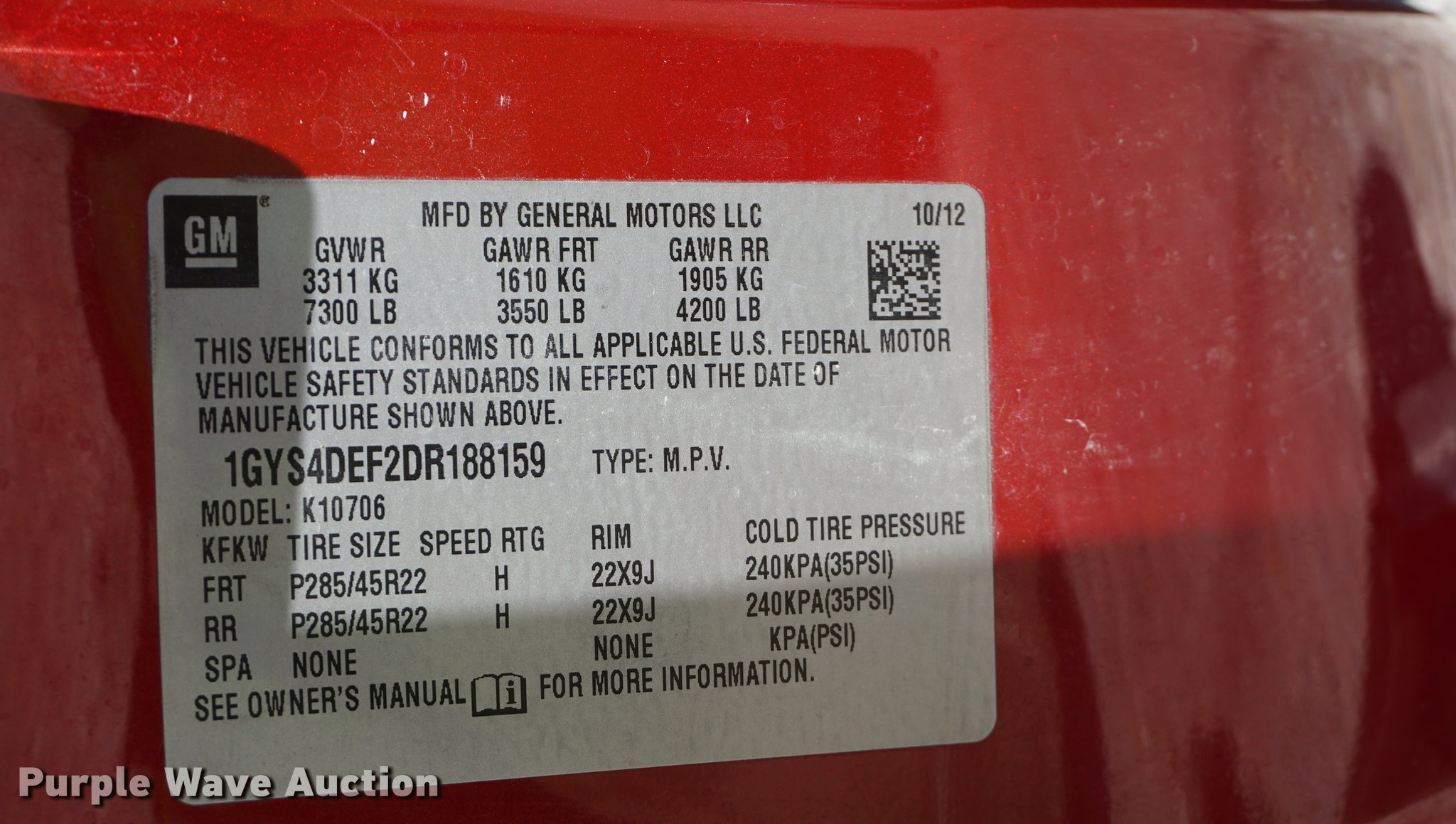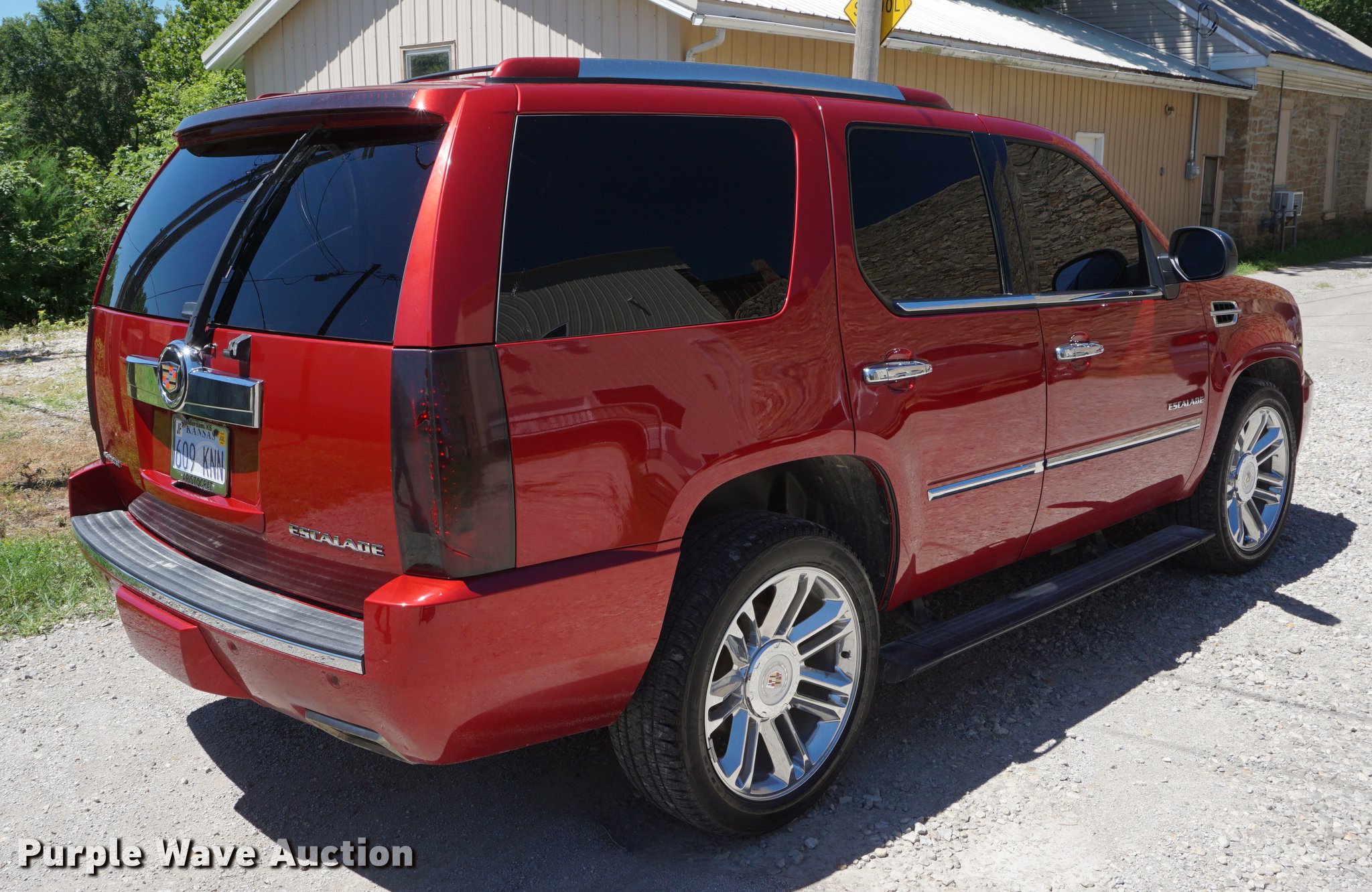 Purple Wave is selling a used Passenger Vehicle in Kansas. This item is a 2013 Cadillac Escalade SUV with the following: 124,364 miles on odometer, 6.2L V8 OHV 16V FFV gas engine, Automatic transmission, All wheel drive, AC and heat, Tilt, Cruise, AM/FM/CD, Power windows, locks, mirrors and seats, Heated and cooled seats, Heated steering wheel, Leather interior, Power sunroof, Running boards, Backup camera, 285/45R22 tires, Check engine light on, Left front wheel bearing needs replaced