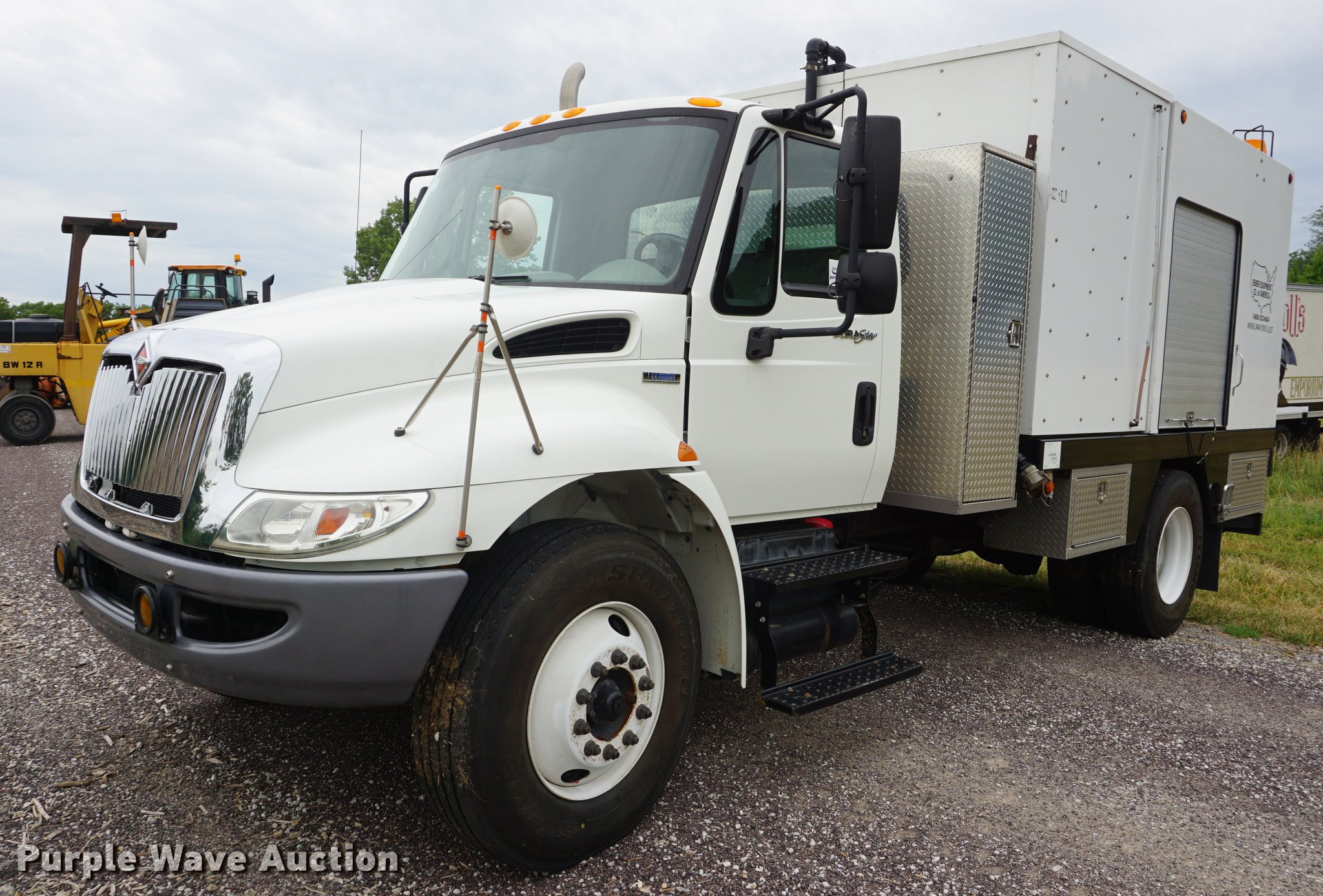 Purple Wave is selling a used Vacuum Truck in Kansas. This item is a 2008 International DuraStar 4400 sewer rodder truck with the following: 85,104 miles on odometer, 9,367 hours on meter, MaxxForce GDT255 7.6L L6 turbo diesel engine, 255 HP, Allison automatic transmission, AC and heat, Cruise, Sewer Equipment of America 800H bed, Toolboxes, Receiver hitch, 11R22.5 tires, Hose reel shaft broken, Leaks water, Unit # JCW5047