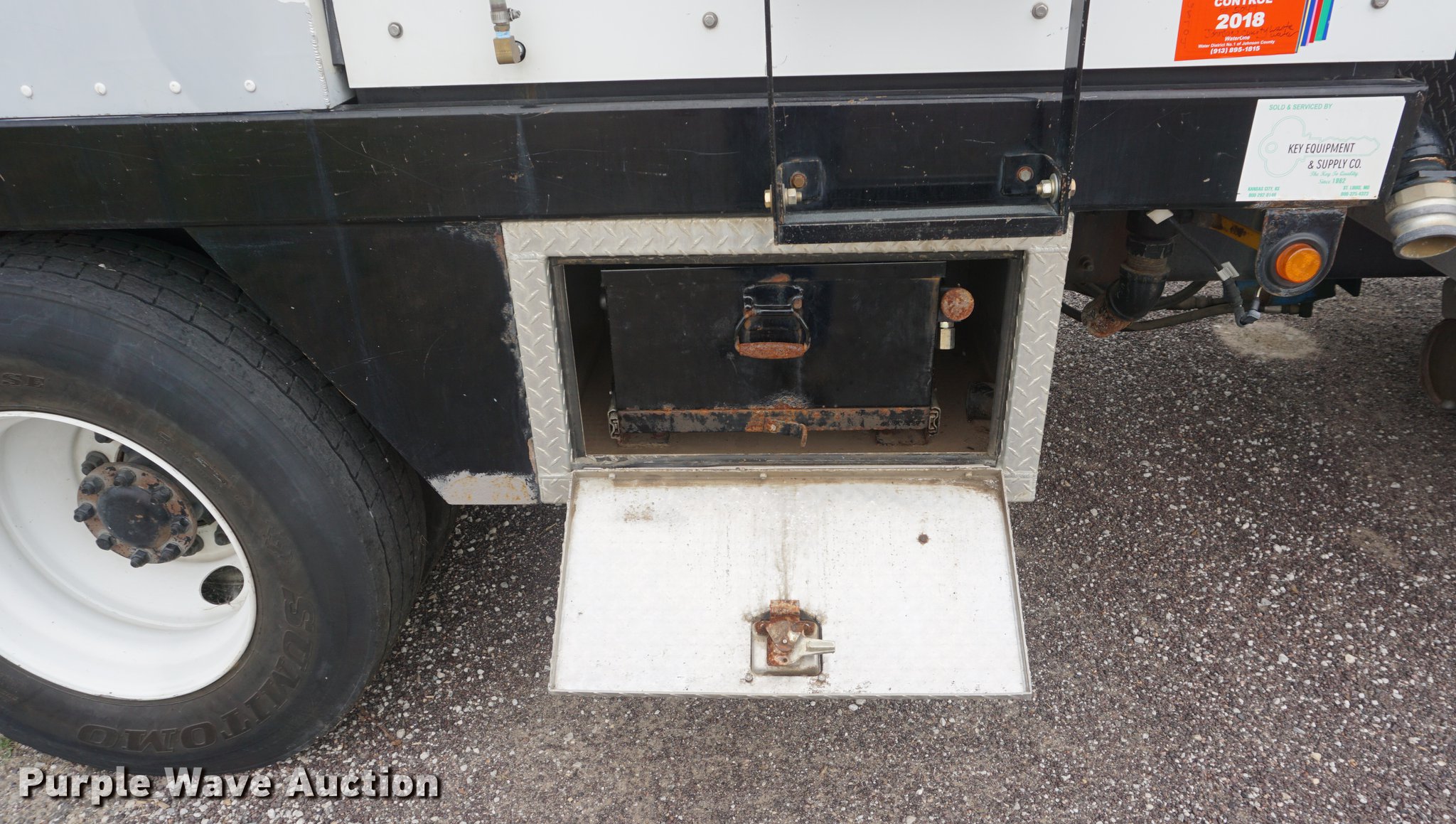 2008 International DuraStar 4400 sewer rodder truck. 85,104 miles on odometer, 9,367 hours on meter, MaxxForce GDT255 7.6L L6 turbo diesel engine 255 HP, Allison automatic transmission, AC and heat, Cruise, Sewer Equipment of America 800H bed Toolboxes, Receiver hitch, 11R22.5 tires, Hose reel shaft broken, Leaks water, Unit # JCW5047. Kansas title. 1HTMMAAN78H575492. Johnson County. 1800 W Old 56 Hwy. Olathe, KS 66061