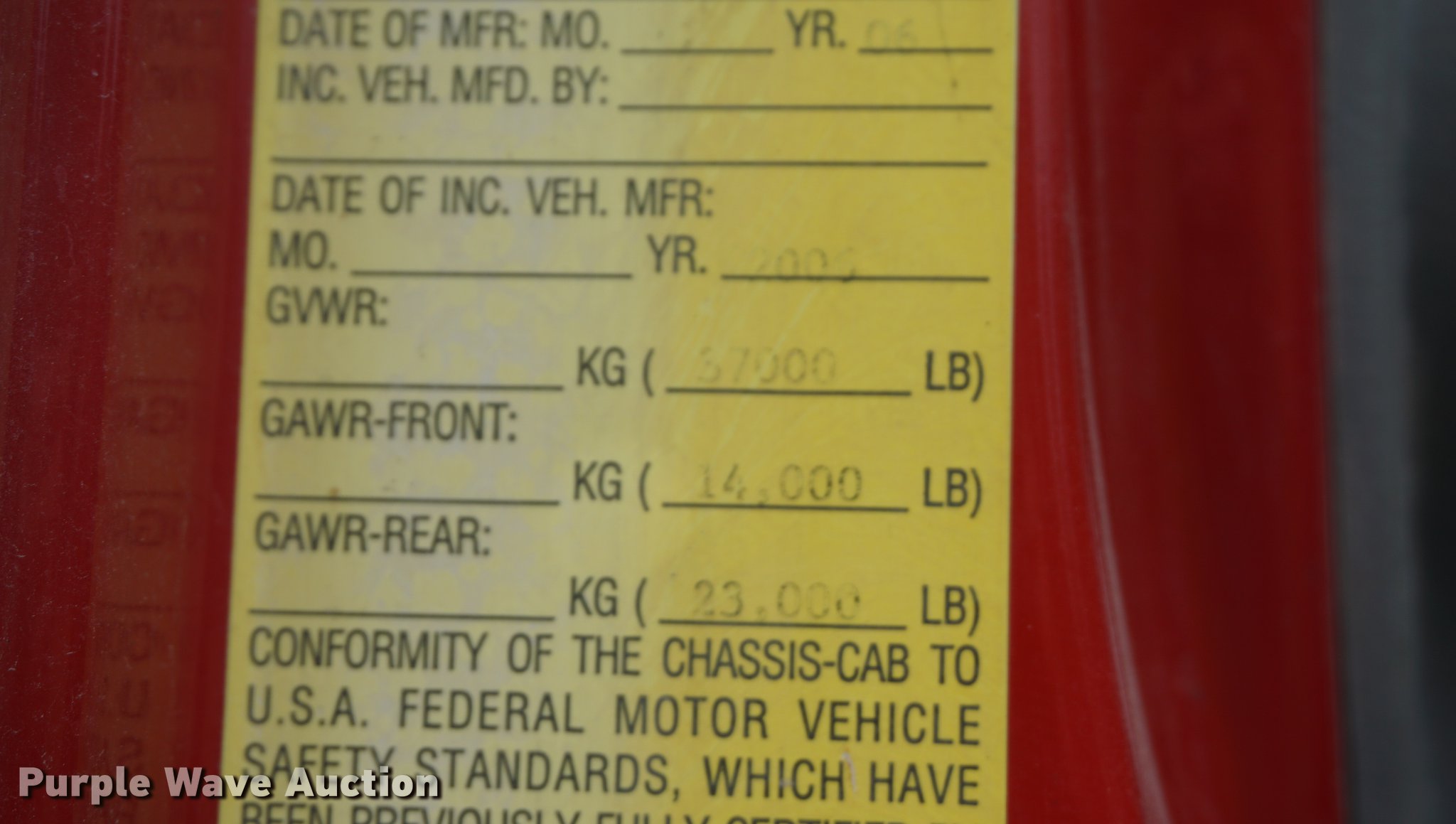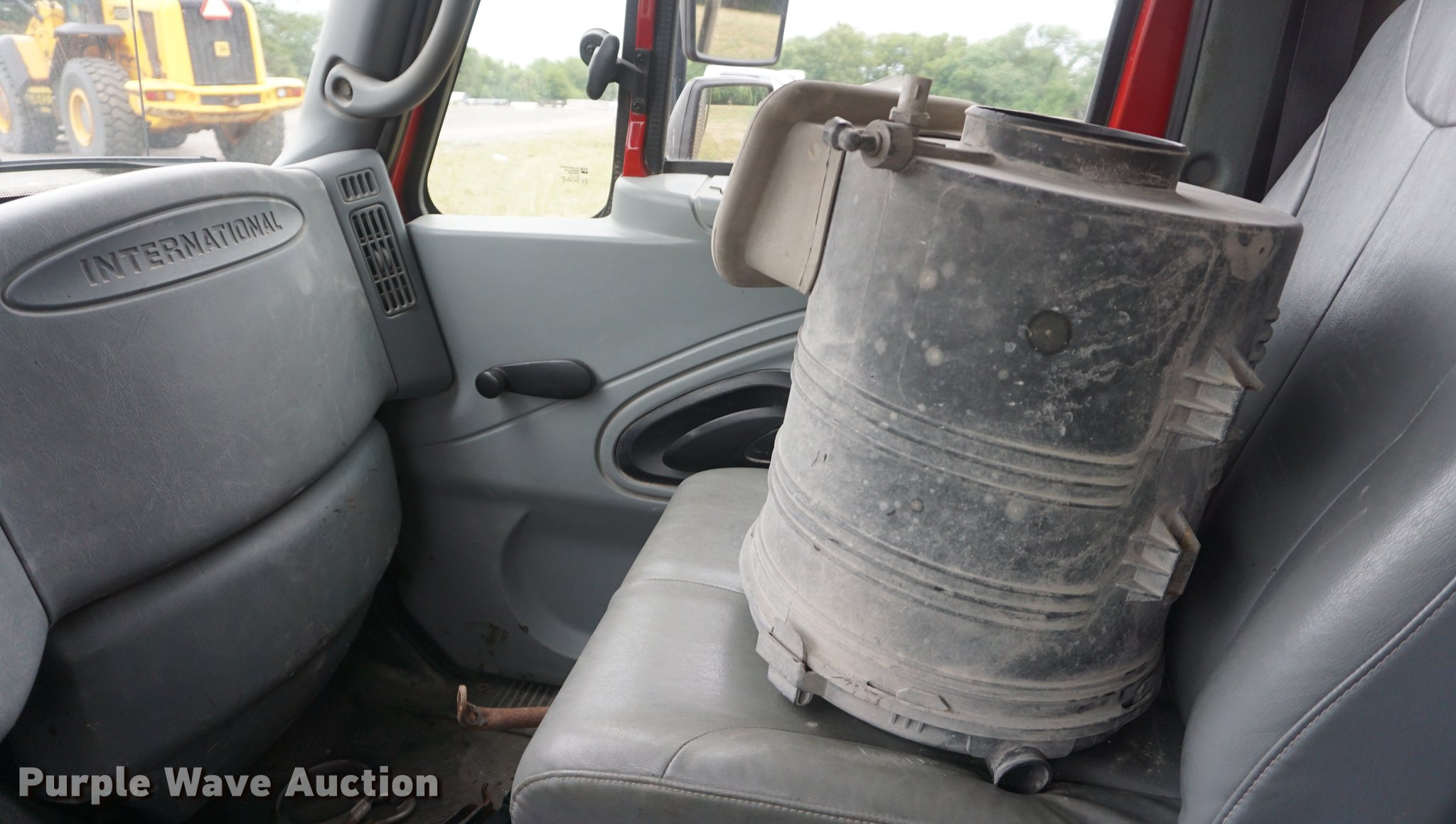 Purple Wave is selling a used Construction Dump Truck in Kansas. This item is a 2006 International 7400 dump truck with the following: 101,110 miles on odometer, 5,638 hours on meter, International DT466 7.6L L6 diesel engine, Allison automatic transmission, Single axle, AC and ehat, Cruise, AM/FM/cassette, Air suspension seat, Front mounted PTO, 10'L x 95.5"W steel dump bed, Roll tarp, Bed conveyor, Snow plow bracket, Single fuel tank, Spring suspension, Air brakes, 12R22.5 tires, Automatic tire chains, GVWR 37,000 lbs, FAWR 14,000 lbs, RAWR 23,000 lbs, Non-operational unit, Parts missing, Cylinder heads need replaced, Unit# PWK4462