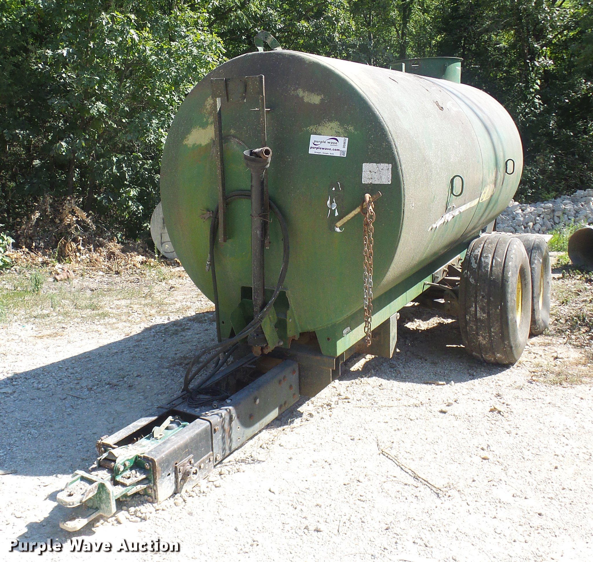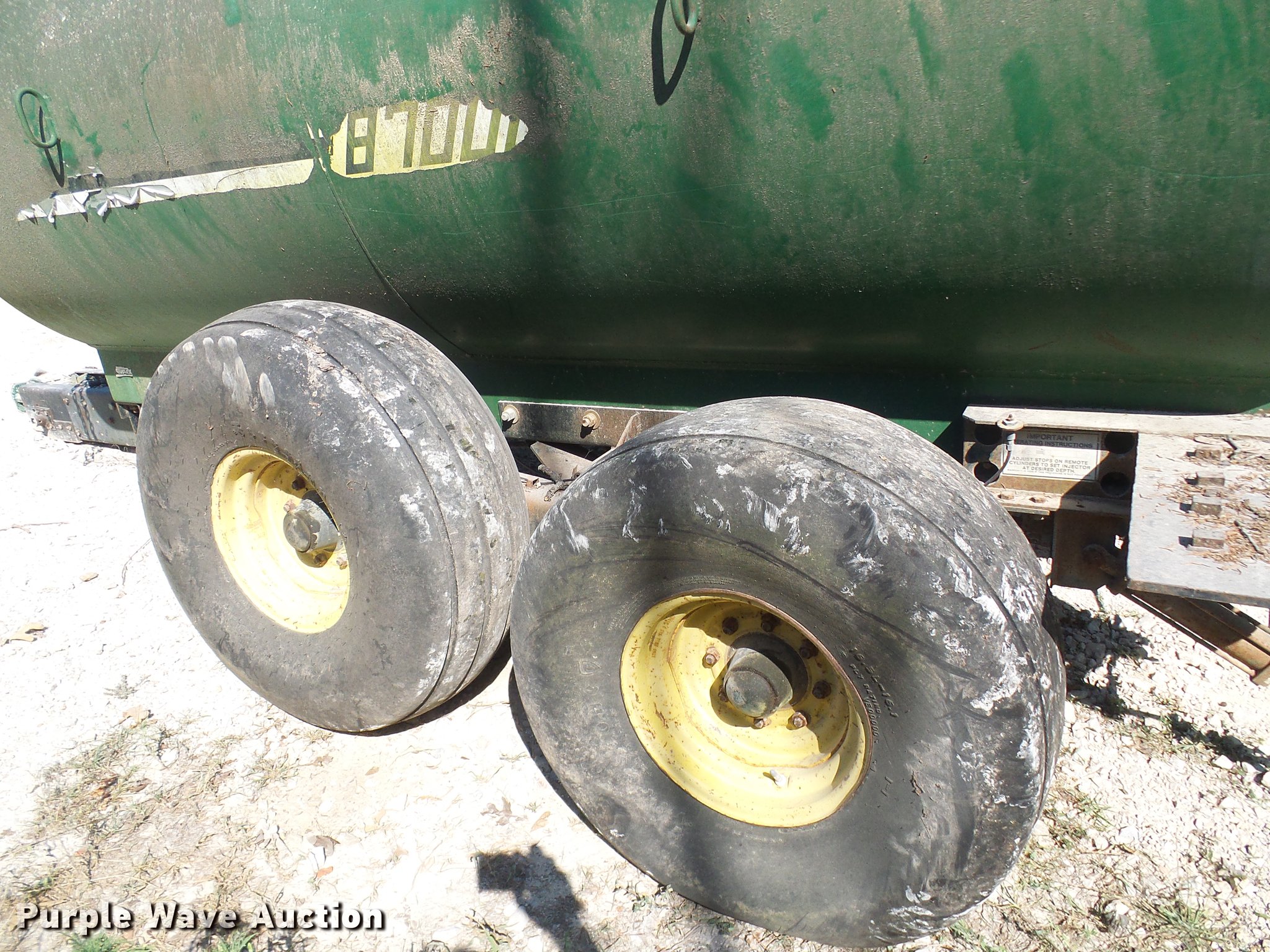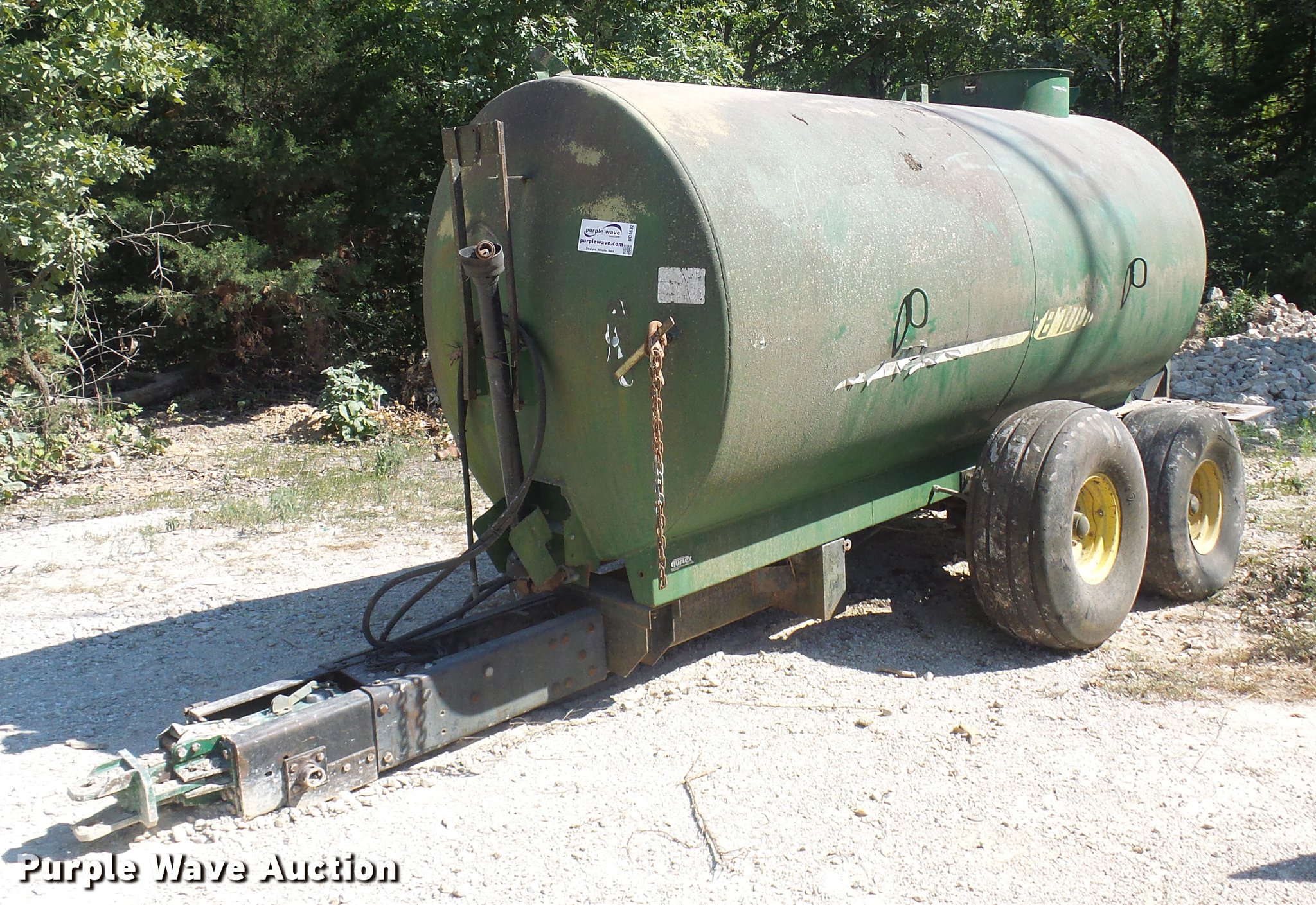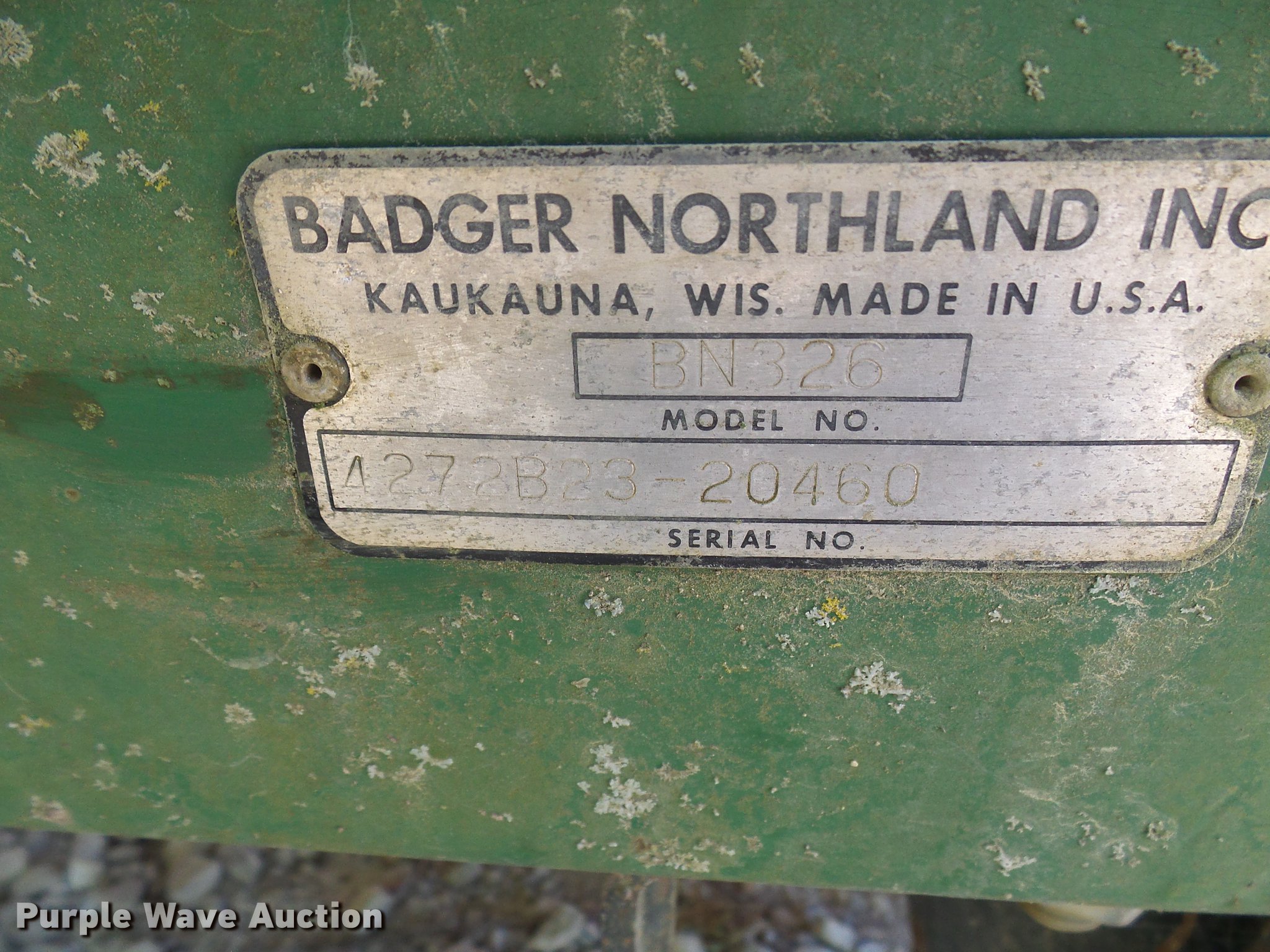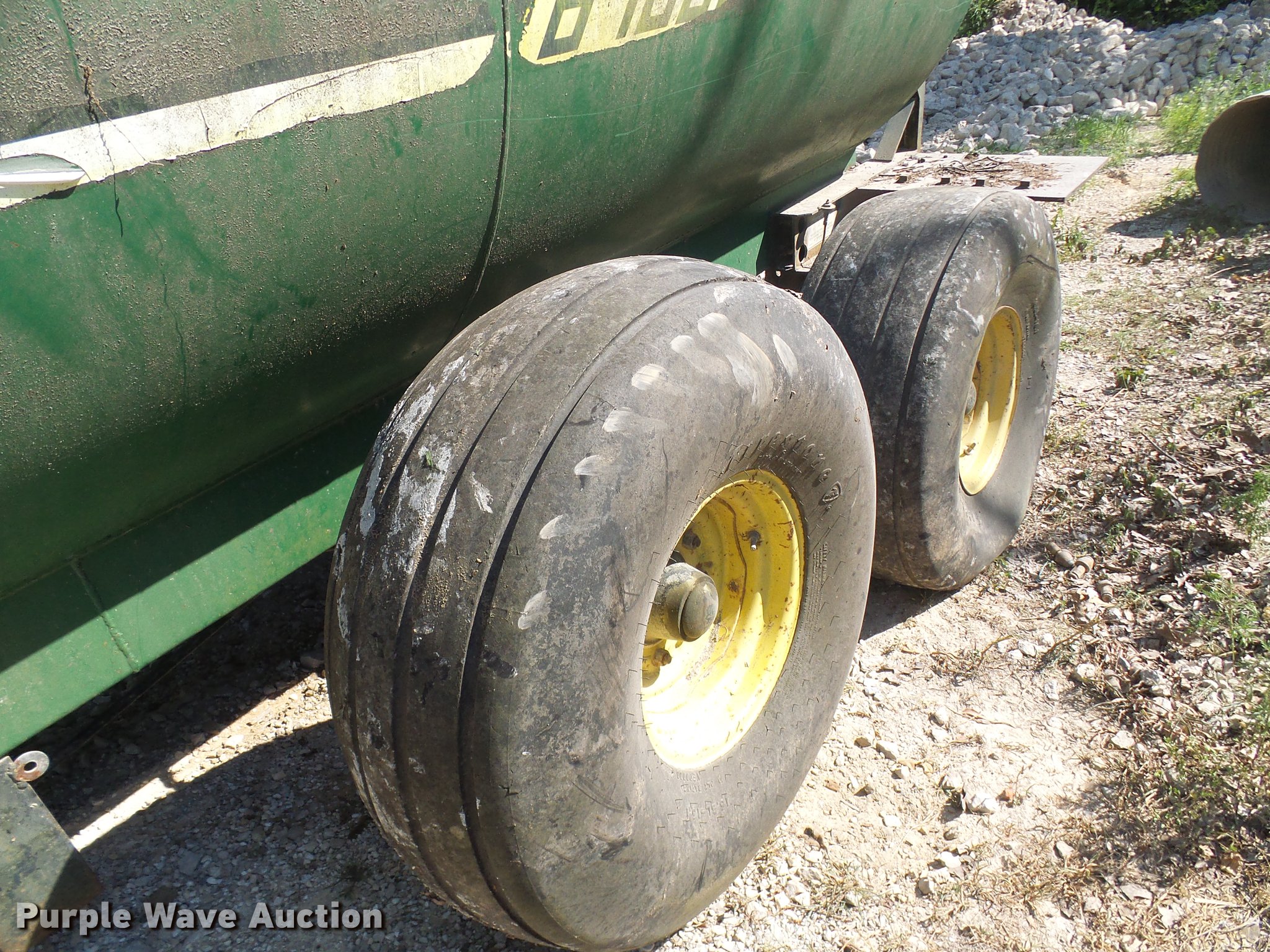 Purple Wave is selling a used Manure Spreader in Missouri. This item is a Badger Northland Inc. BN326 honey wagon with the following: 13'L x 5.5' diameter tank, 8,700 liter capacity, PTO driven, Pin hitch, Tandem axle, 16.5L-16.1 tires, Serial 4272B23-20460