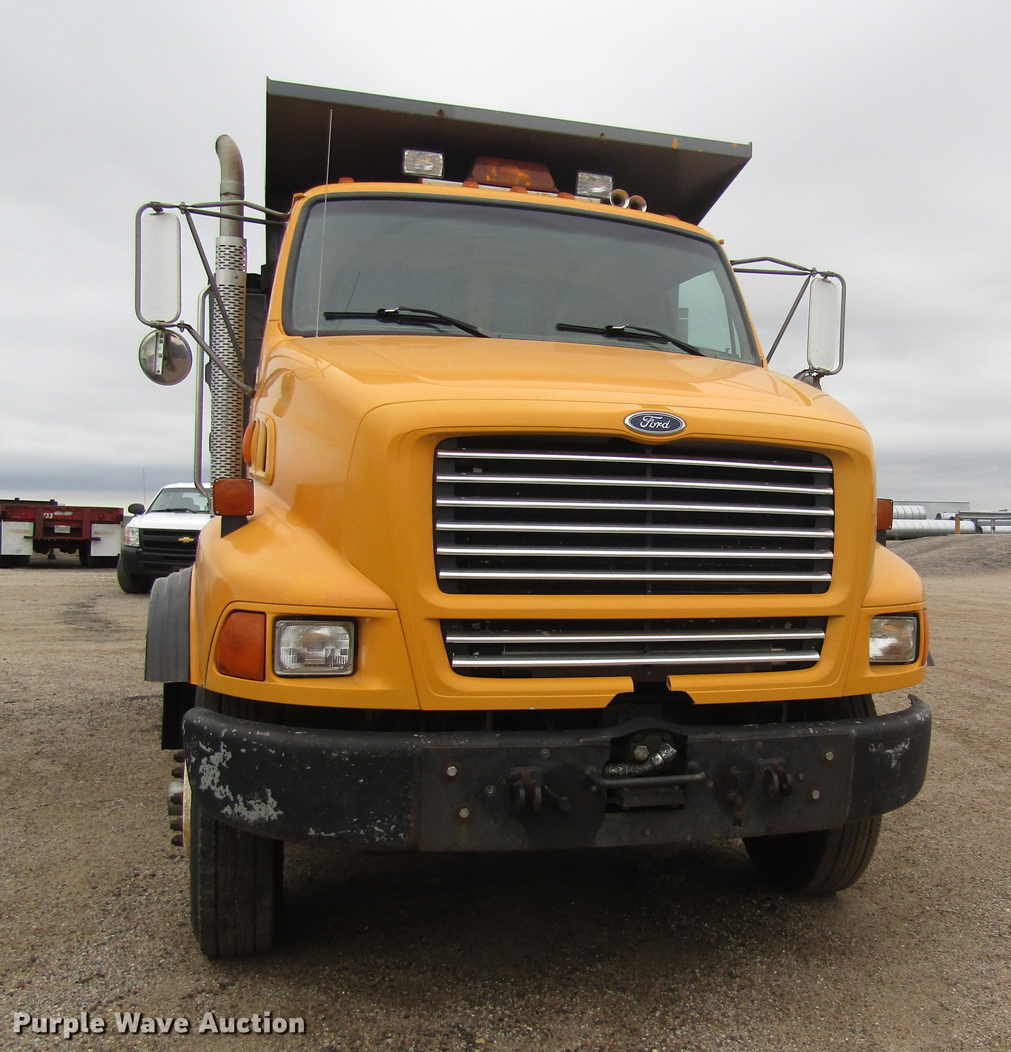 Purple Wave is selling a used Construction Dump Truck in Kansas. This item is a 1998 Ford LTLA9000 Louisville dump truck with the following: 255,221 miles on odometer, Caterpillar 3306 10.5L L6 turbo diesel engine, Automatic transmission, Tandem axle, AC and heat, AM/FM/cassette, Air suspension seat, Block heater, PTO, 14'L x 96"W steel dump bed, 32" side height, 13" side board height, Single ram hoist, Air operated end gate, Single fuel tank, Spring suspension, Air brakes, 11R22.5 tires, Chipped windshield