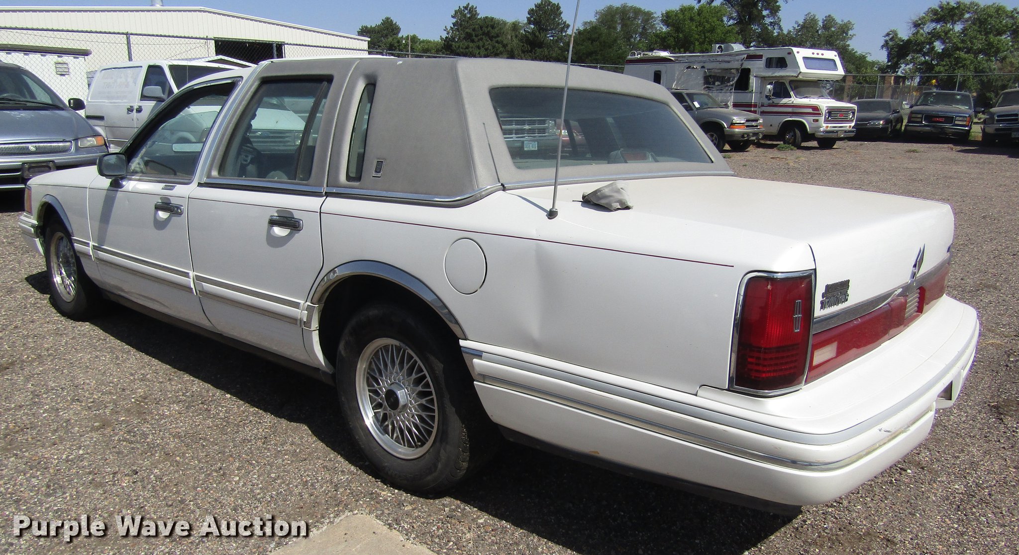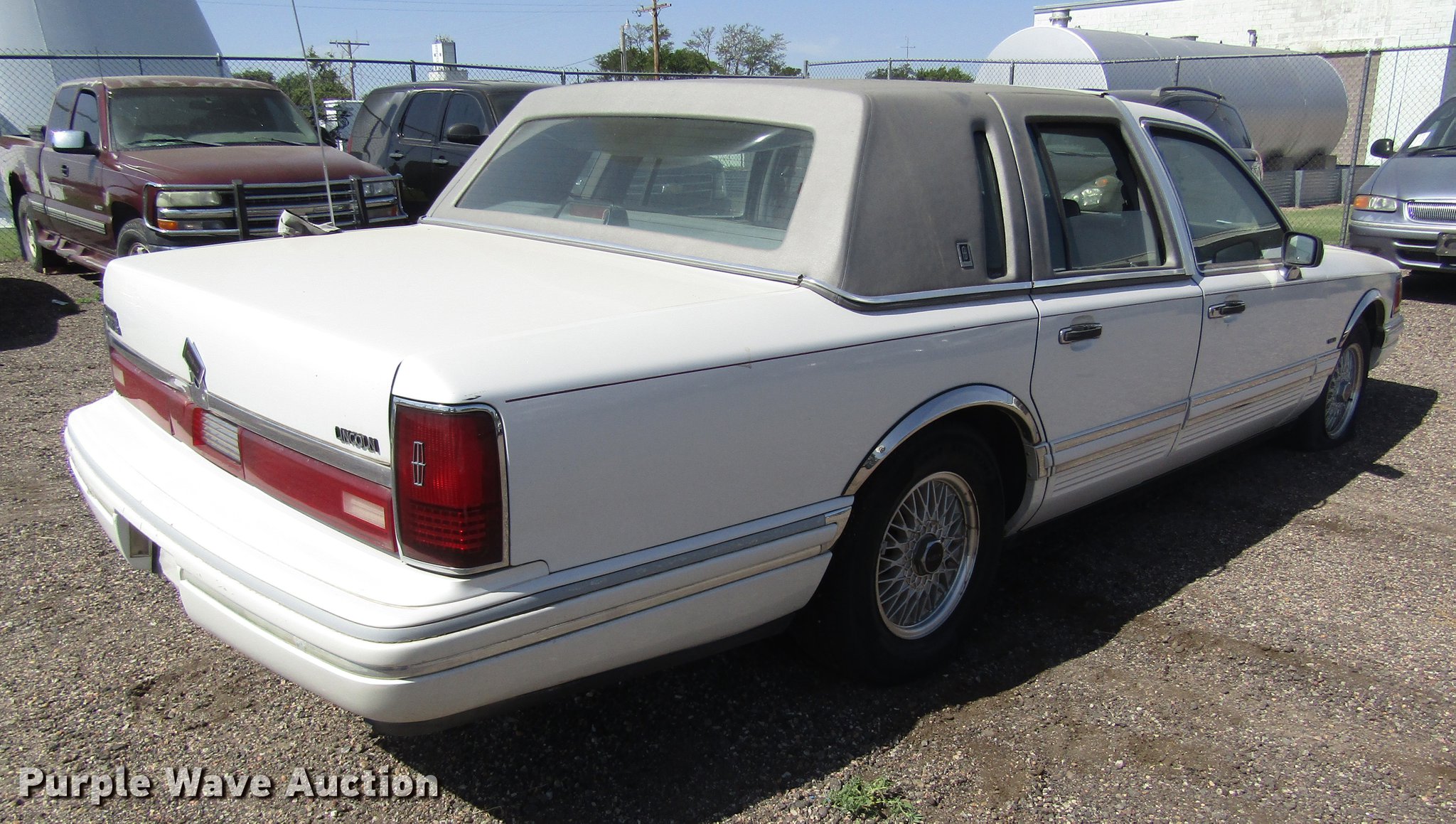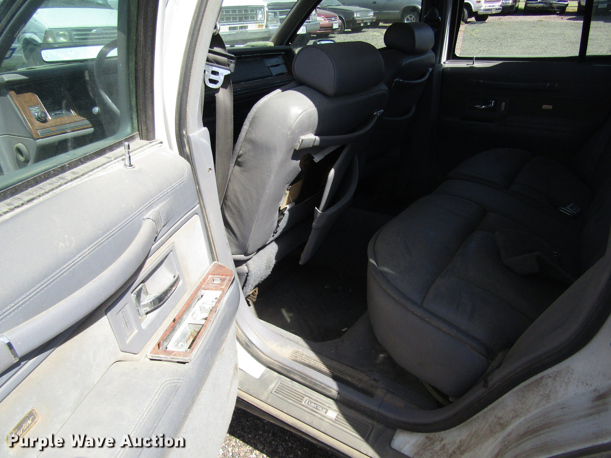 Purple Wave is selling a used Passenger Vehicle in Kansas. This item is a 1994 Lincoln Town Car with the following: 238,499 miles on odometer, 4.6L V8 SOHC 16V gas engine, Automatic transmission, AC and heat, Tilt, Cruise, Power windows, locks, and seat, Cloth interior, 215/70R15 tires, Flat tire, Window issues, Cracked windshield