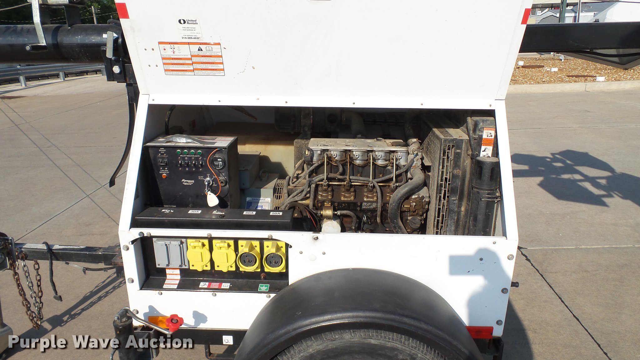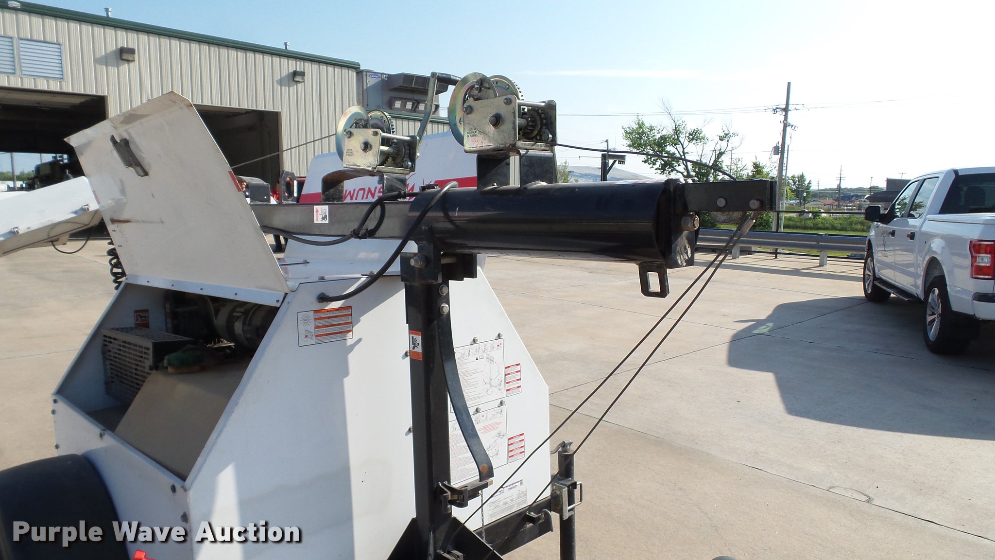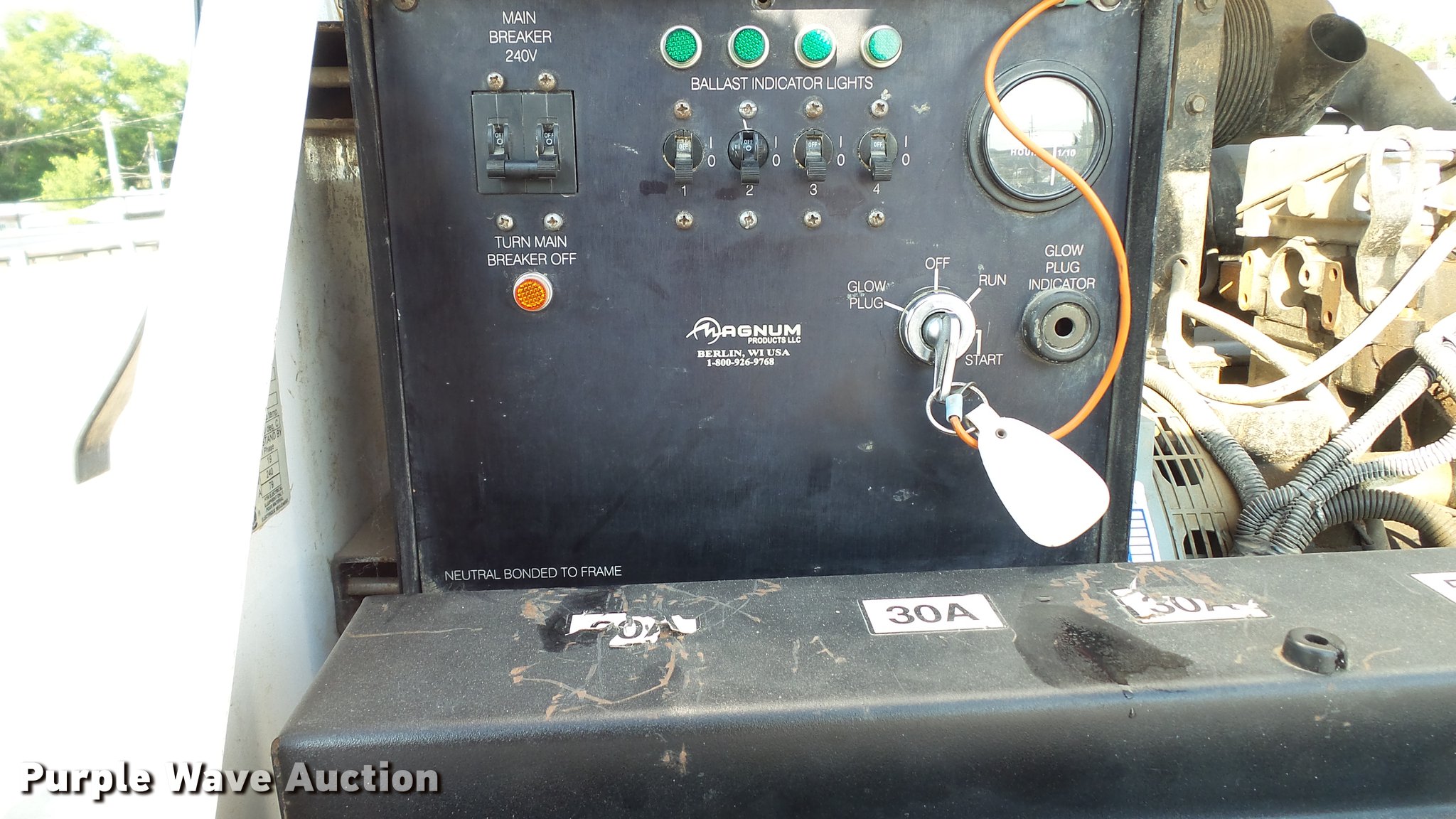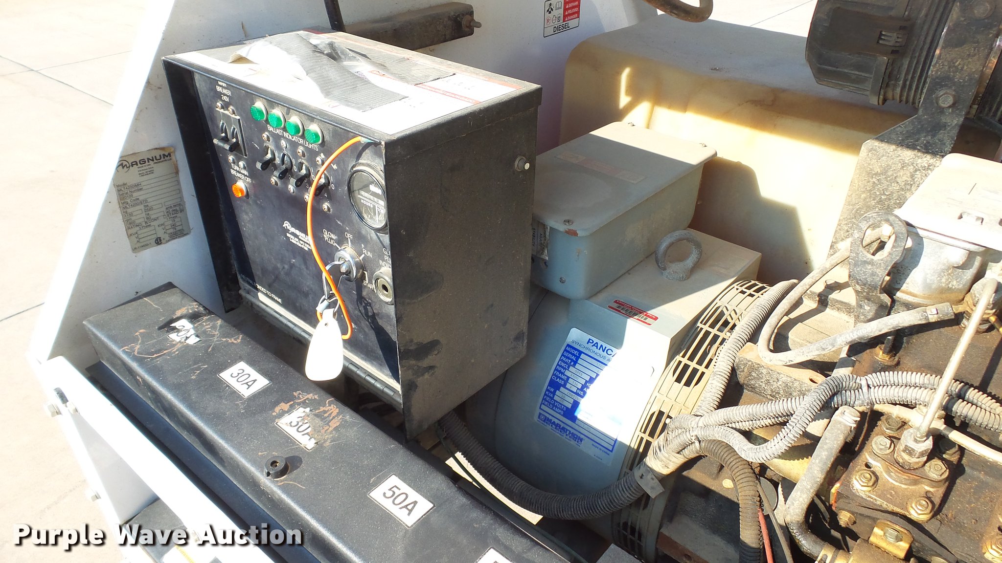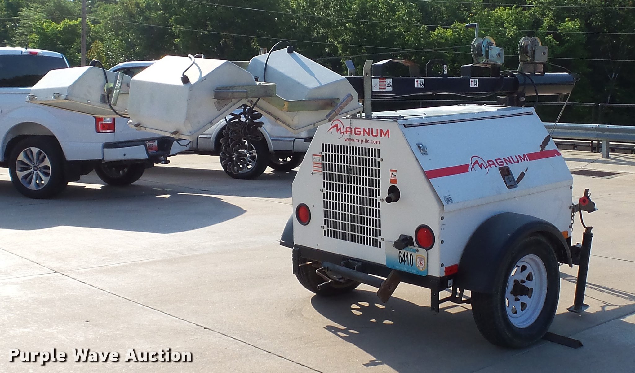 Purple Wave is selling a used Light Plant in Missouri. This item is a 2007 Magnum MLT4200 light plant with the following: 5,115 hours on meter, Isuzu 4LE1-PV05 2.2L four cylinder diesel engine, 31.5 HP, Marathon Electric 334CSA3028 generator, Control panel, 20 kVA, 20 kW, Single phase, 60 Hz, 120/240V, 167/83 amps, 56 gallon fwuel tank, Light plant, (4) bulbs, 1,000 watts, 30' tower height, Manual hoist, 2 5/16" ball hitch, (3) leveling jacks, P205/75R15 tires