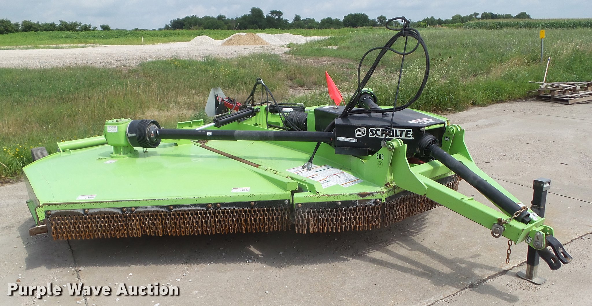 Purple Wave is selling a used Mower, Cutter, Shredder in Iowa. This item is a 2013 Schulte FX1800 batwing rotary mower with the following: 15'W, 1000 PTO, 19x6 laminated tires, Serial C185104755305