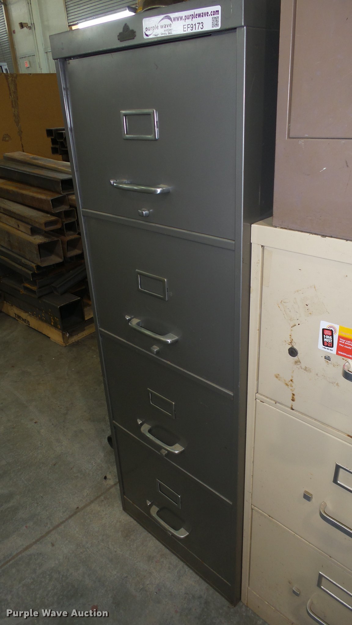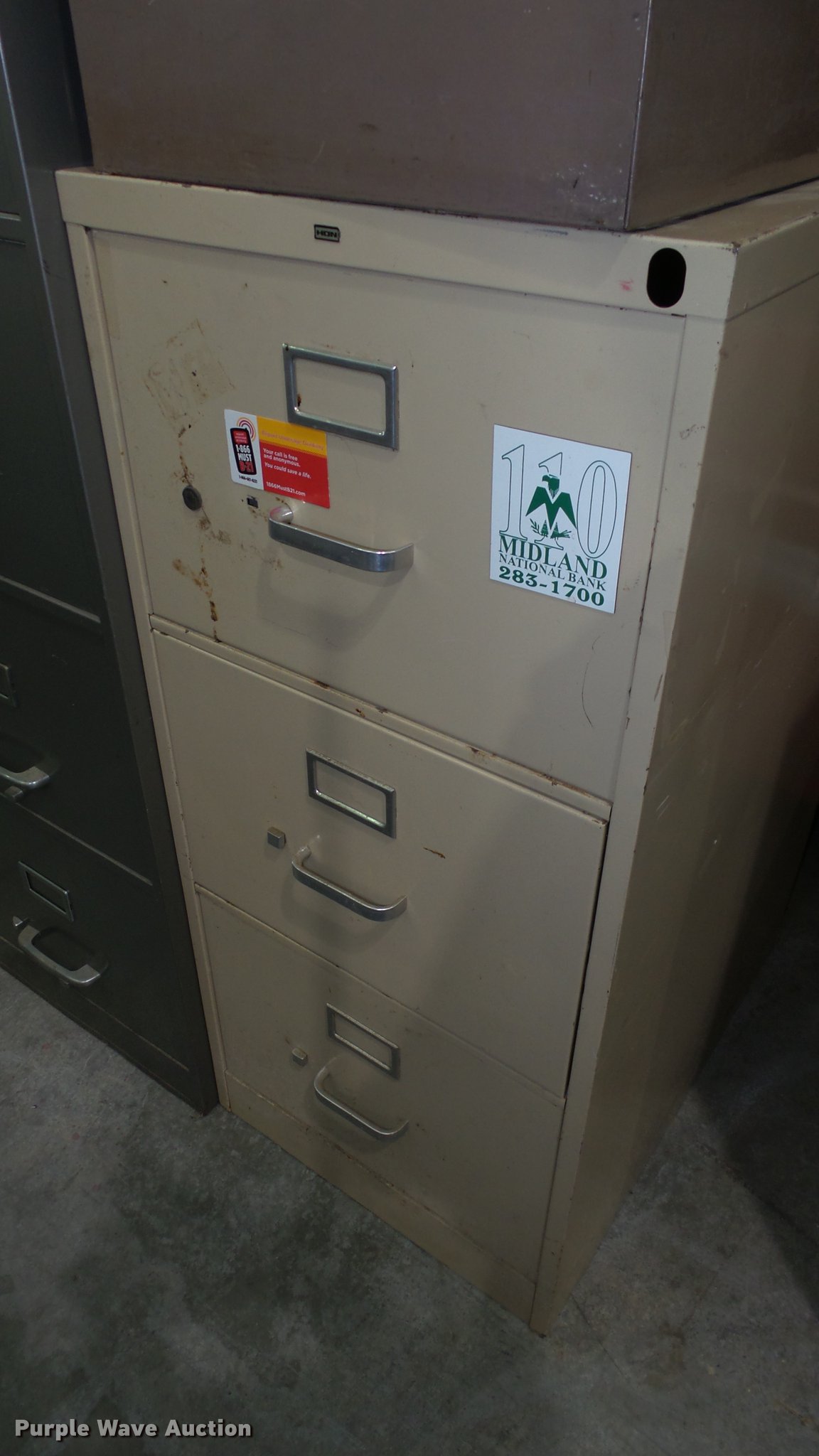 Purple Wave is selling a used Office Supplies and Equip. in Kansas. This item is a (3) filing cabinets with the following: Hon three drawer, Hon two drawer, All Steel four drawer